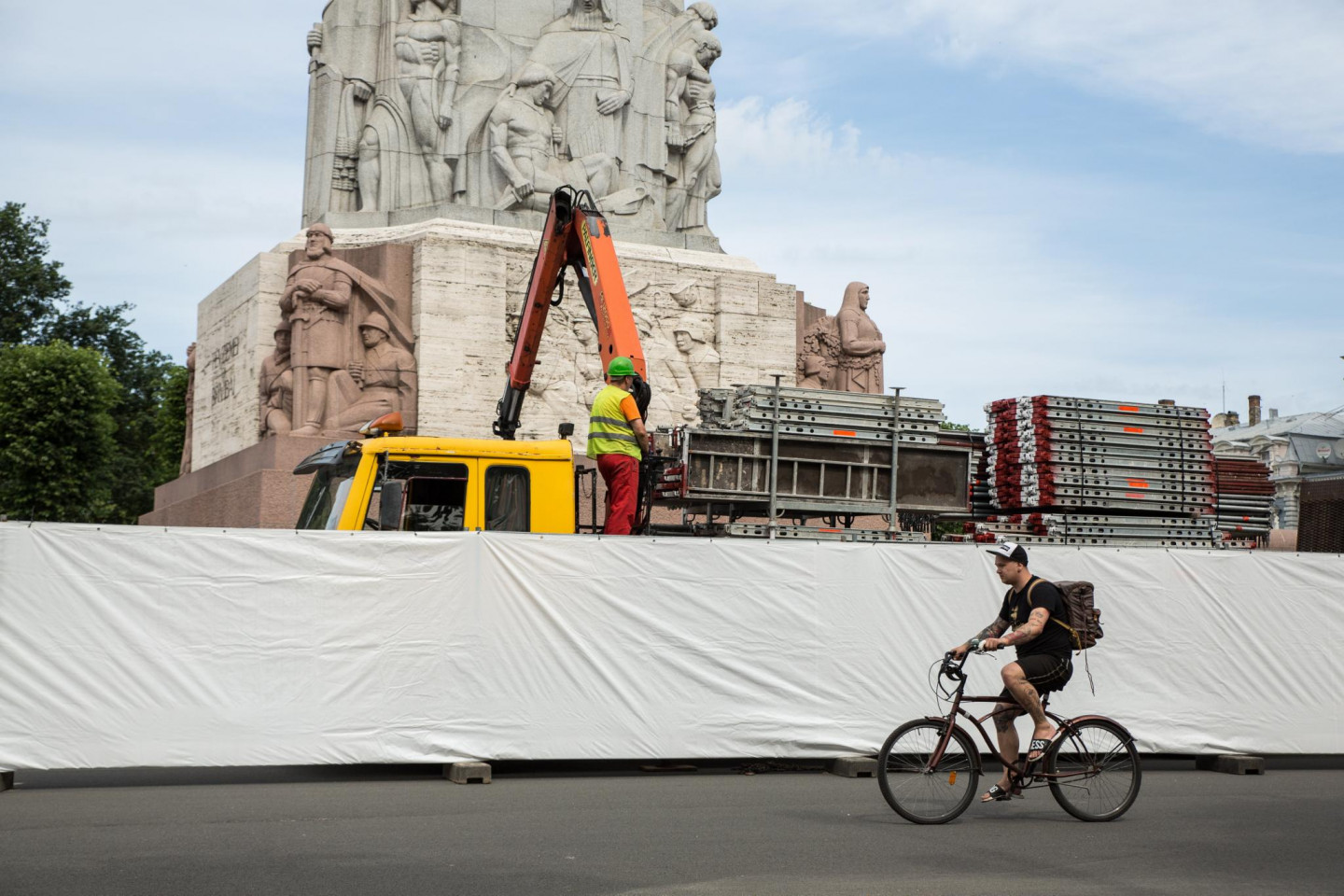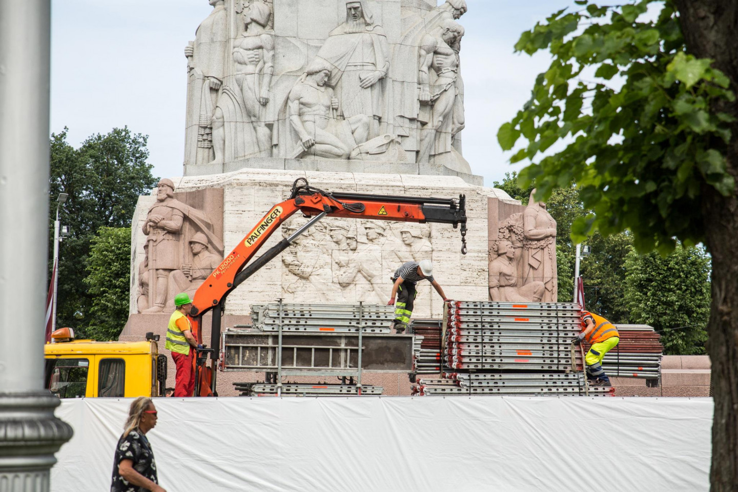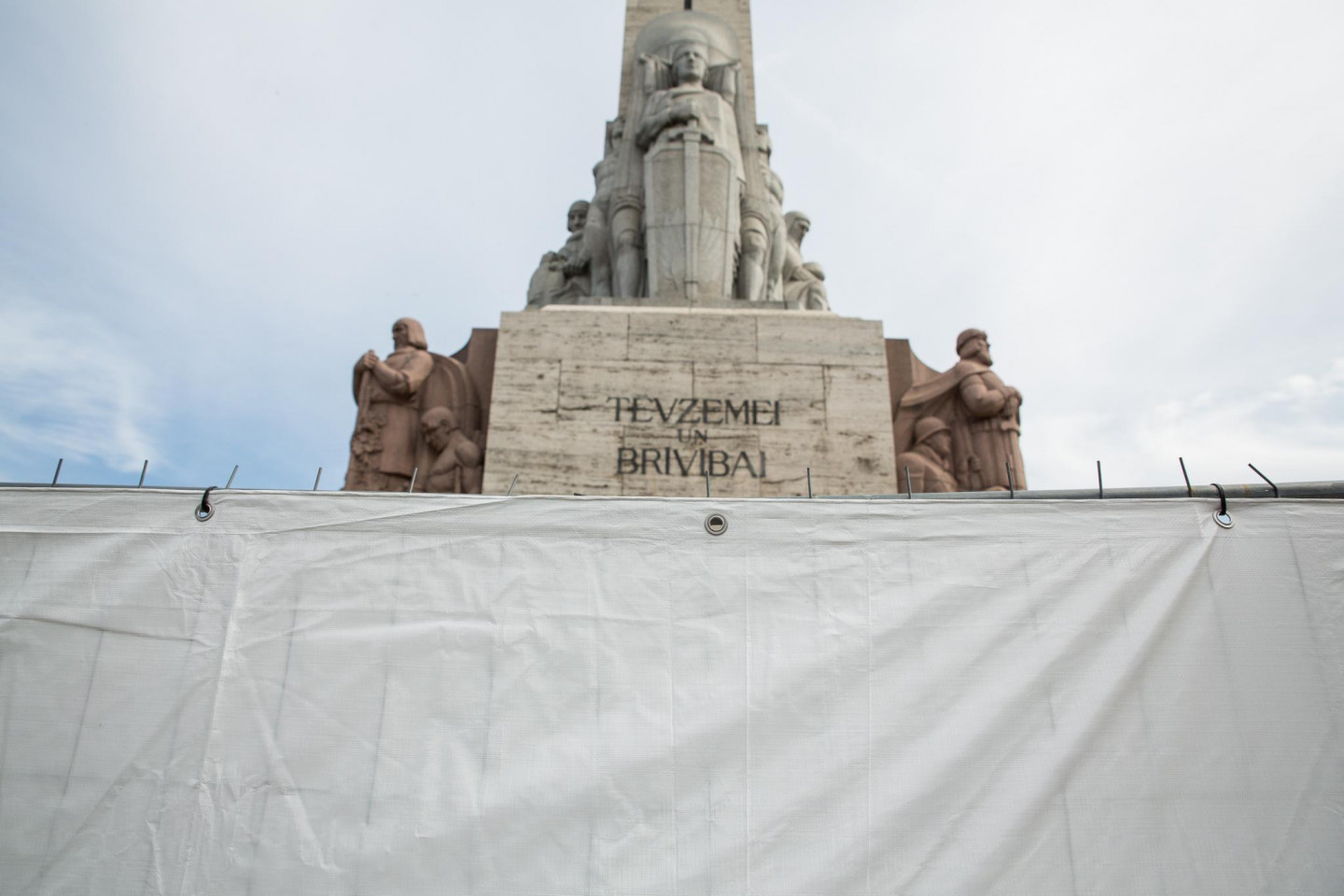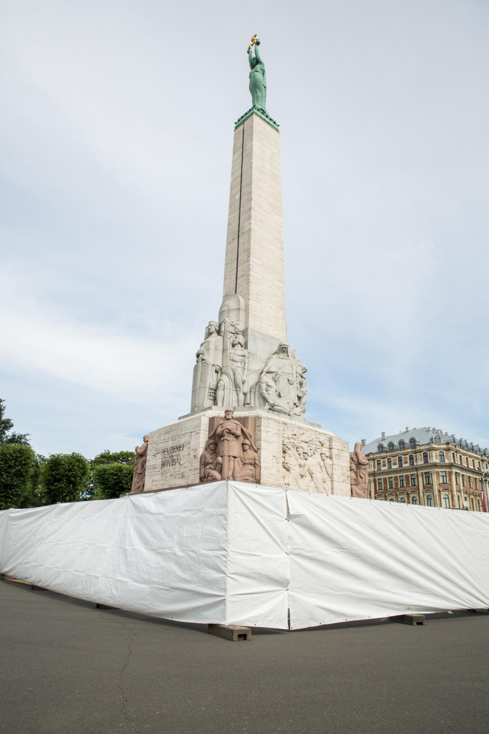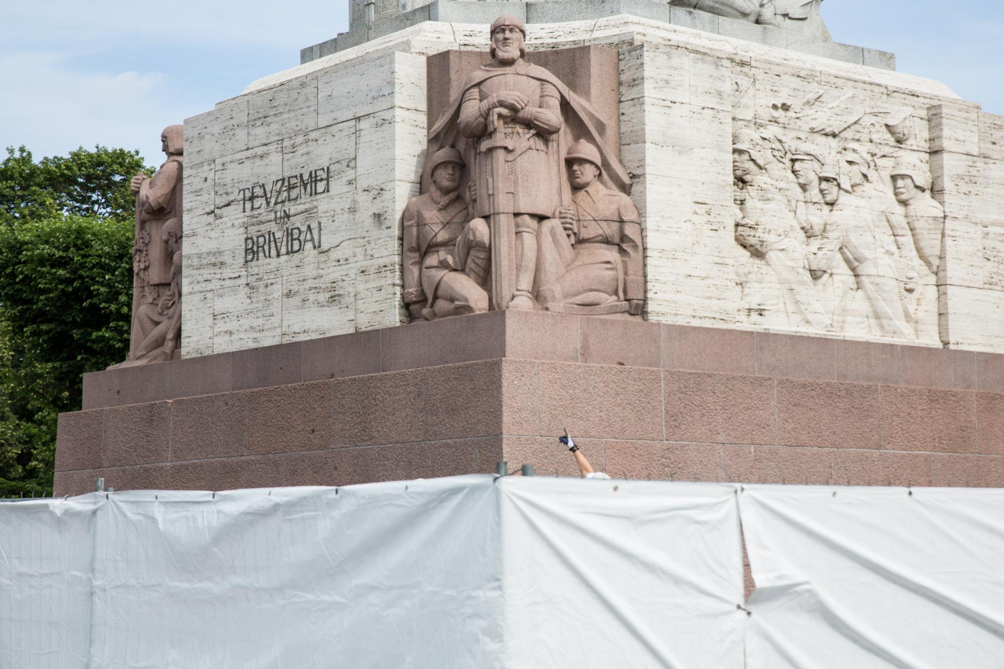 Otrdienas rītā novērots, ka sākta Brīvības pieminekļa restaurācija.