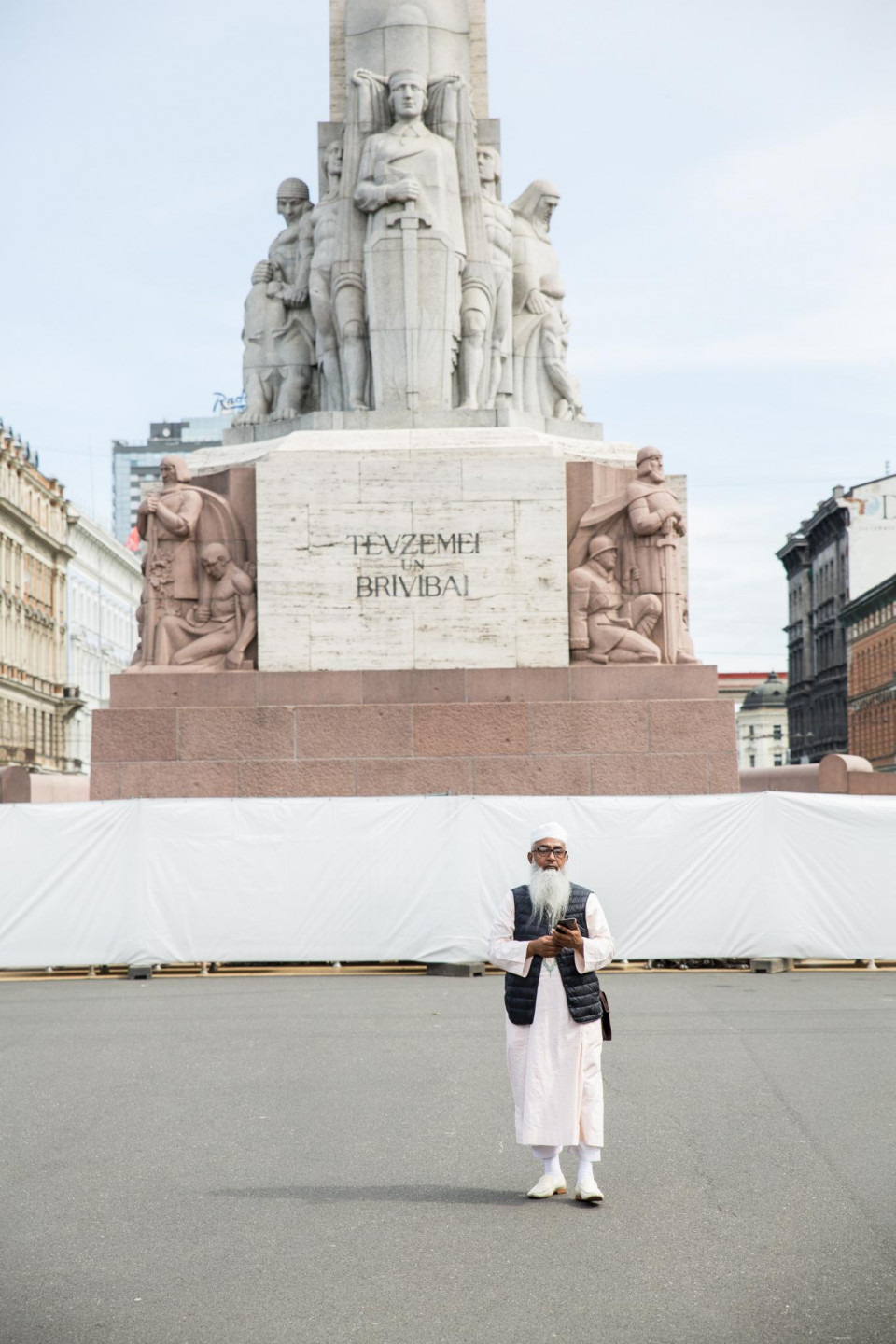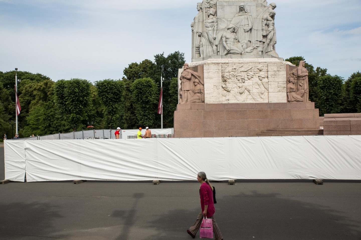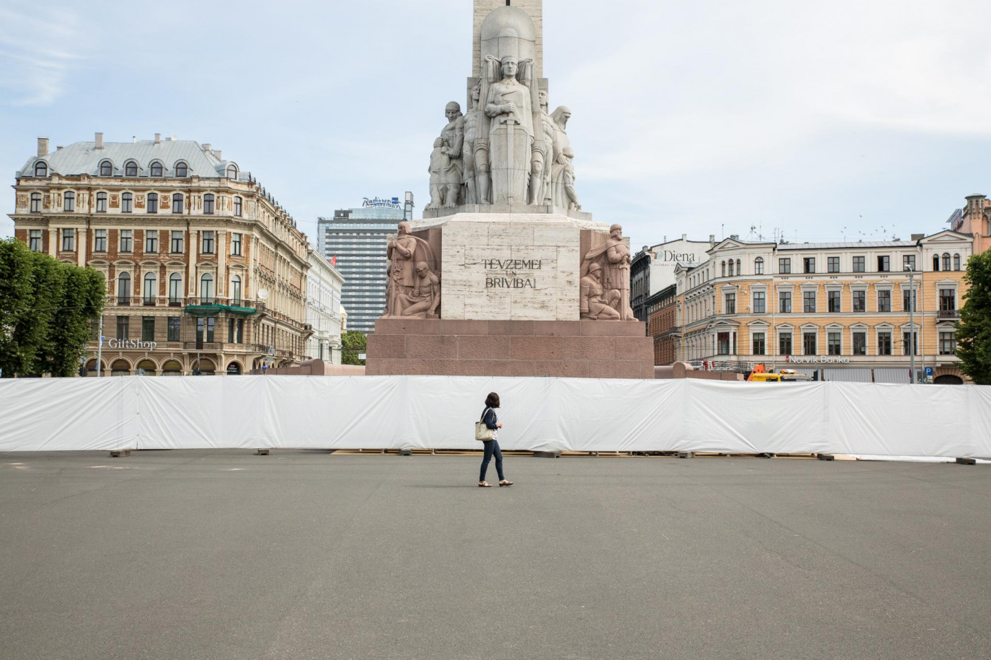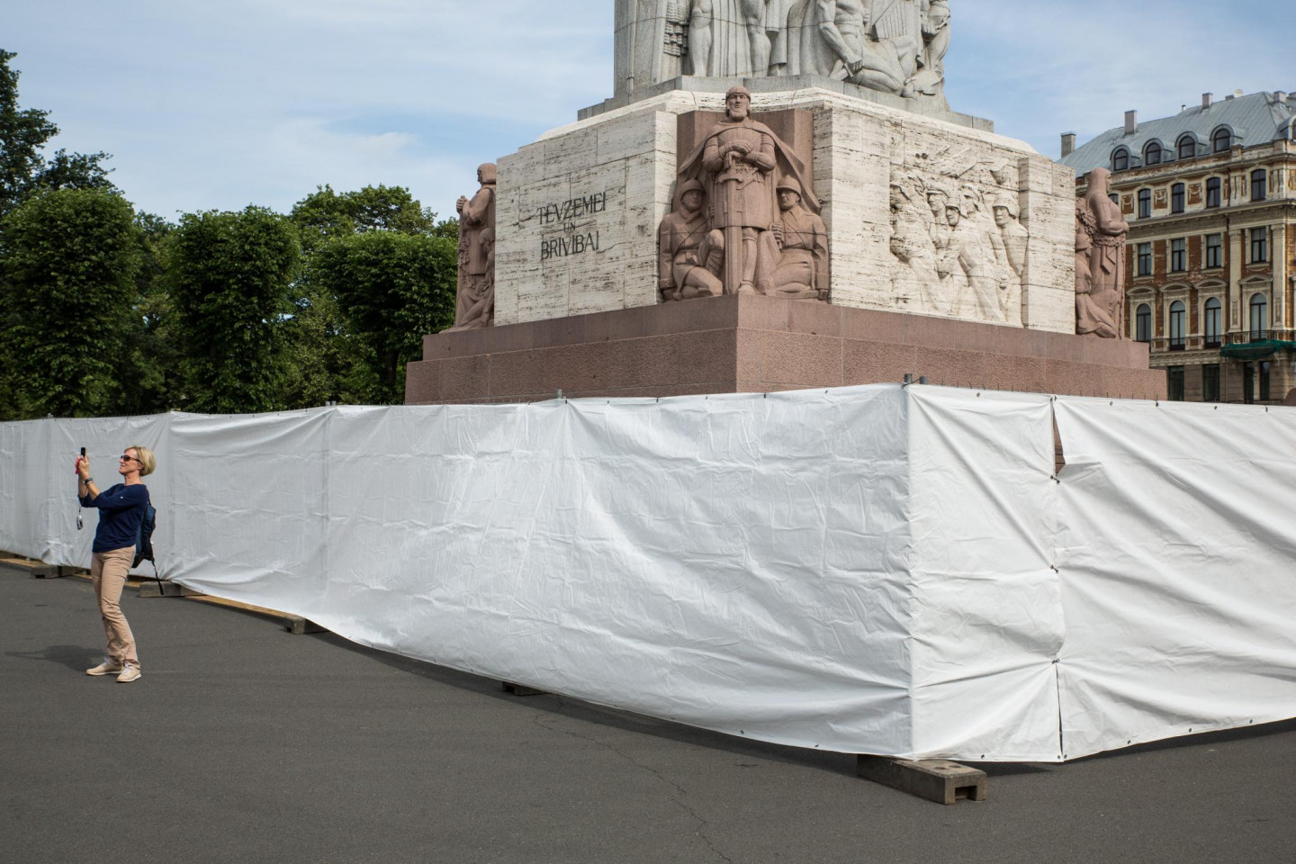 Kādēļ Brīvības piemineklis apjozts ar baltu žogu?