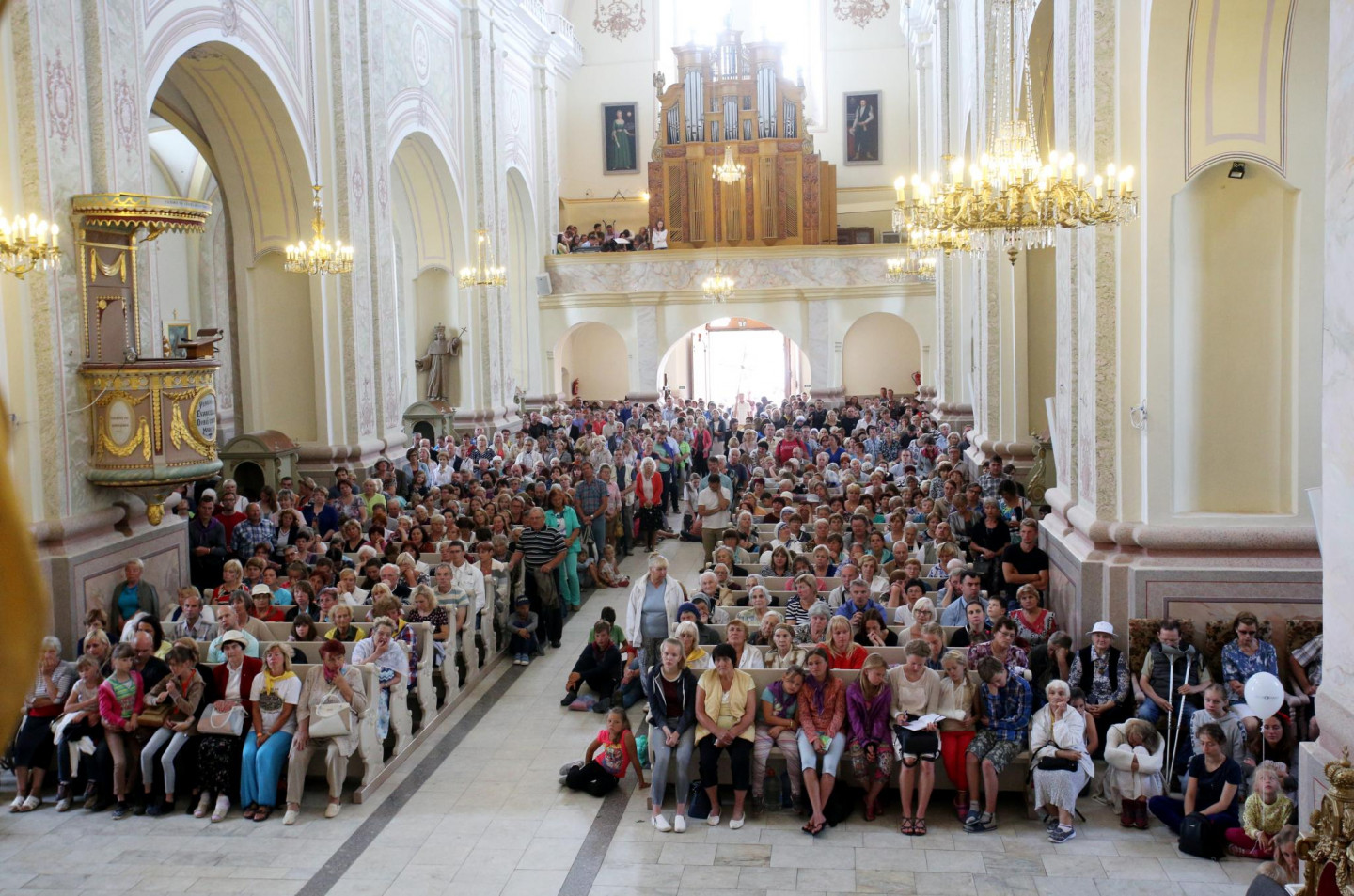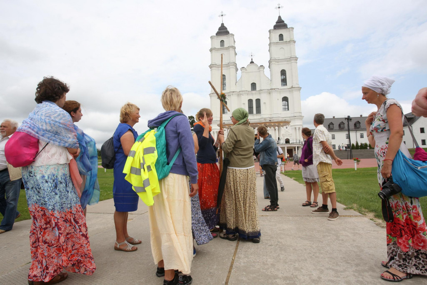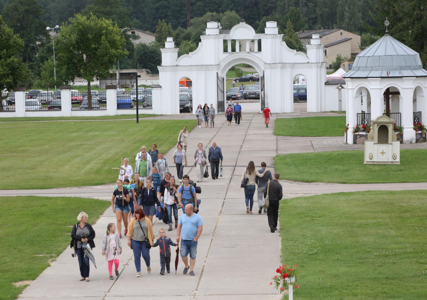 Aglonā turpina ierasties svētceļotāju grupas, kas piedalās Vissvētākās Jaunavas Marijas debesīs uzņemšanas svētkos.