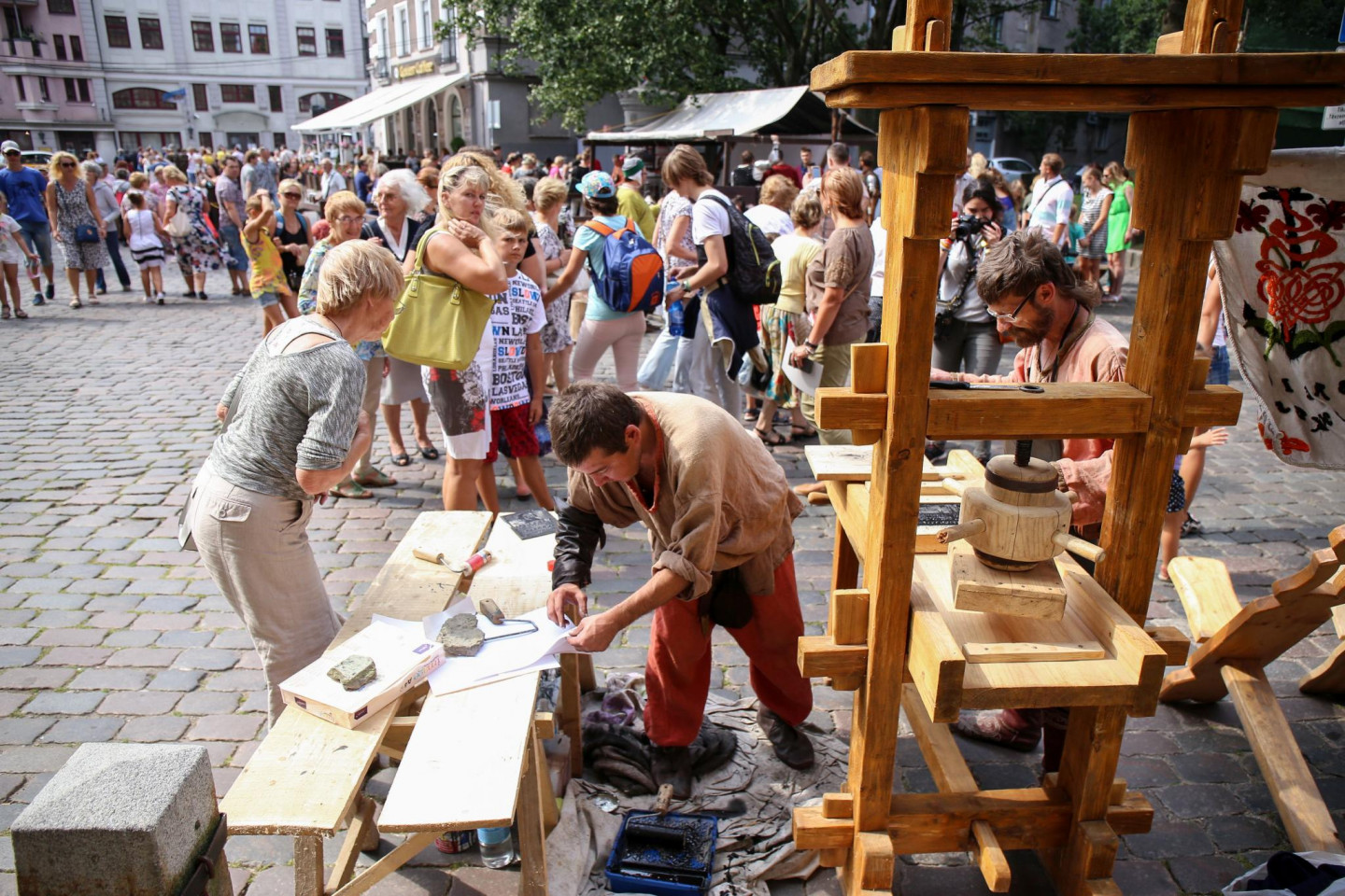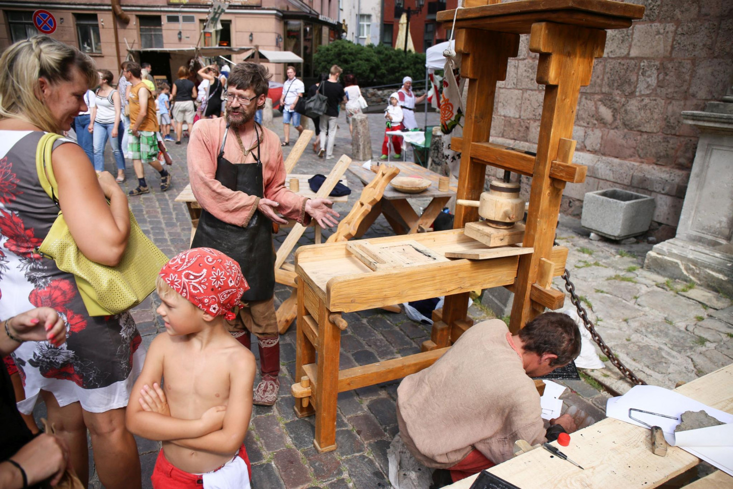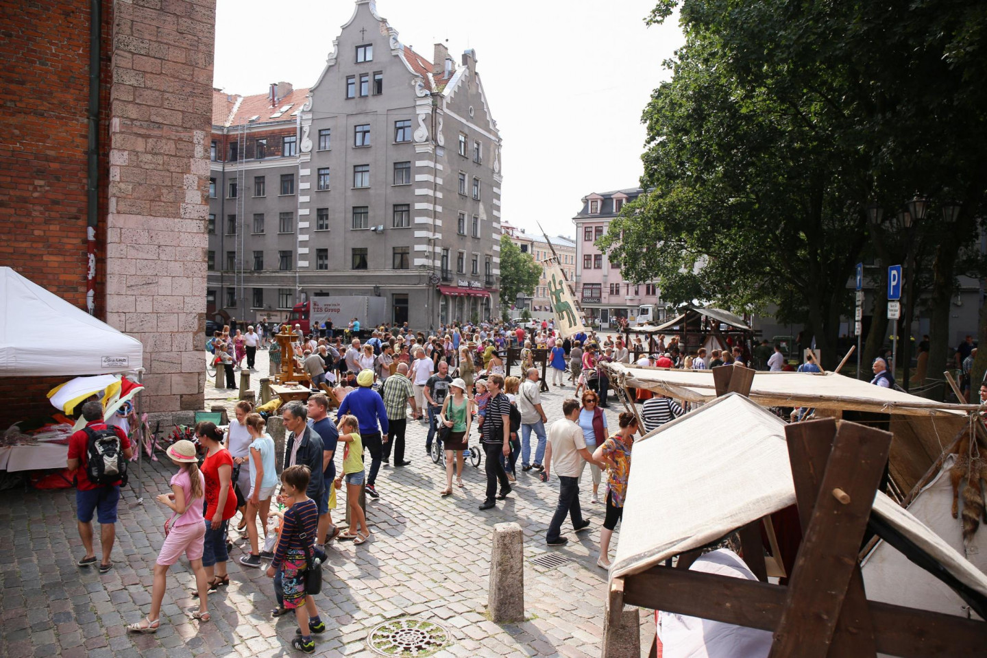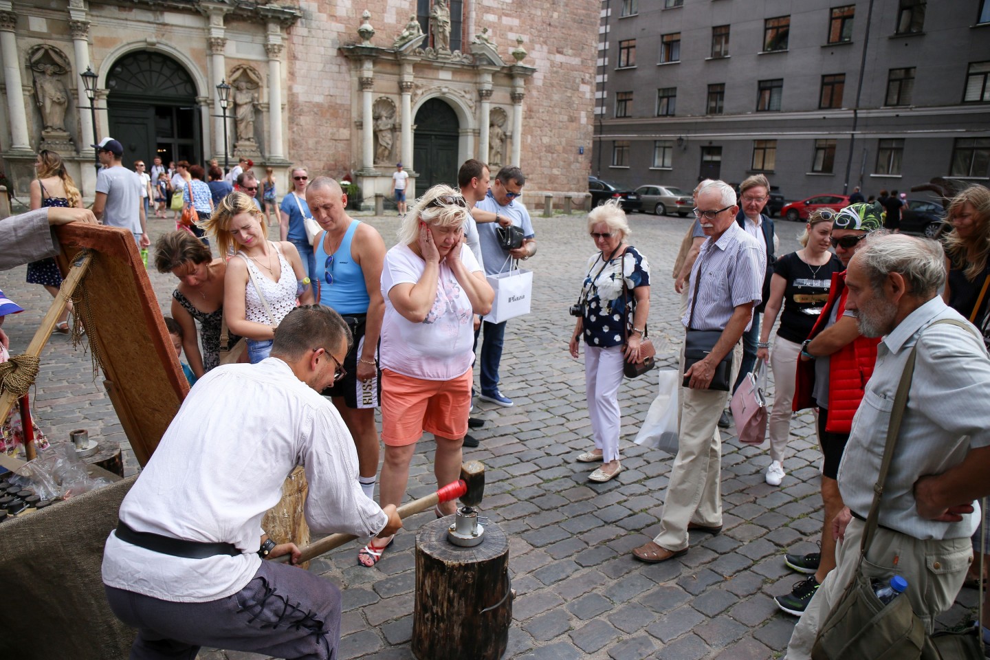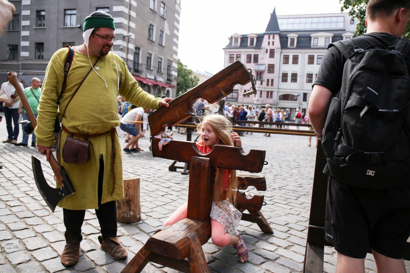 Rīgas svētku laikā interesentiem bijusi iespēja apmeklēt arī viduslaiku imitācijas stūrīti Vecrīgā.