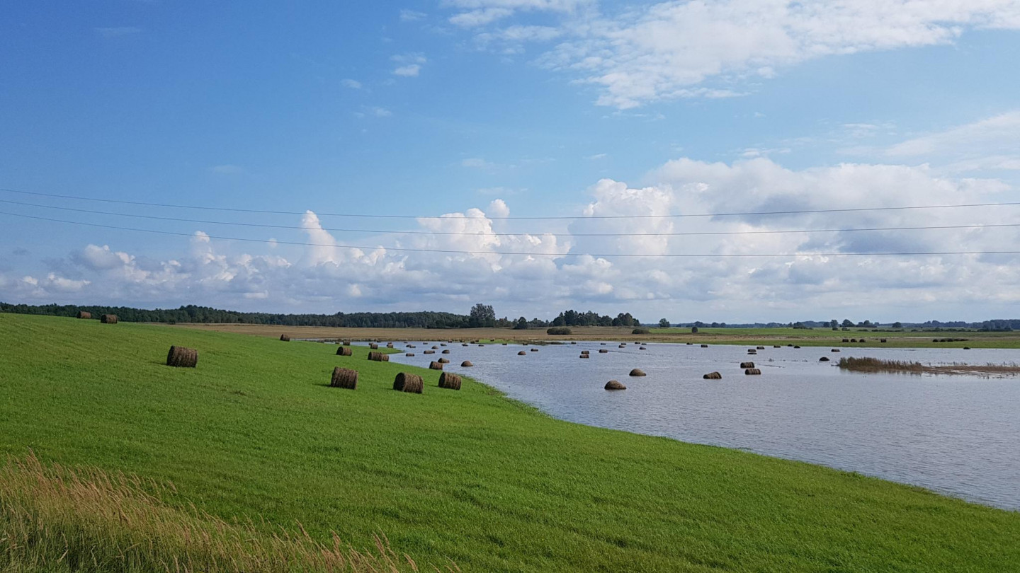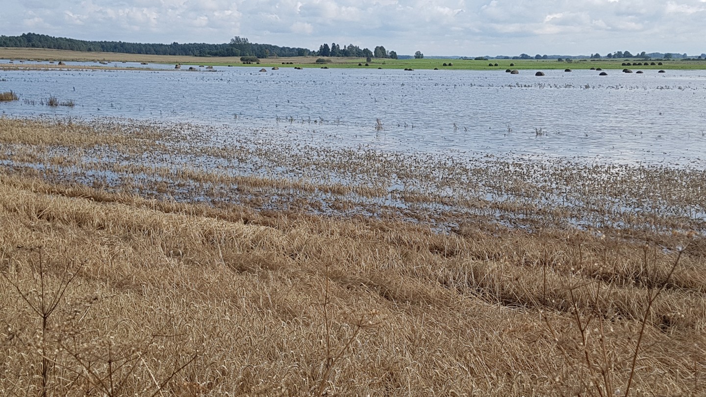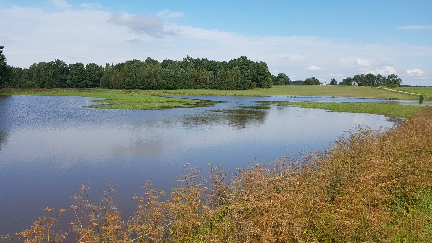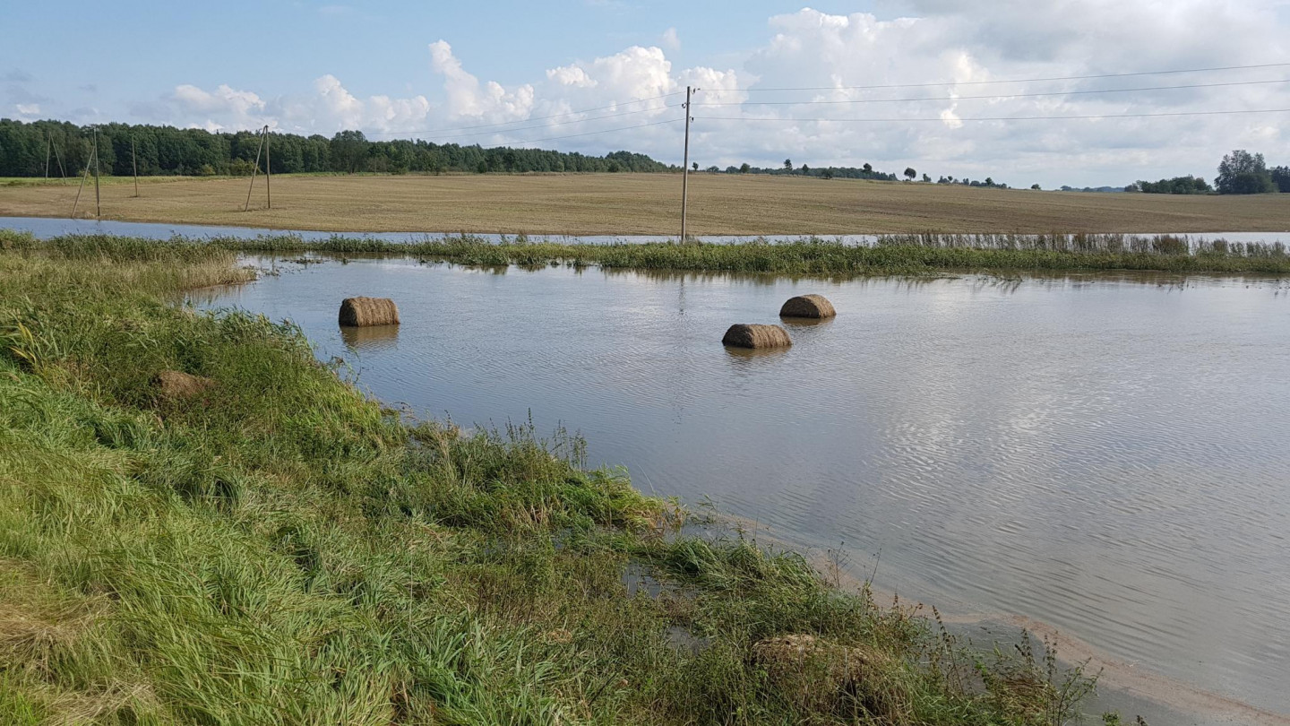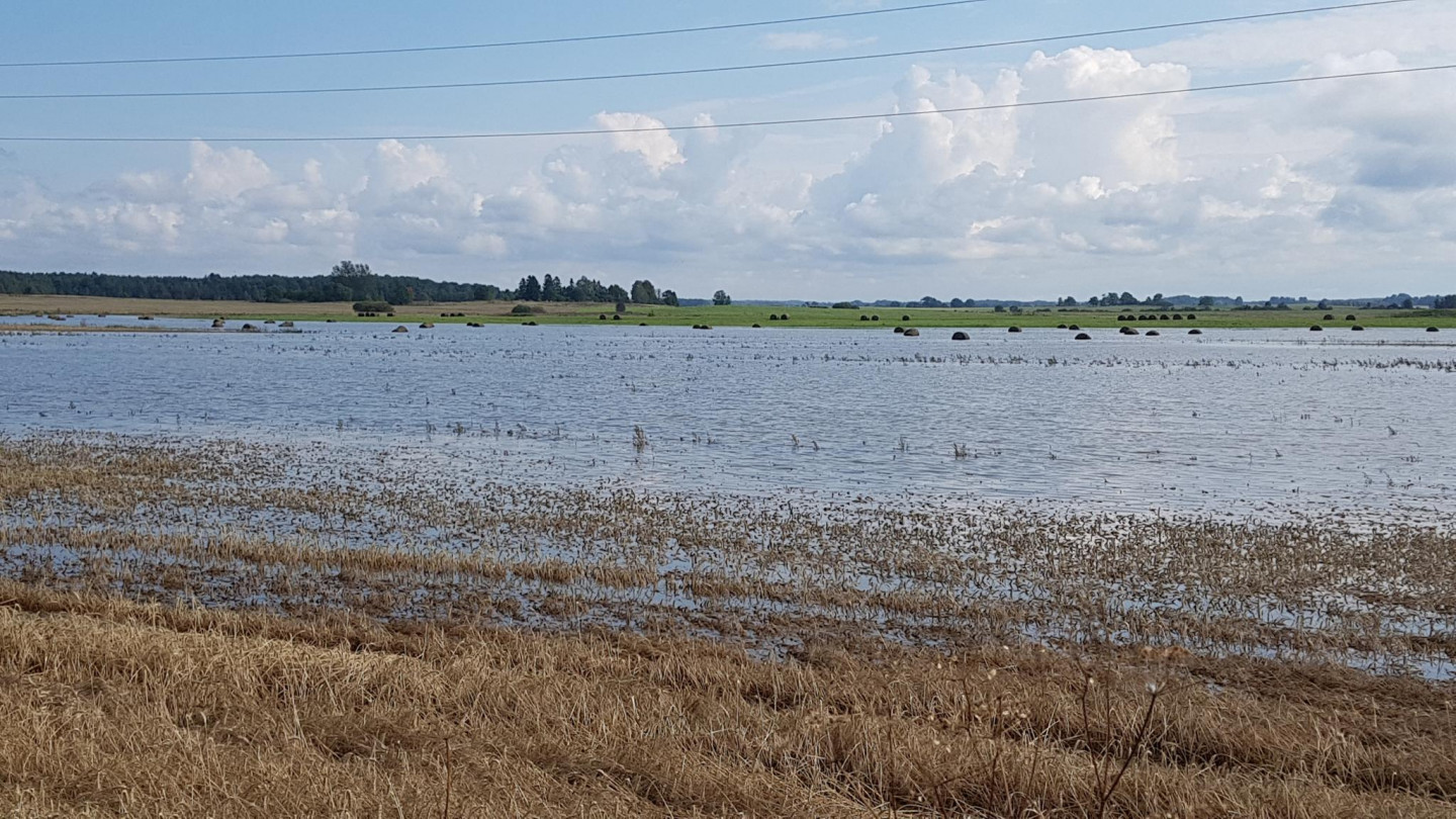 Jau aizvadītās nedēļas nogalē stipro lietavu dēļ applūduši lauki Kurzemē. Arī šodien situācija nav īpaši mainījusies un daudzviet pļavas pārvērtušās par ūdenstilpnēm.