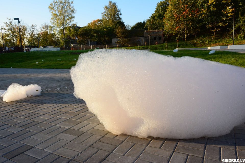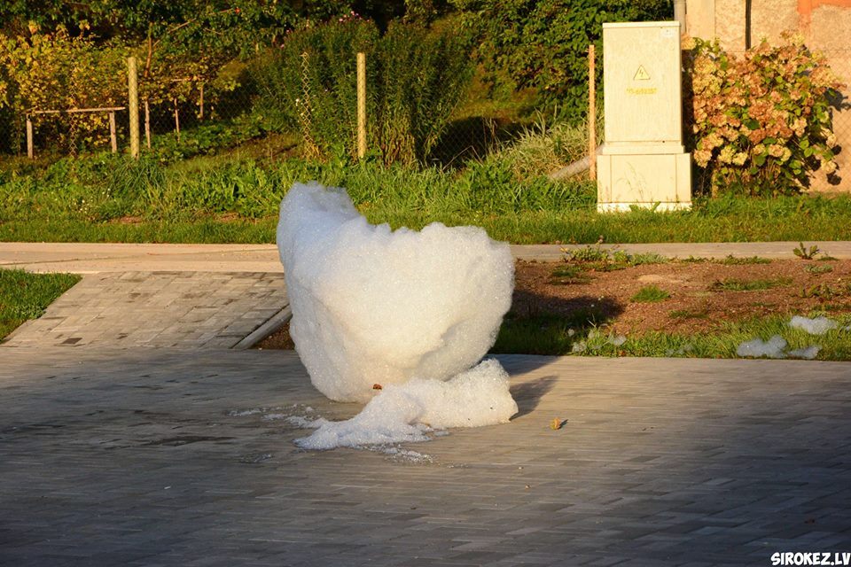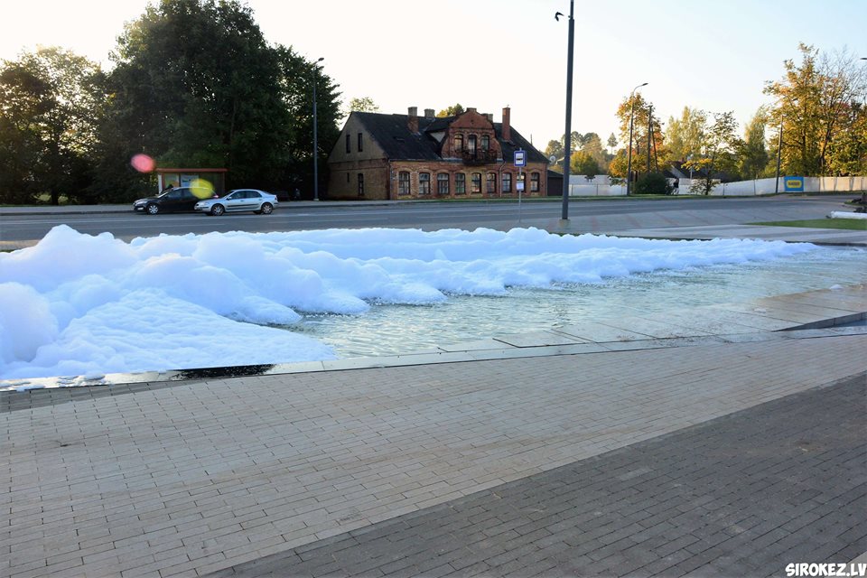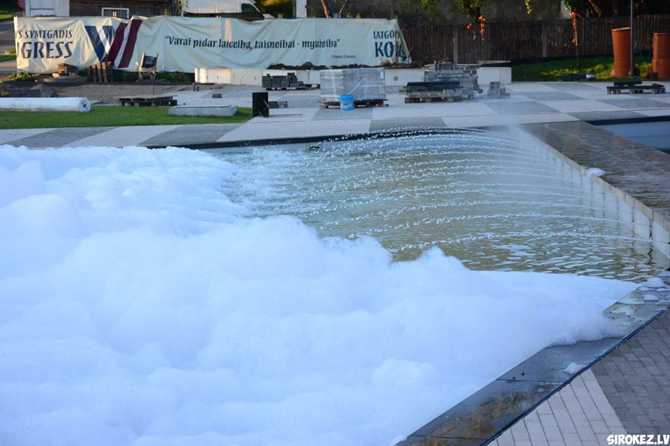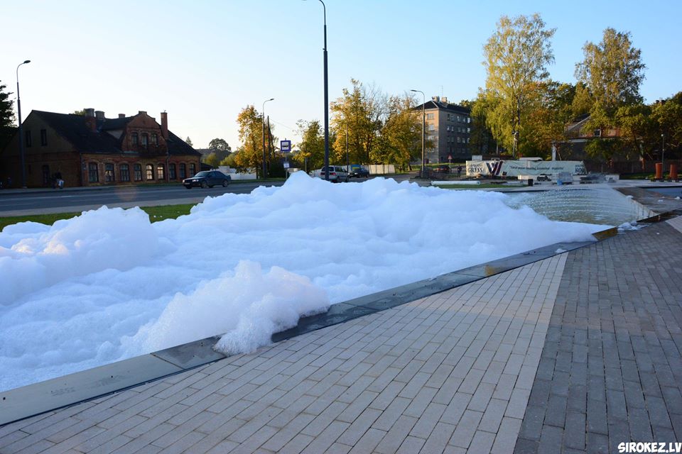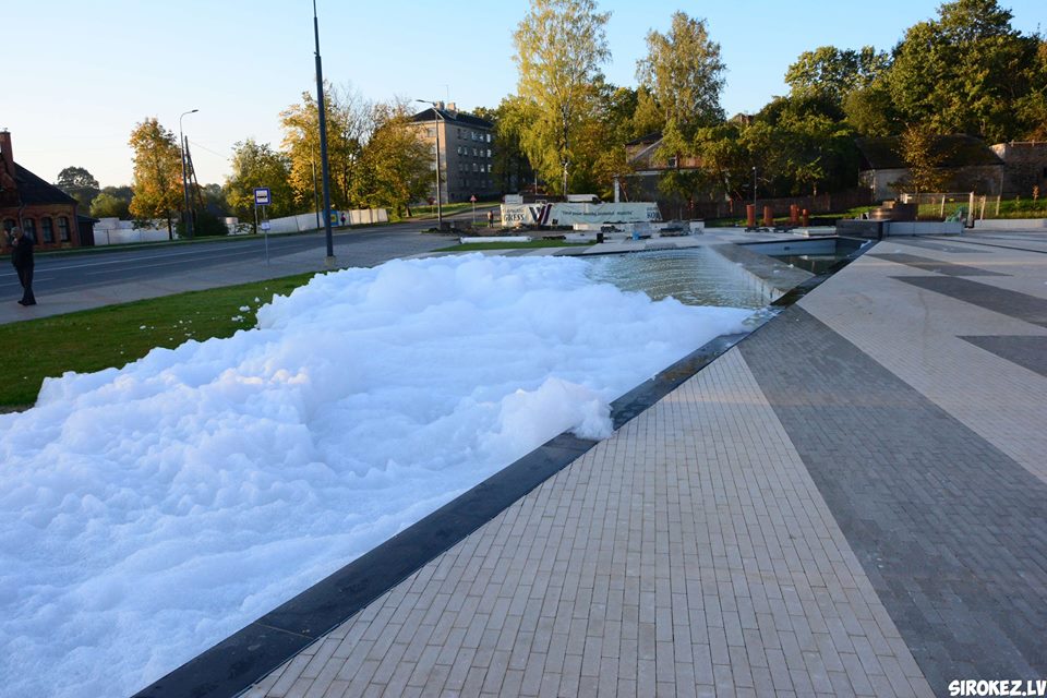 Kāds jokdaris pirmdien Rēzeknes pilsētas strūklakā ielēja mazgāšanas līdzekli, kas radīja pamatīgas putas.