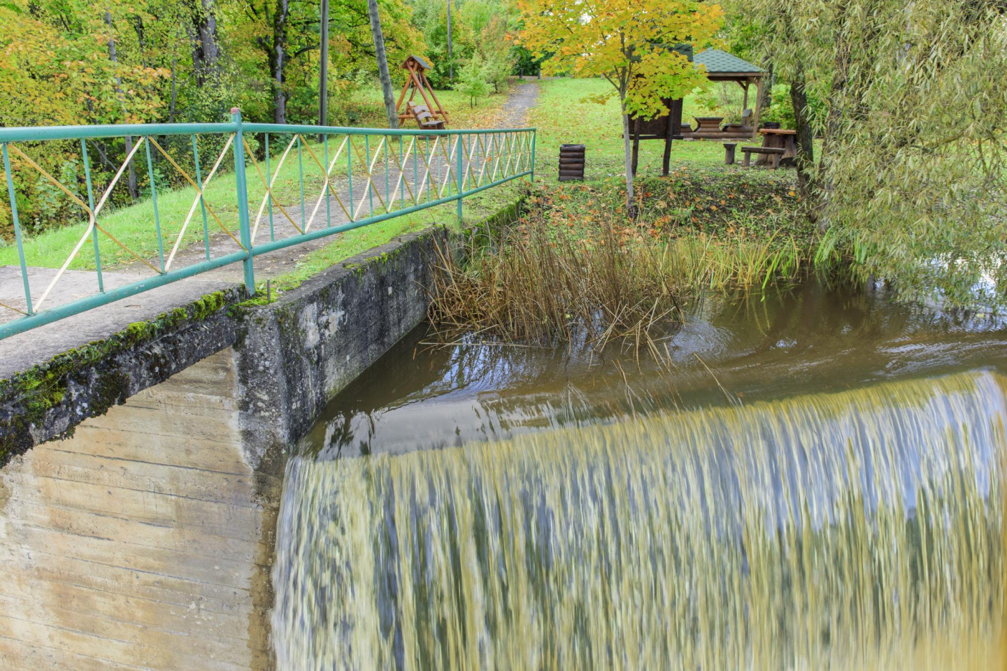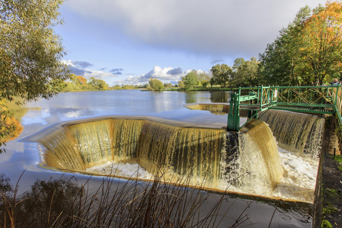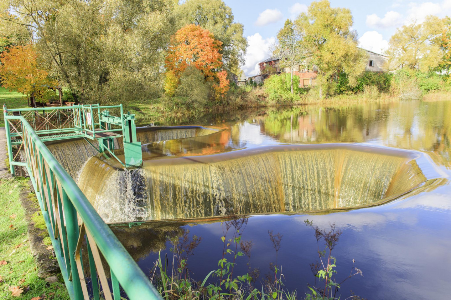 19. gadsimta beigās uz Ezeres upes izveidotais Dzirnavu dīķis arī šobrīd ir pagasta lielākā ūdenstilpe. Dīķa krastā aplūkojamas Ezeres ūdensdzirnavas, kas celtas 1910. gadā. Latvijai netipiskās kļavu lapas formas slūžas, kas rada lielisku skatu. ©Jānis Saliņš, F64 Photo Agency
