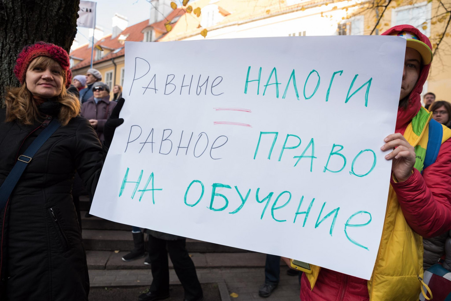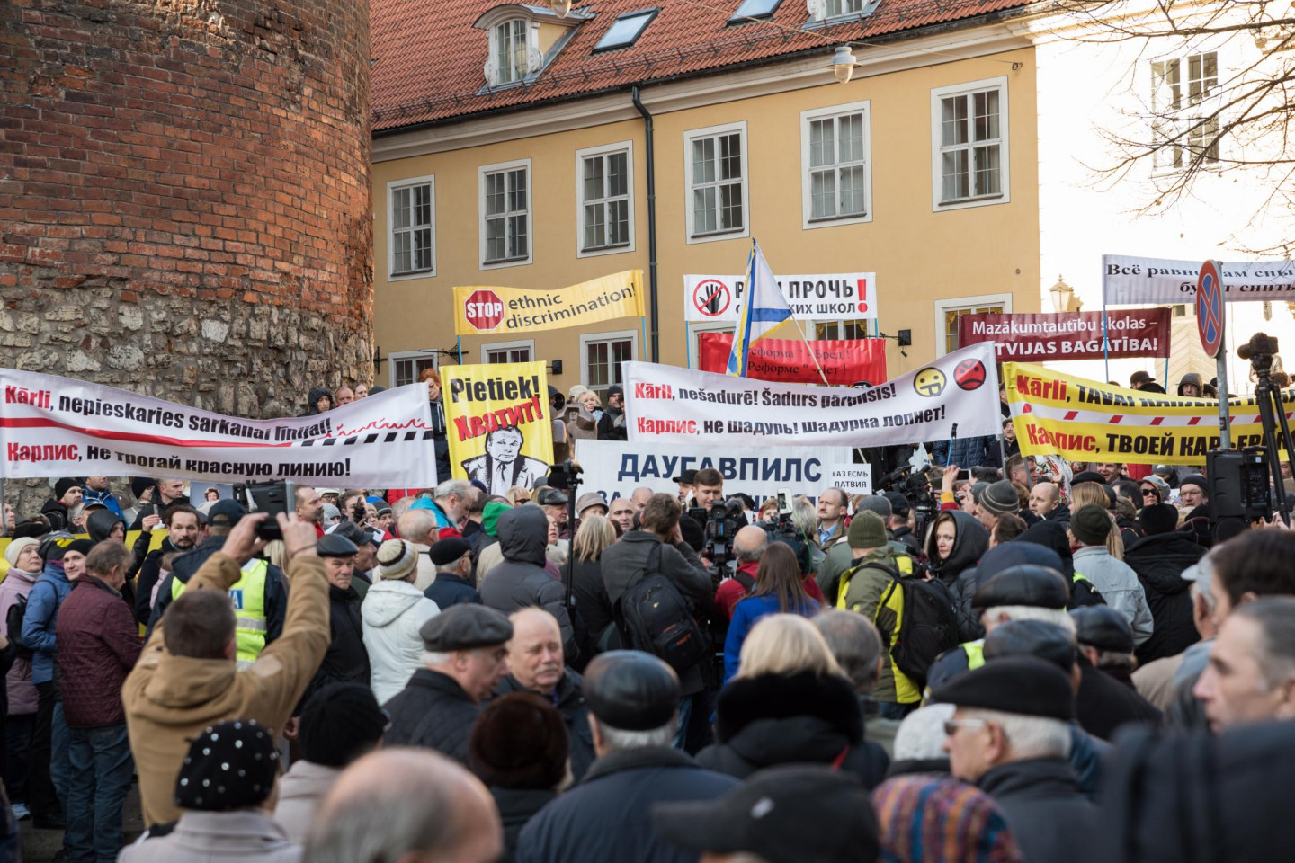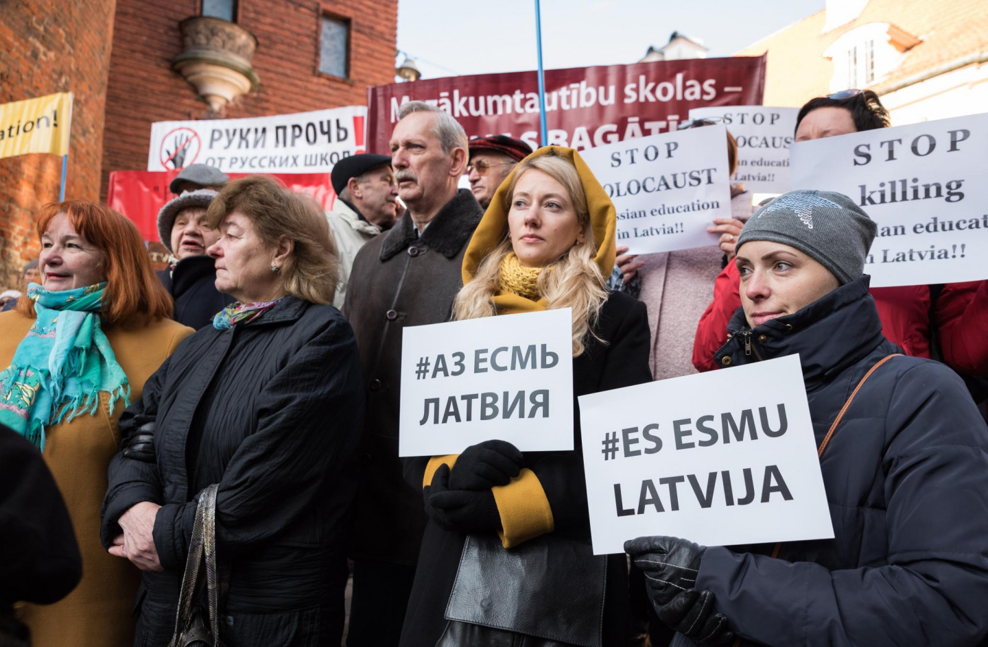 Šodien plkst.12 pie Izglītības un zinātnes (IZM) ministrijas notika protesta akcija, kurā tā dēvētie krievu skolu aizstāvji iestājās pret ieceri pāriet uz izglītību latviešu valodā.