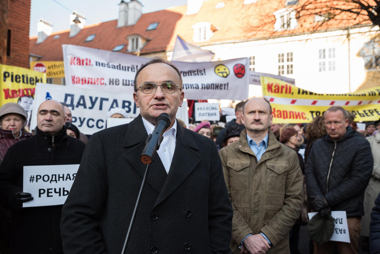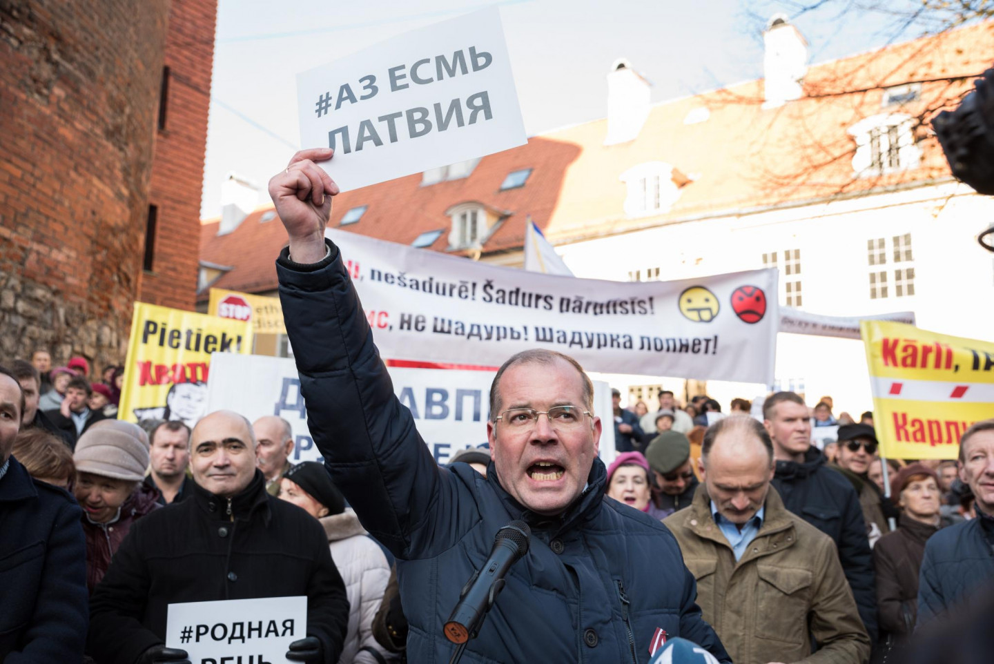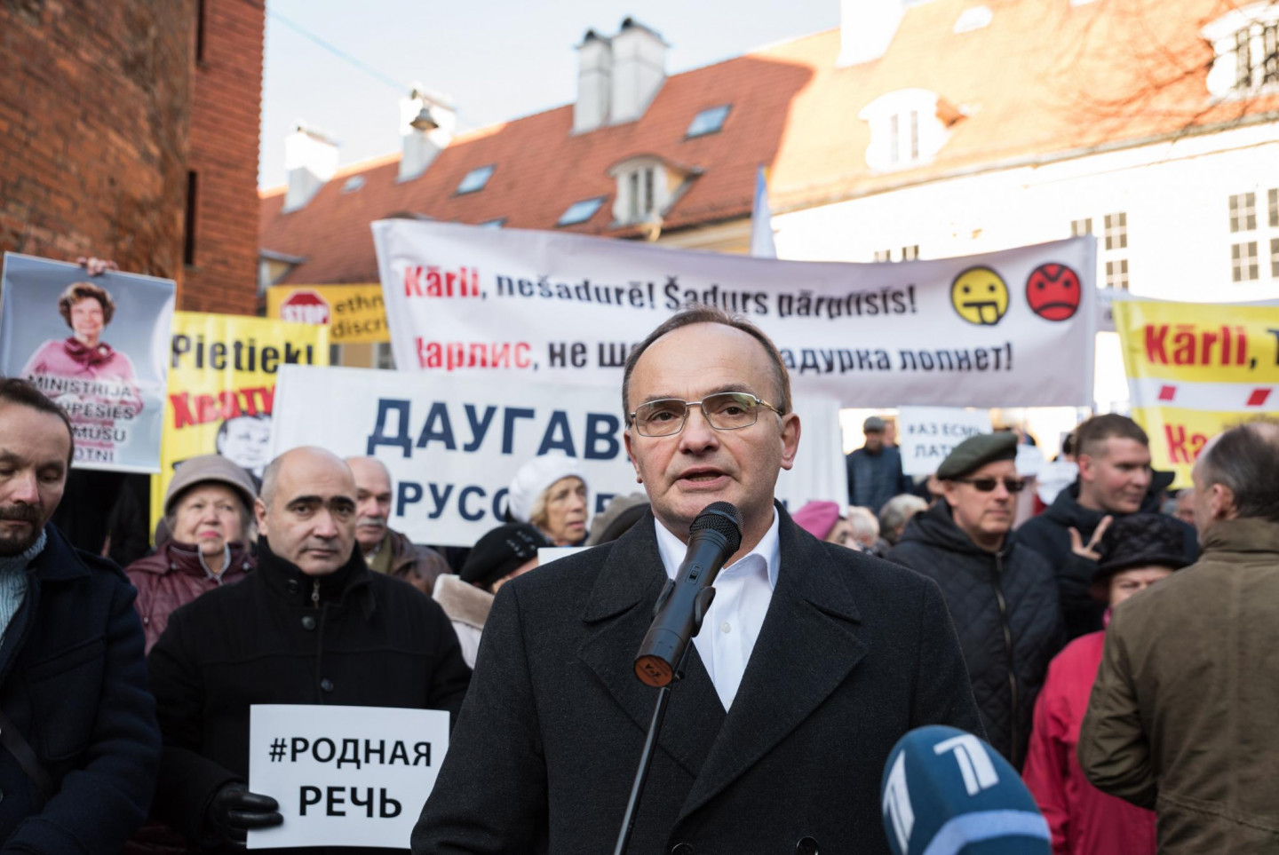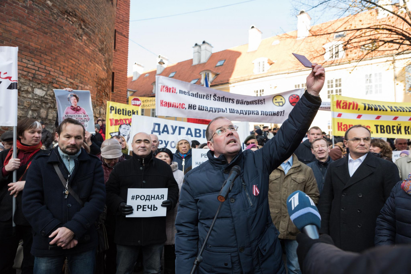 Šodien plkst.12 pie Izglītības un zinātnes (IZM) ministrijas notika protesta akcija, kurā tā dēvētie krievu skolu aizstāvji iestājās pret ieceri pāriet uz izglītību latviešu valodā.