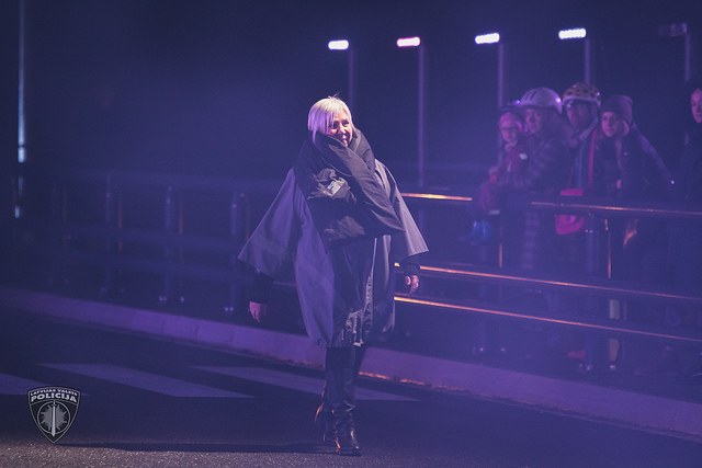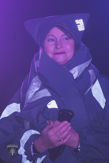 Valsts policija sadarbībā ar Latvijas Mākslas akadēmijas (LMA) maģistra programmas absolventi Sabīni Vīksni realizēja unikālu projektu – īpaši radītu gaismu atstarojošu tērpu un aksesuāru kolekcijas modes skati SPIID.