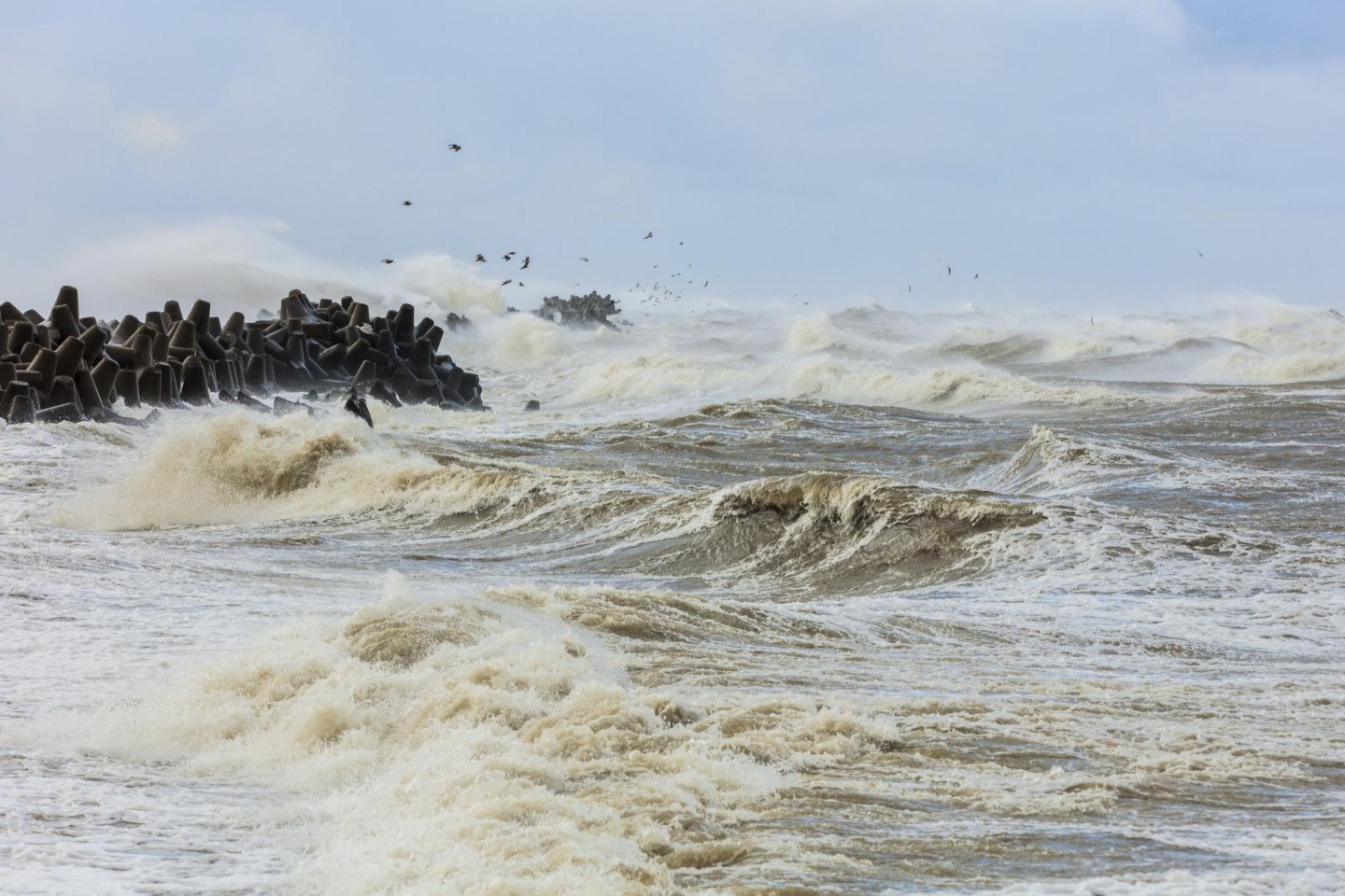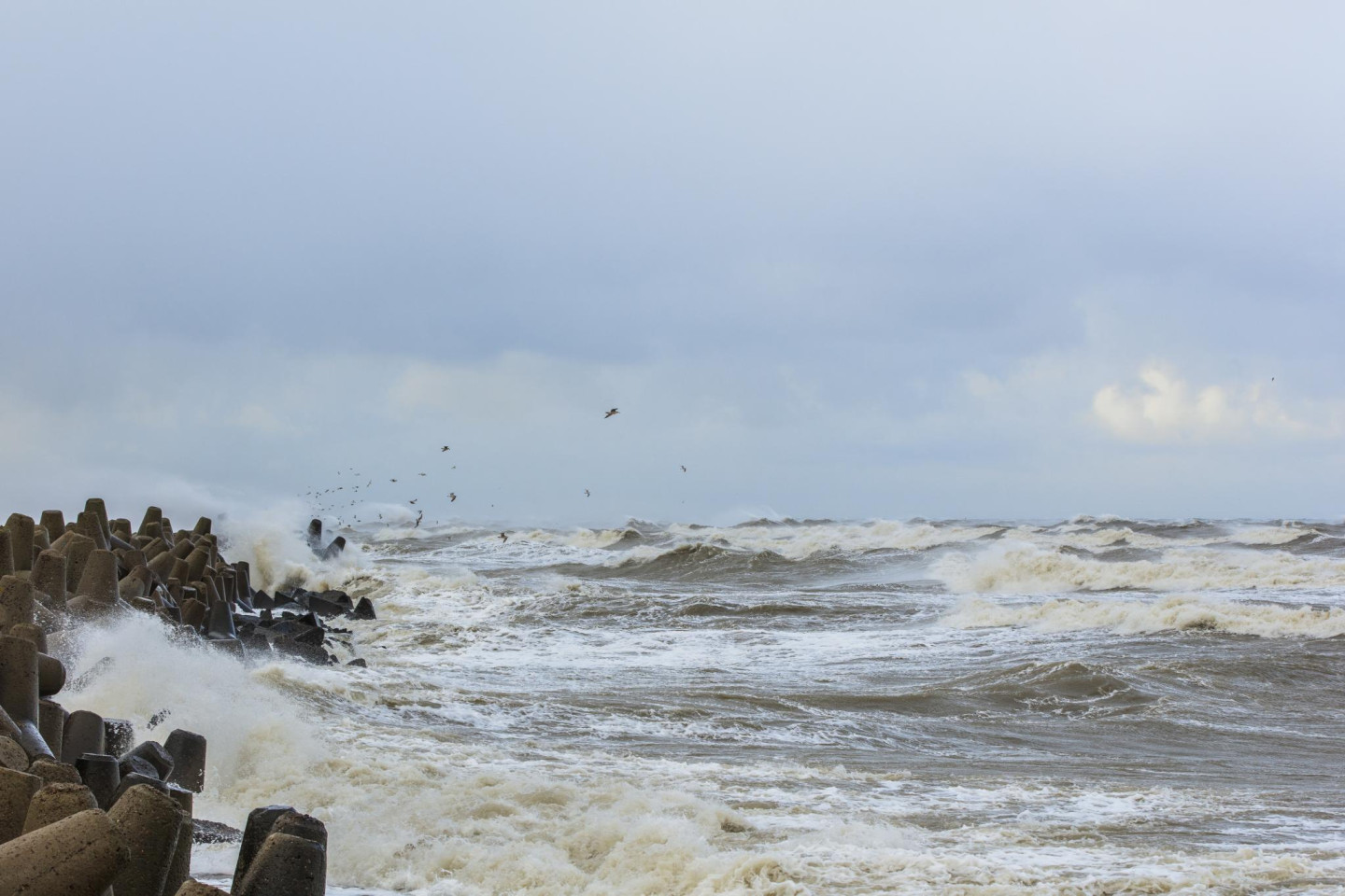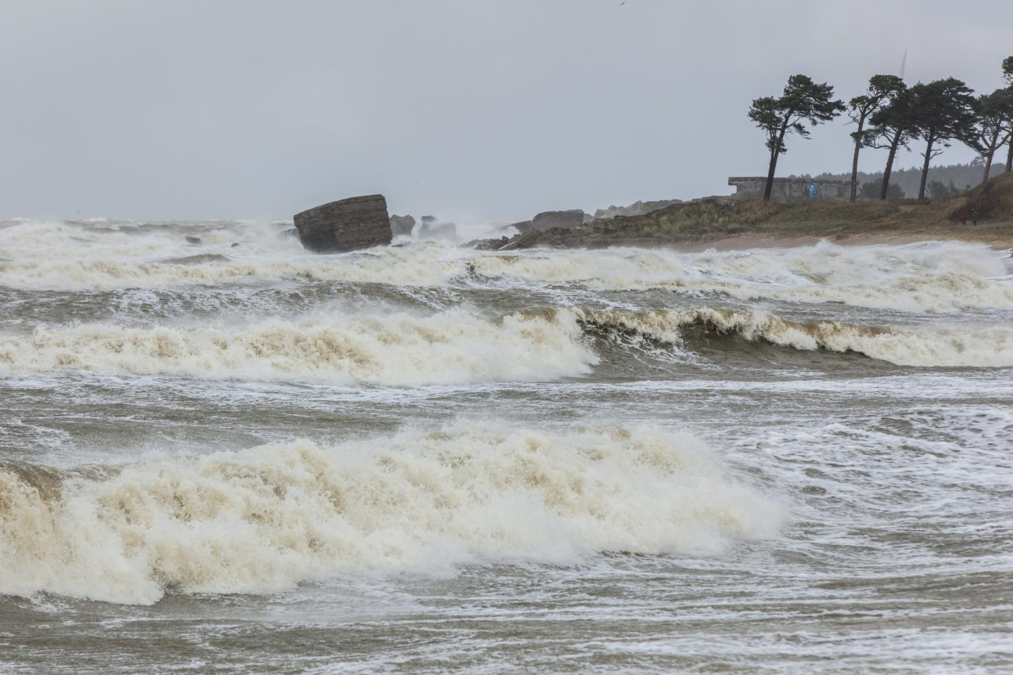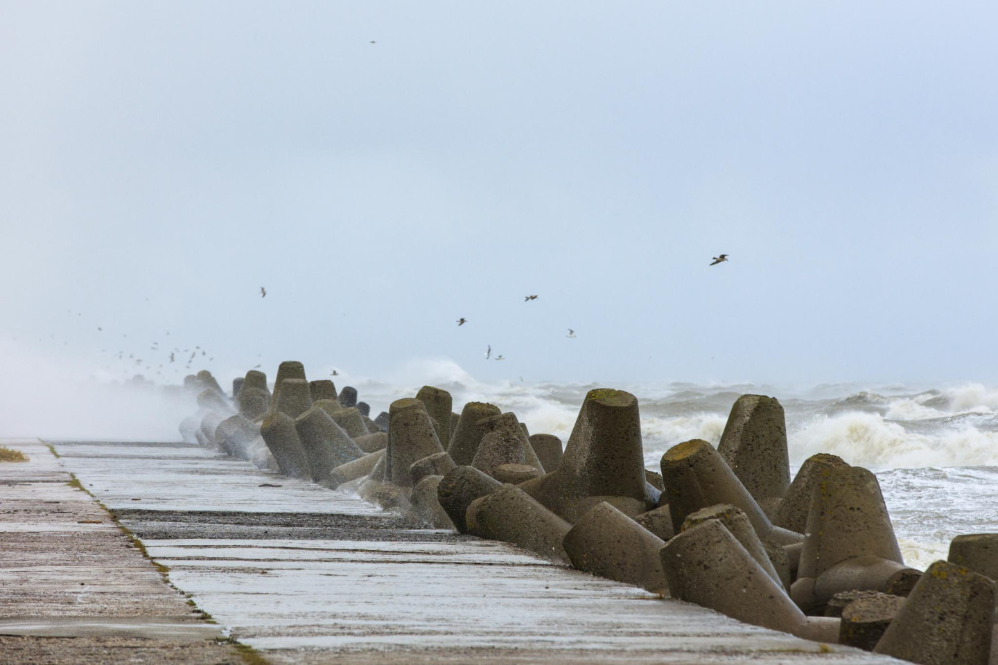 Kā brīvdienās vētra plosījās pie Liepājas fortu mola