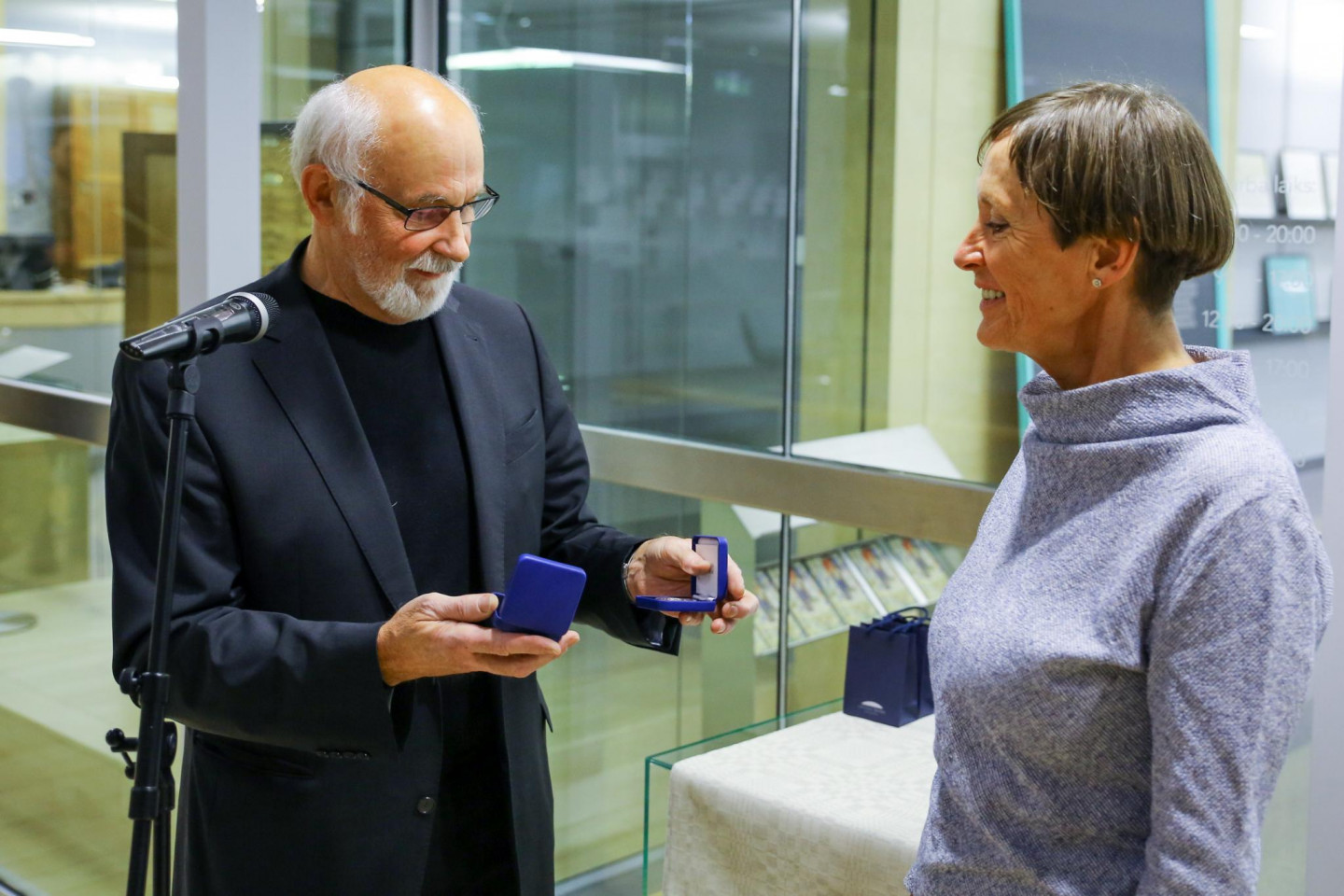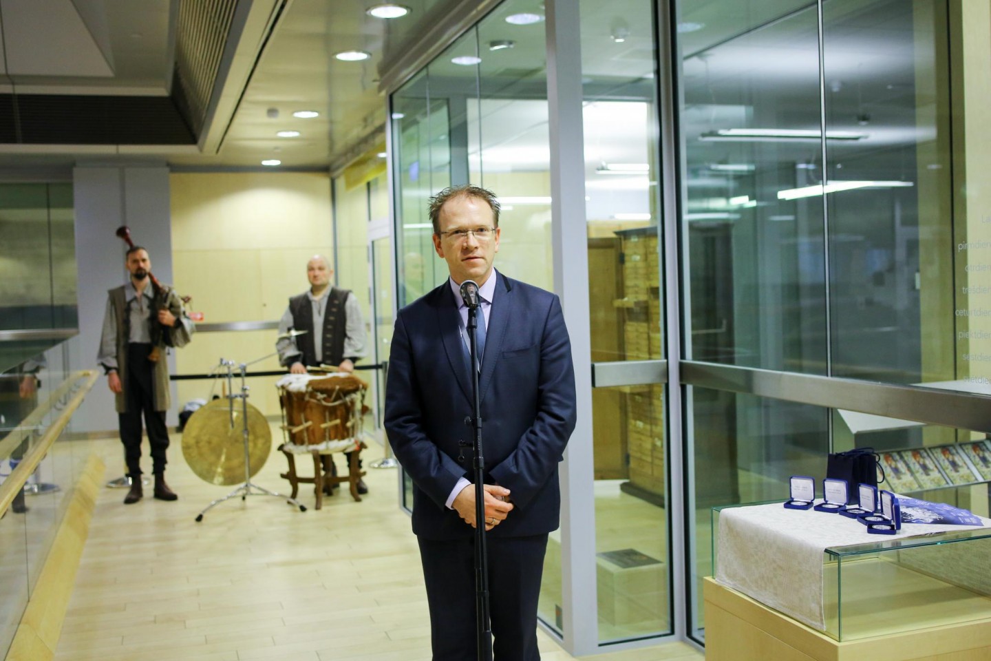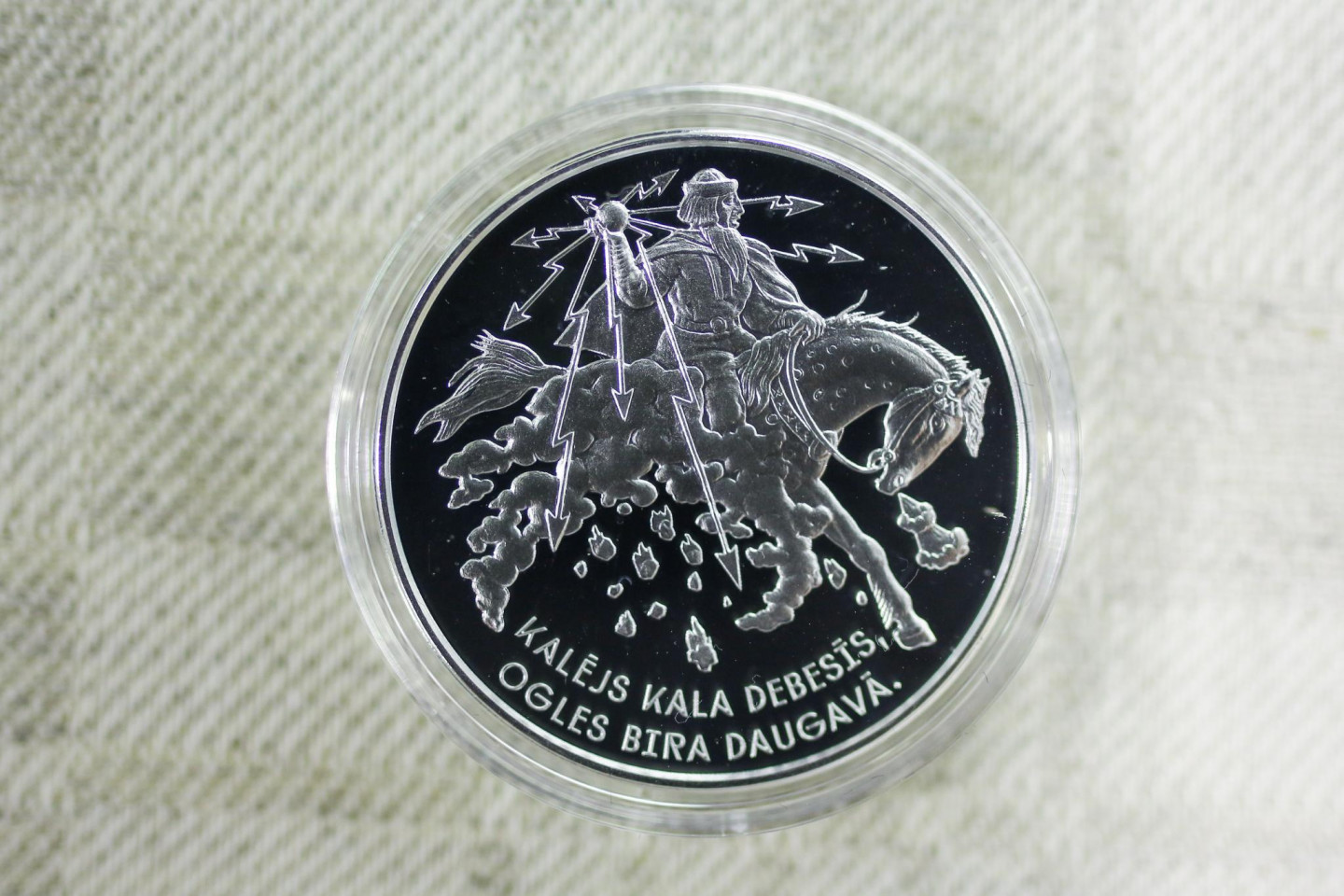 Latvijas banka prezentējusi tautasdziesmām veltītu piecu eiro sudraba kolekcijas monētu "Kalējs kala debesīs" Pasākumā piedalījās Latvijas Nacionālās bibliotēkas Attīstības departamenta direktors Uldis Zariņš, Latvijas Universitātes Humanitāro zinātņu fakultātes profesore Janīna Kursīte-Pakule, monētas grafiskā dizaina autors Edgars Folks un Latvijas Bankas monētu dizaina komisijas priekšsēdētāja vietnieks Laimonis Šēnbergs.