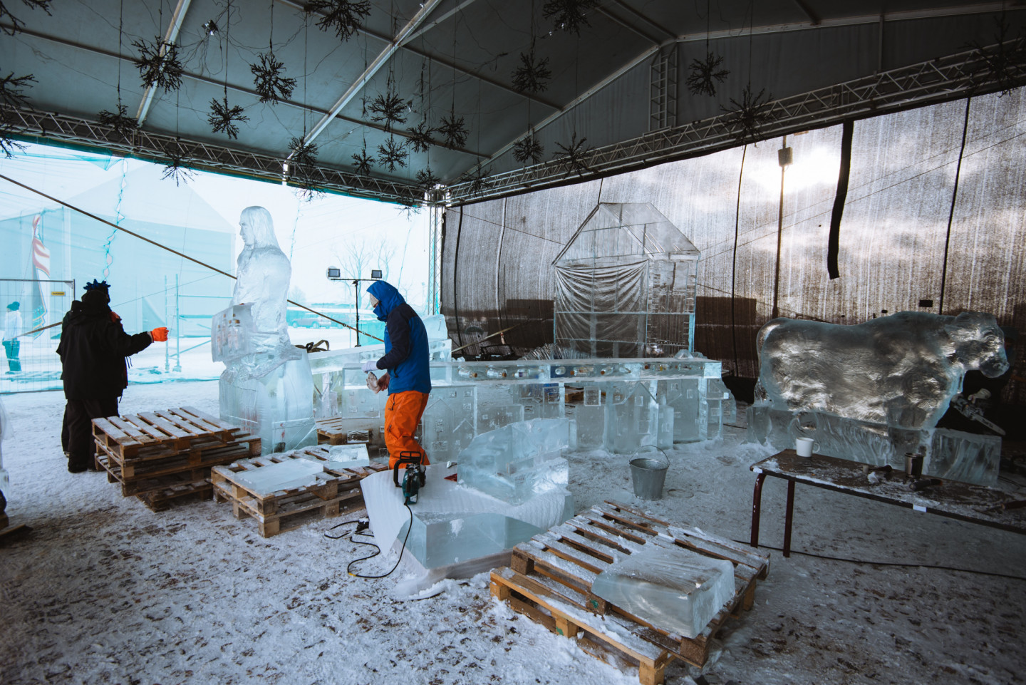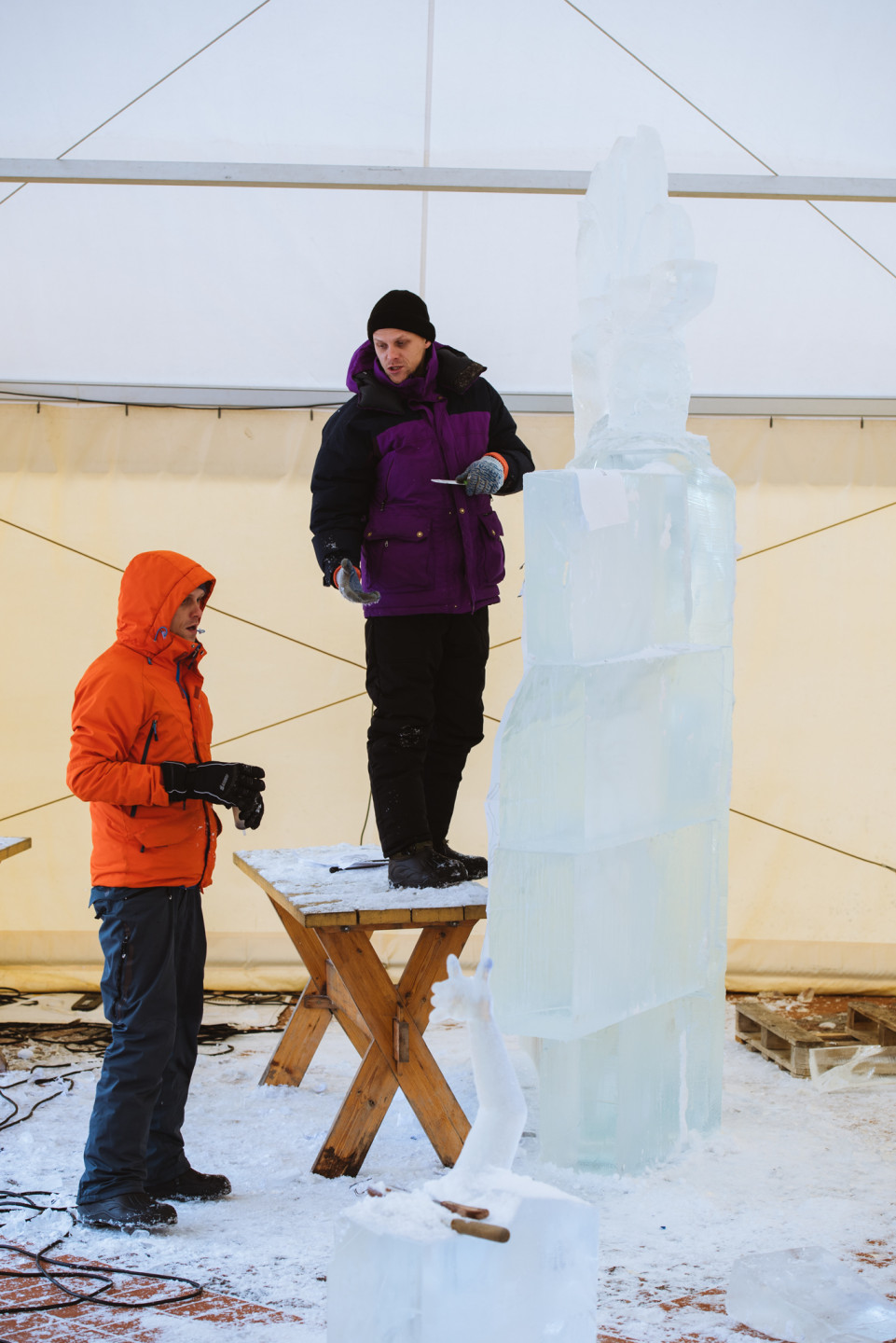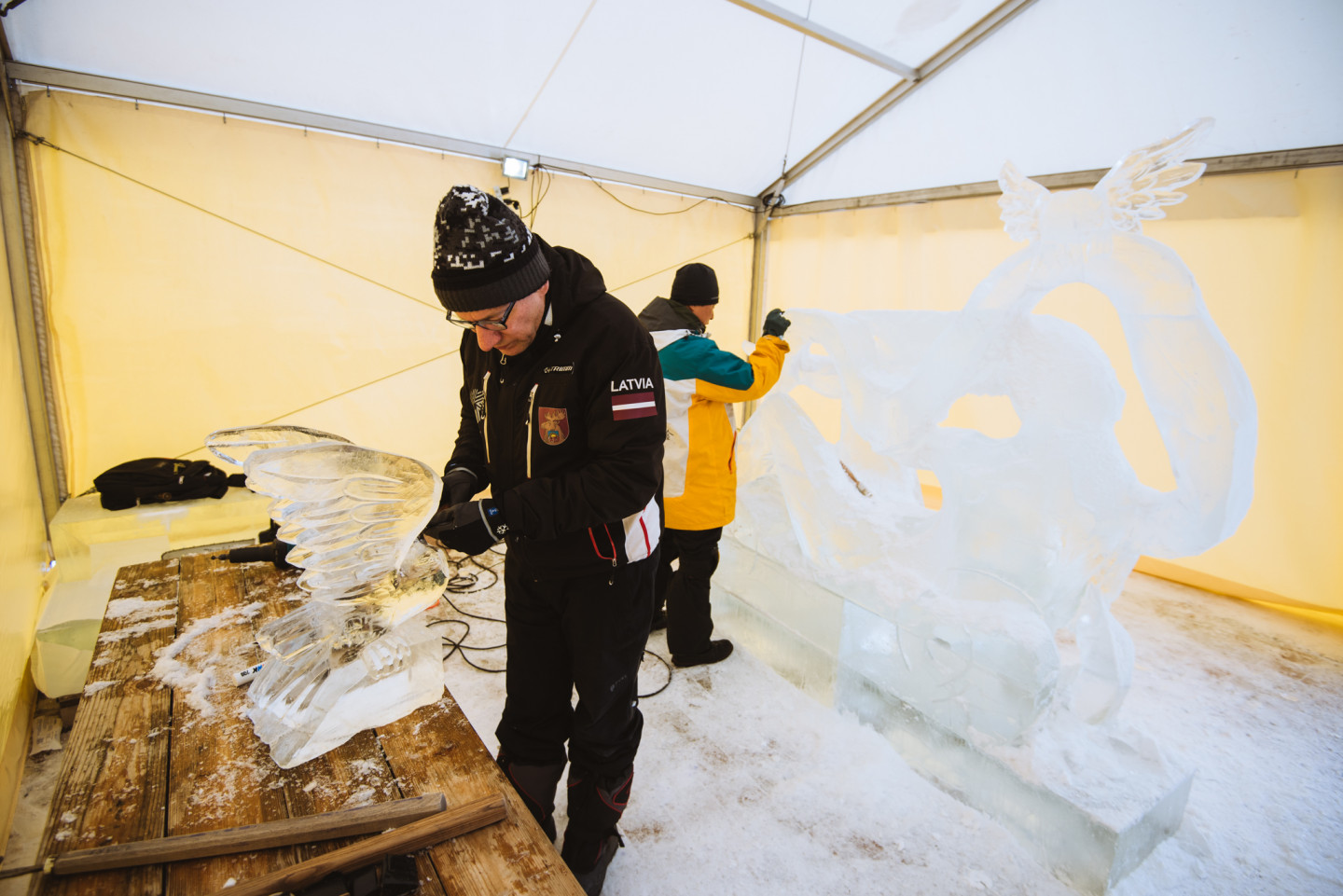 Šodien 20. Starptautiskā Ledus skulptūru festivāla konkursa trešajā dienā tēlnieki pāros strādāja pie lielo skulptūru detaļu izstrādes. Skulptūras vēl ir tapšanas procesā un mākslinieki darbu turpinās līdz pat piektdienas pusdienlaikam. Paralēli konkursa darbu veidošanai Jelgavā top lielformāta ledus objekti, tādi kā "Koskenkorva" ledus bārs, vairākas foto skulptūras, ledus labirints un slidkalniņš bērniem u.c. Kā iepriekš vēstīts Jelgavas pilsētā no 9. līdz 11. februārim jau 20. reizi notiks Starptautiskais Ledus skulptūru festivāls. Atzīmējot šo jubileju, pirmo reizi festivāls notiks trīs vietās pilsētā: Pasta salā, Jāņa Čakstes bulvārī un Hercoga Jēkaba laukumā. Apmeklētājiem būs iespēja apskatīt kopumā vairāk nekā 65 ledus skulptūras un dažādus ledus objektus, kā arī baudīt populāru mūziķu koncertus, izrādes bērniem, radošās darbnīcas, tirdziņu un daudz ko citu.