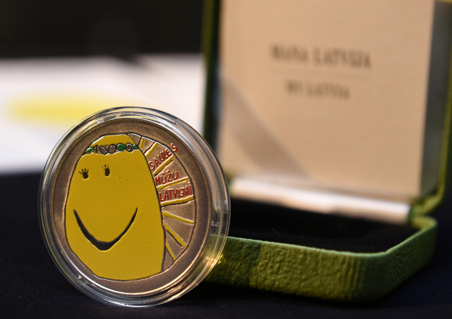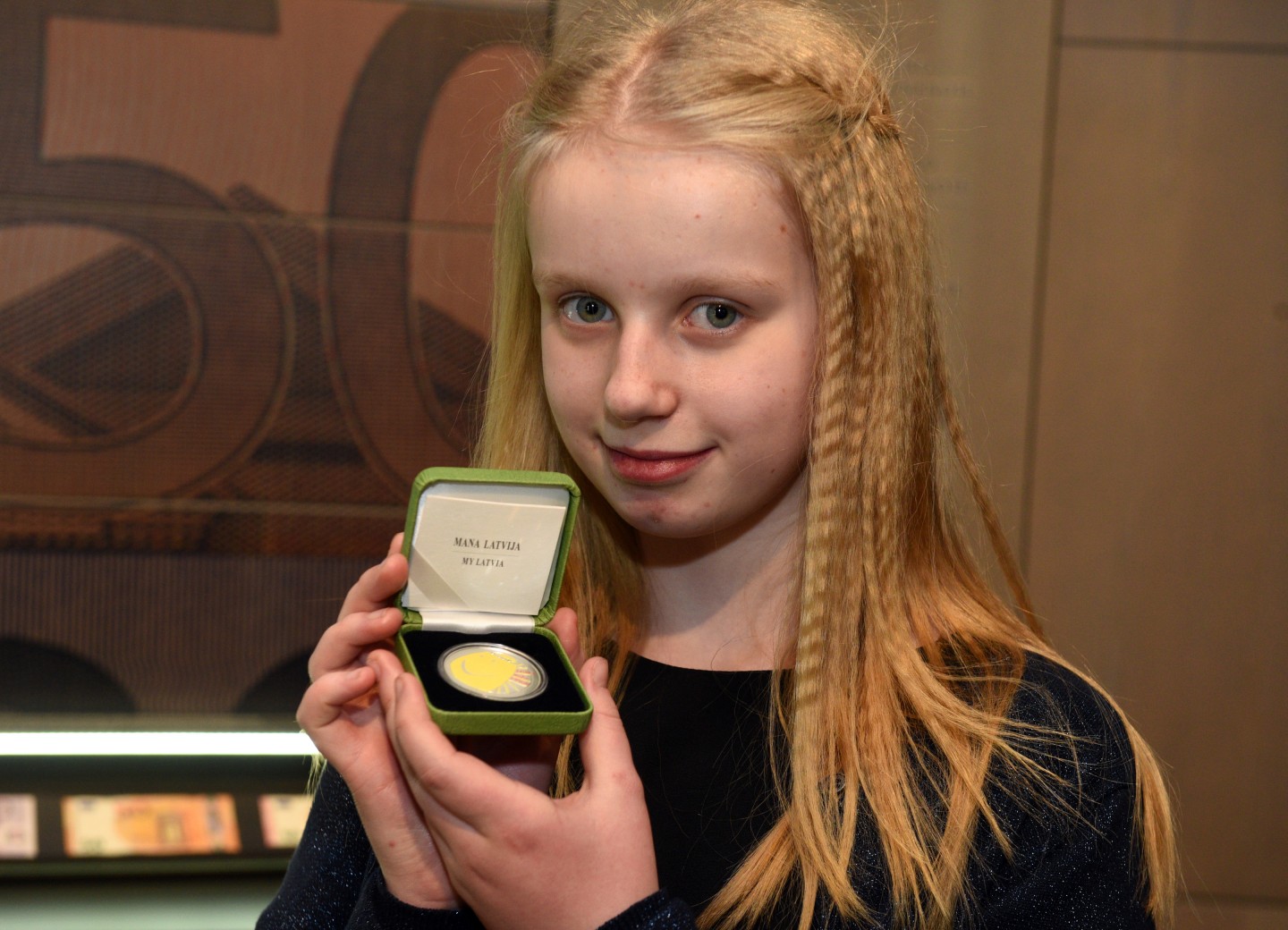 Latvijas Banka šodien izlaidusi sudraba kolekcijas monētu "Mana Latvija", kura tapusi pēc Grobiņas novadā dzīvojošās 11 gadus vecās Elizabetes Kanderes zīmējuma.