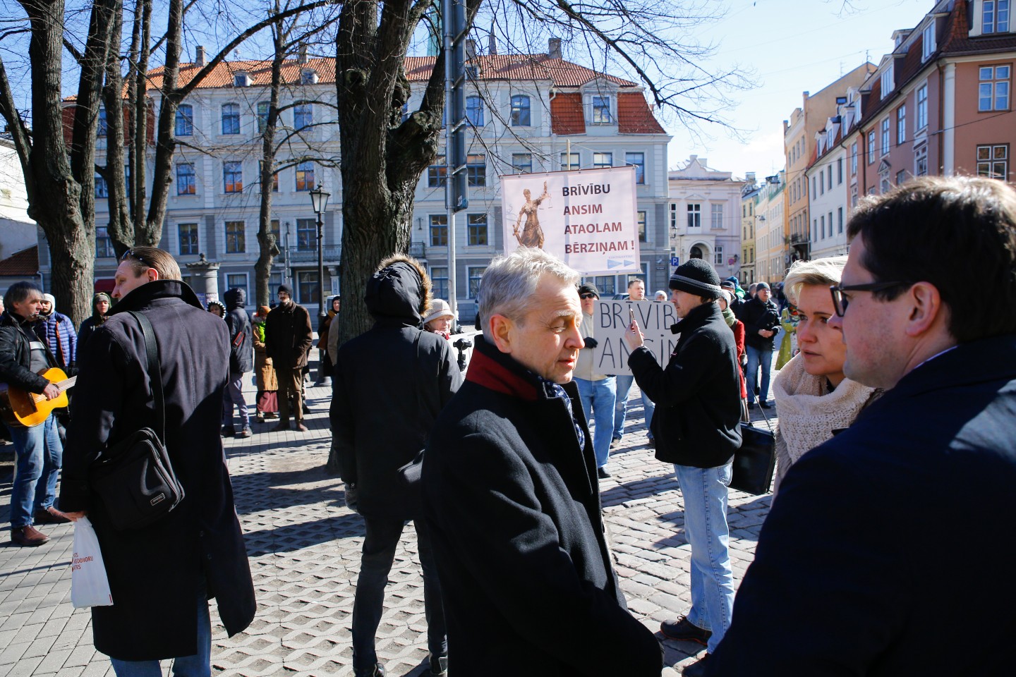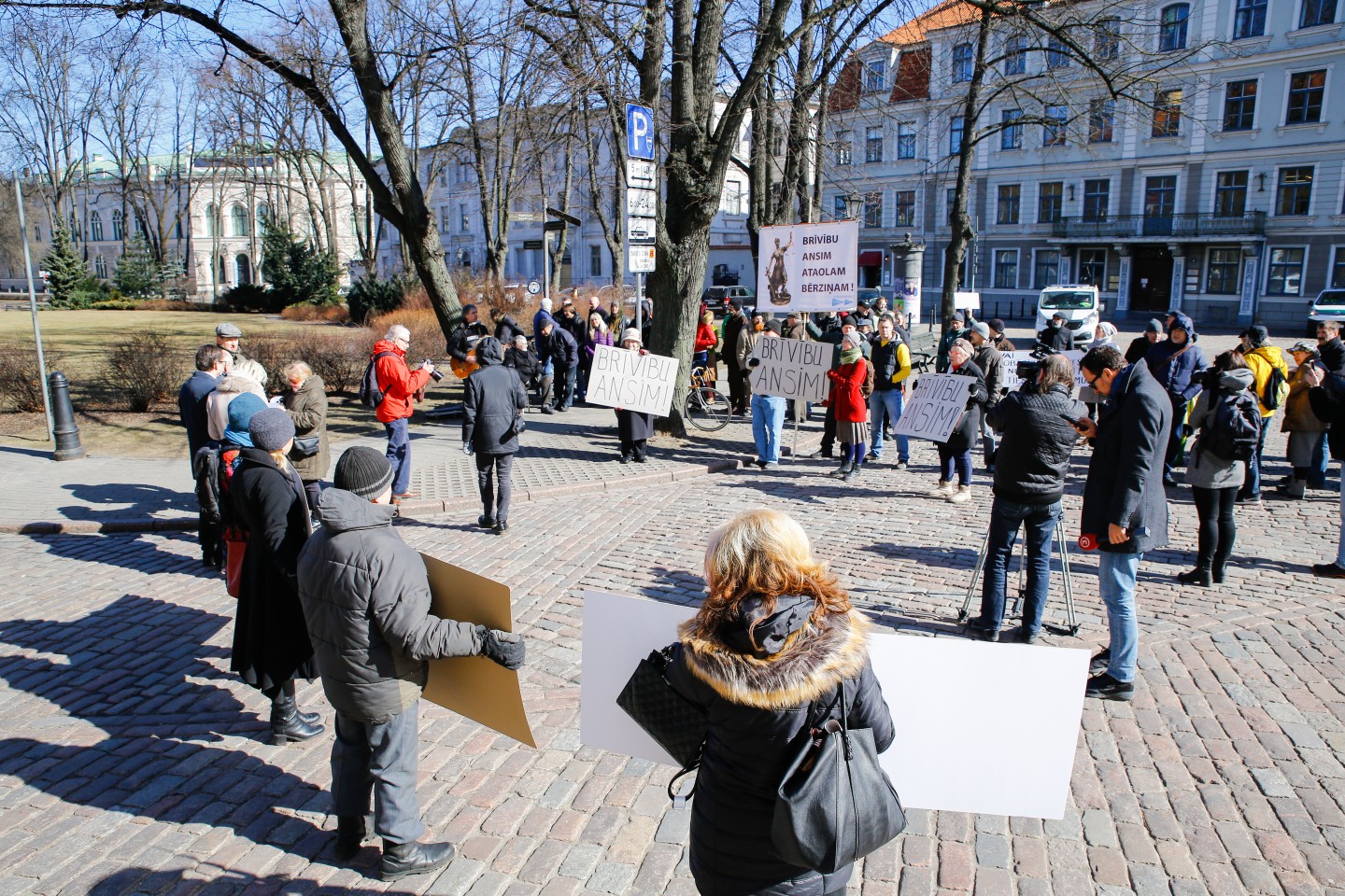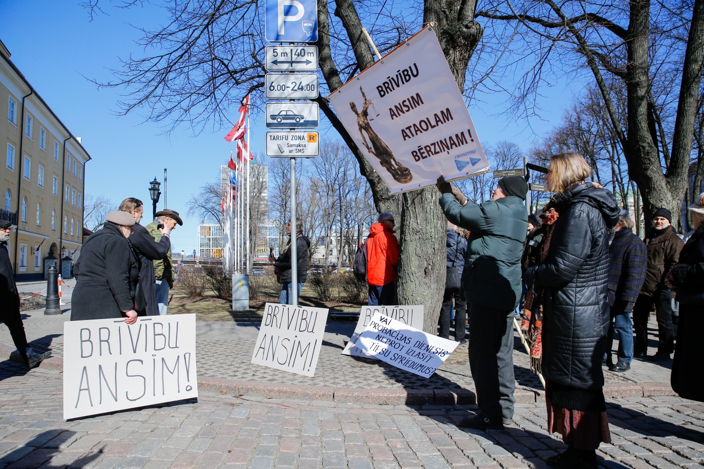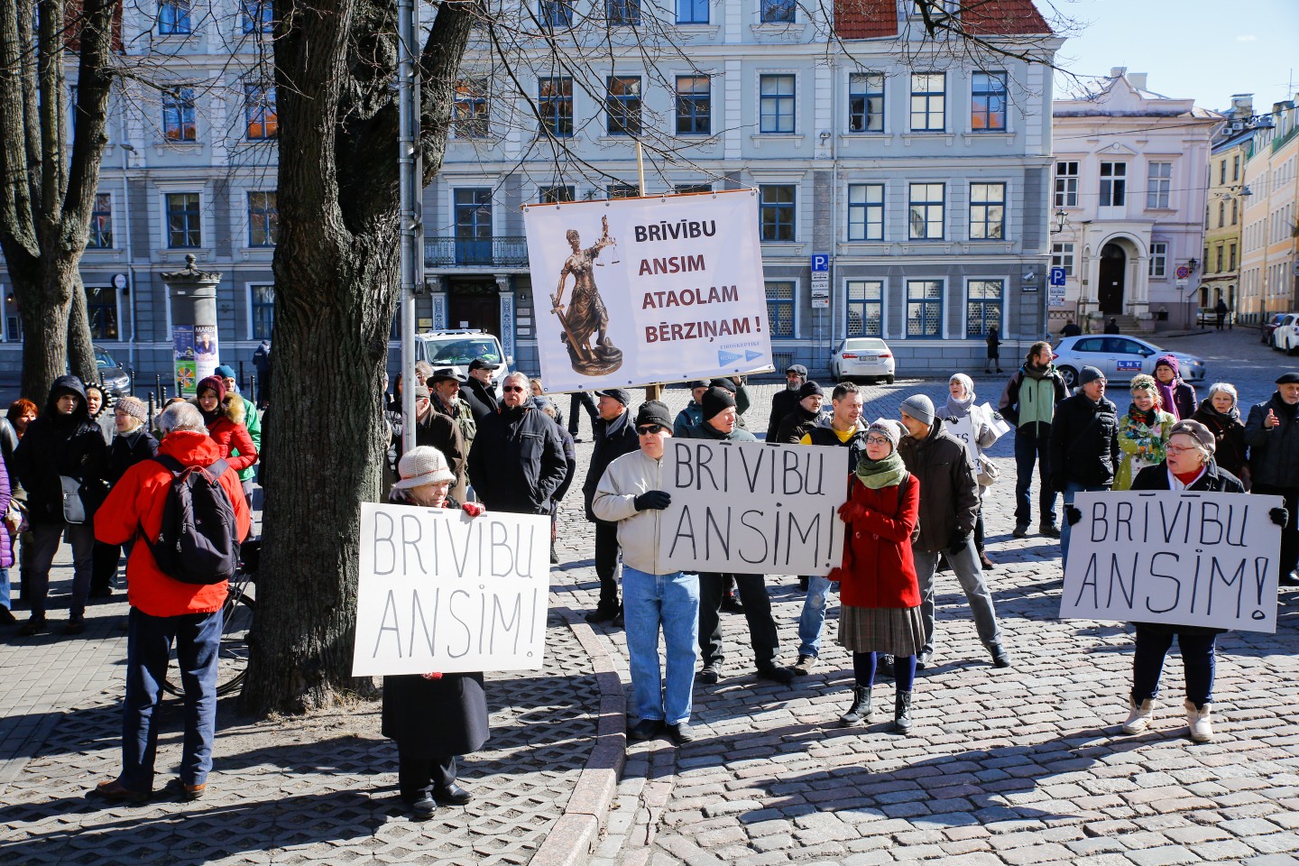 Pie Rīgas pils pasākumā par 13.janvāra Vecrīgas grautiņiem notiesātā Anša Ataola Bērziņa atbrīvošanu piketē 100 cilvēki.