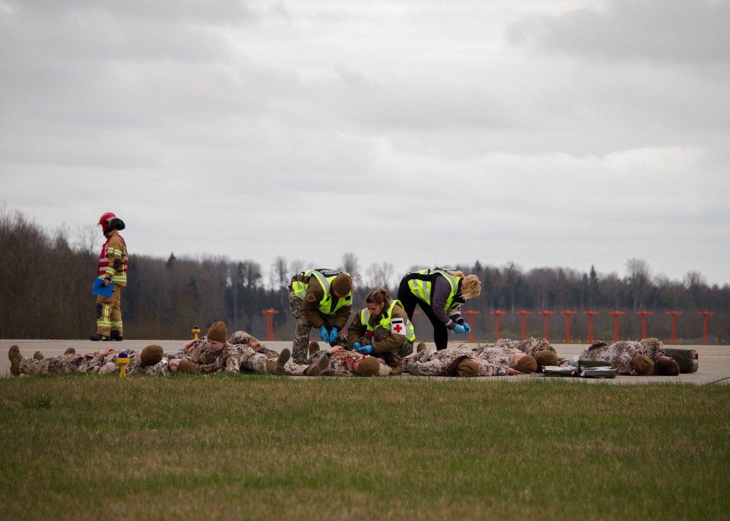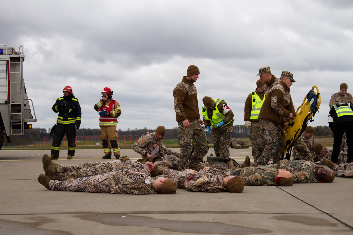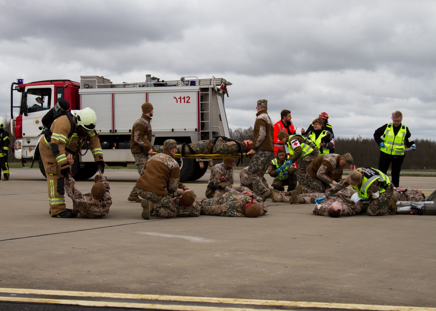 Gaisa spēki trešdien organizēja ārkārtas situāciju mācības Lielvārdes lidlauka teritorijā, kuras notika sadarbībā ar Valsts operatīvajiem dienestiem.