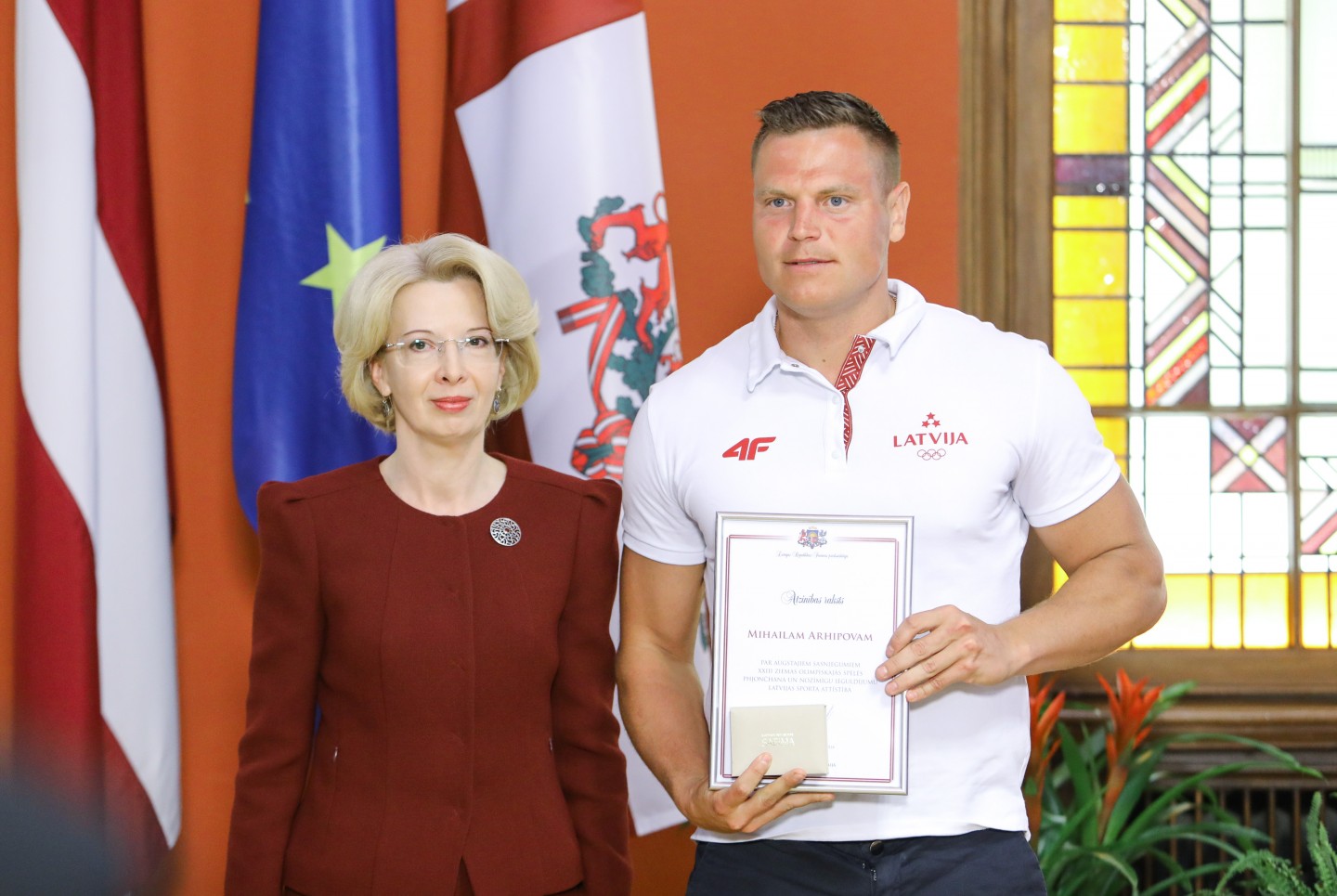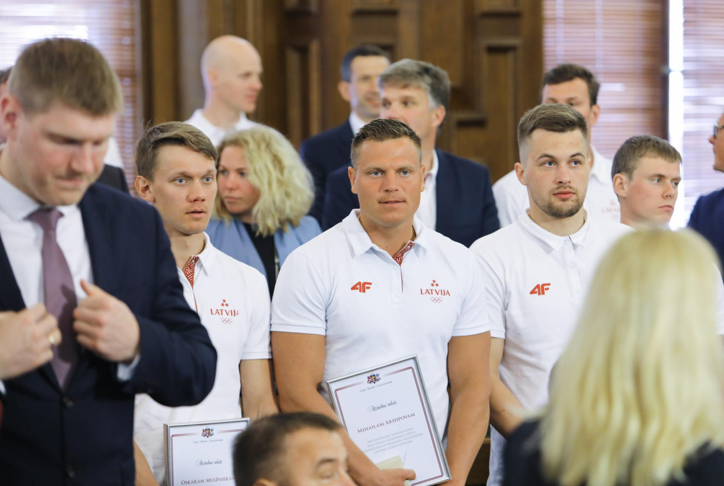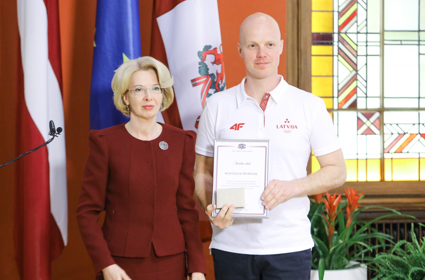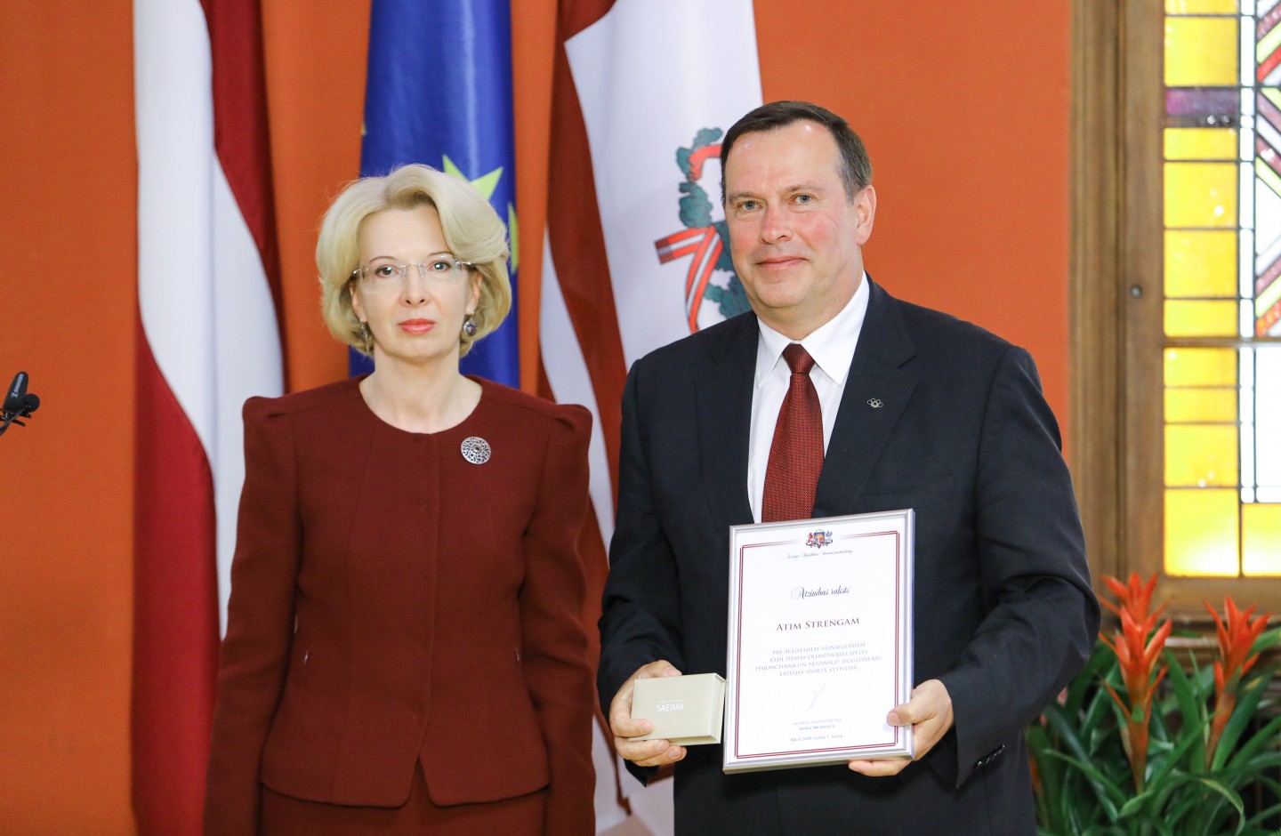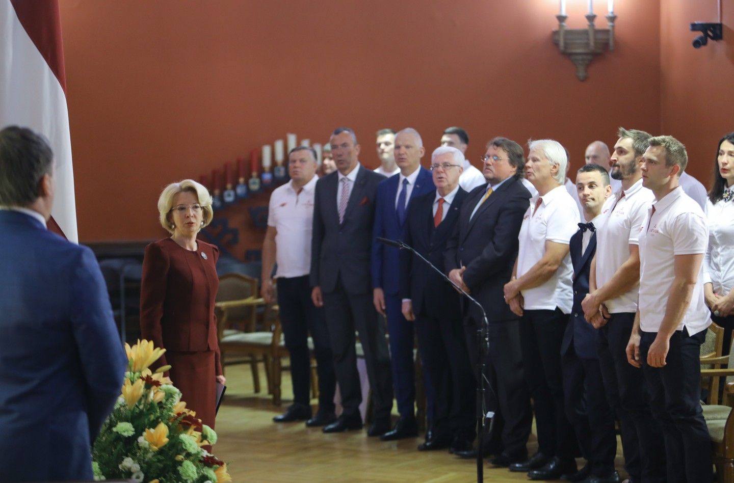 Saeimas nama Sarkanajā zālē Latvijas olimpiešiem un paralimpiešiem, kā arī viņu treneriem un ārstiem tika pasniegti Saeimas priekšsēdētājas atzinības raksti.