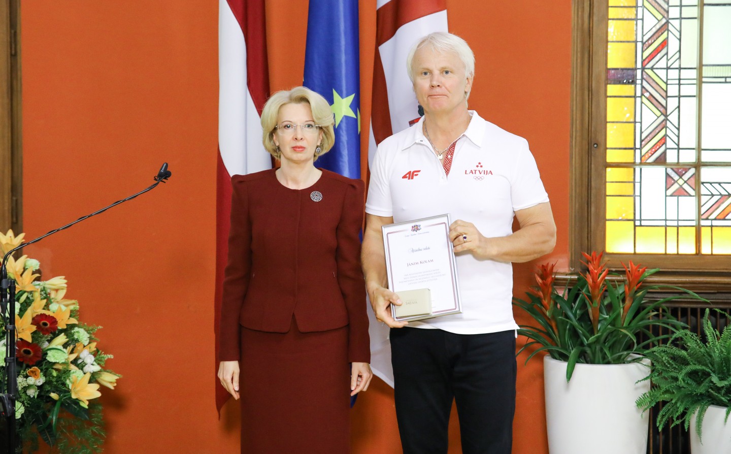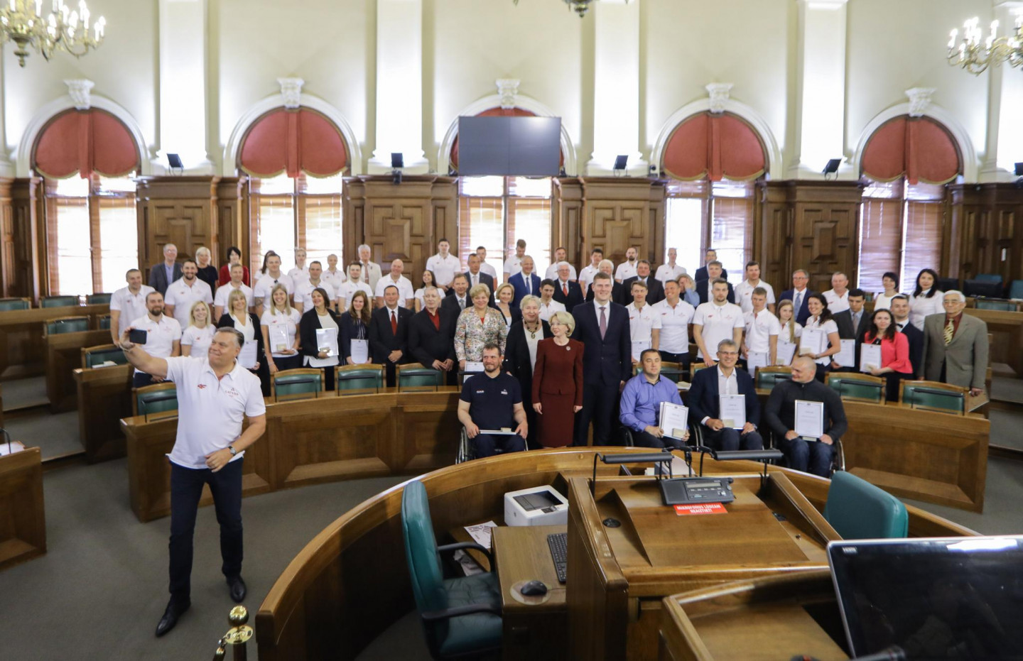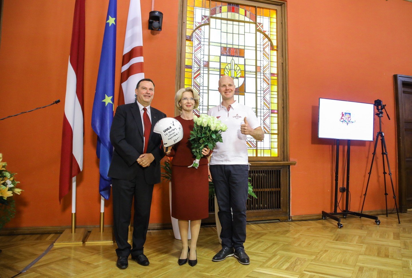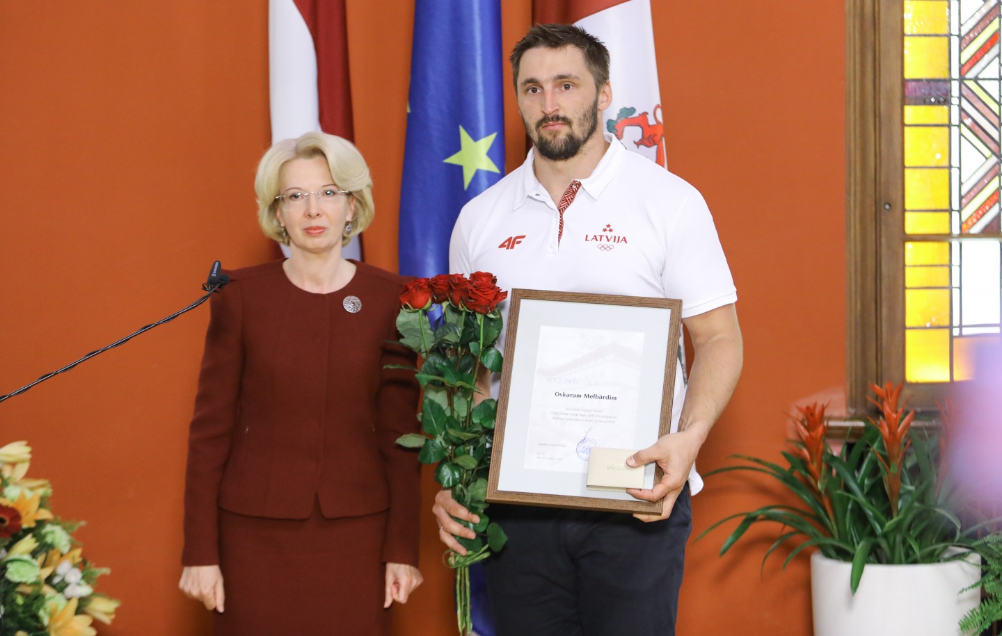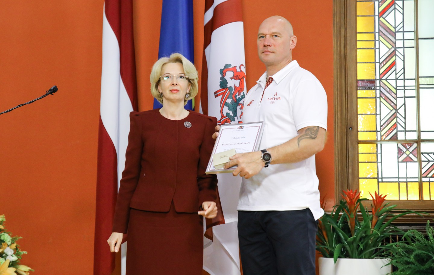 Saeimas nama Sarkanajā zālē Latvijas olimpiešiem un paralimpiešiem, kā arī viņu treneriem un ārstiem tika pasniegti Saeimas priekšsēdētājas atzinības raksti.
