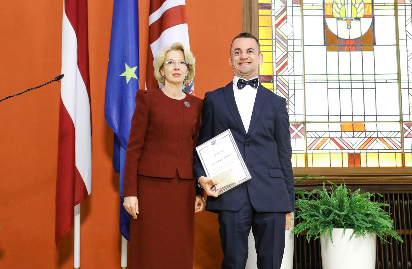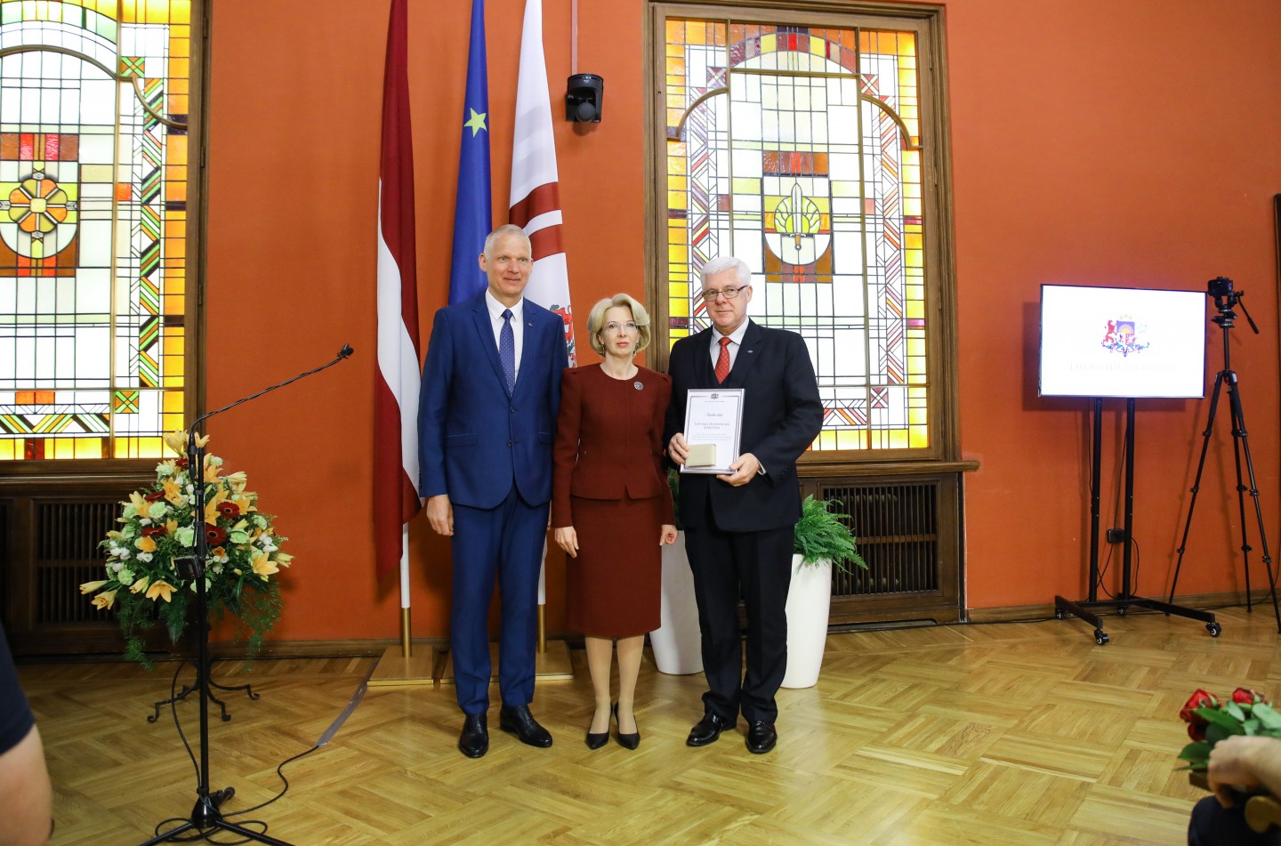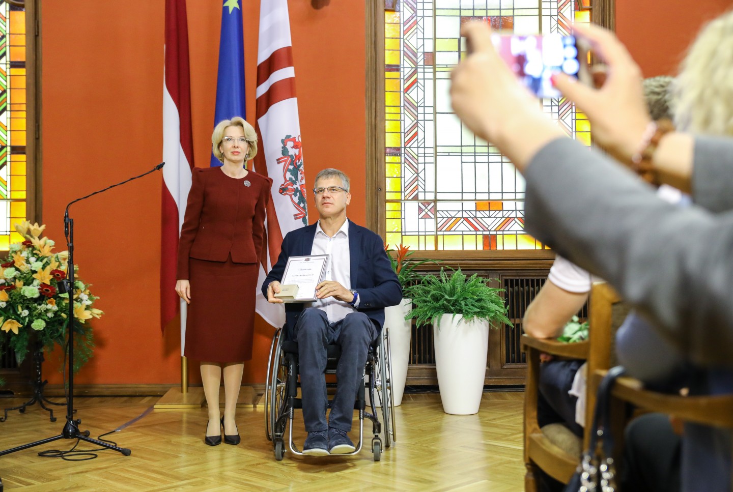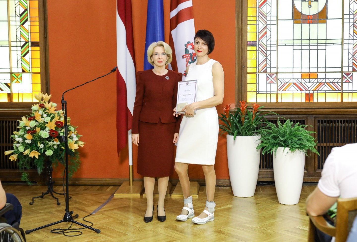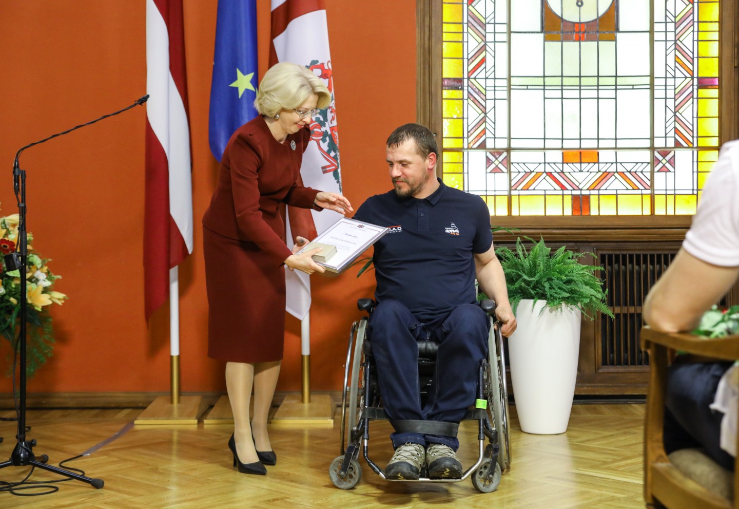 Saeimas nama Sarkanajā zālē Latvijas olimpiešiem un paralimpiešiem, kā arī viņu treneriem un ārstiem tika pasniegti Saeimas priekšsēdētājas atzinības raksti.