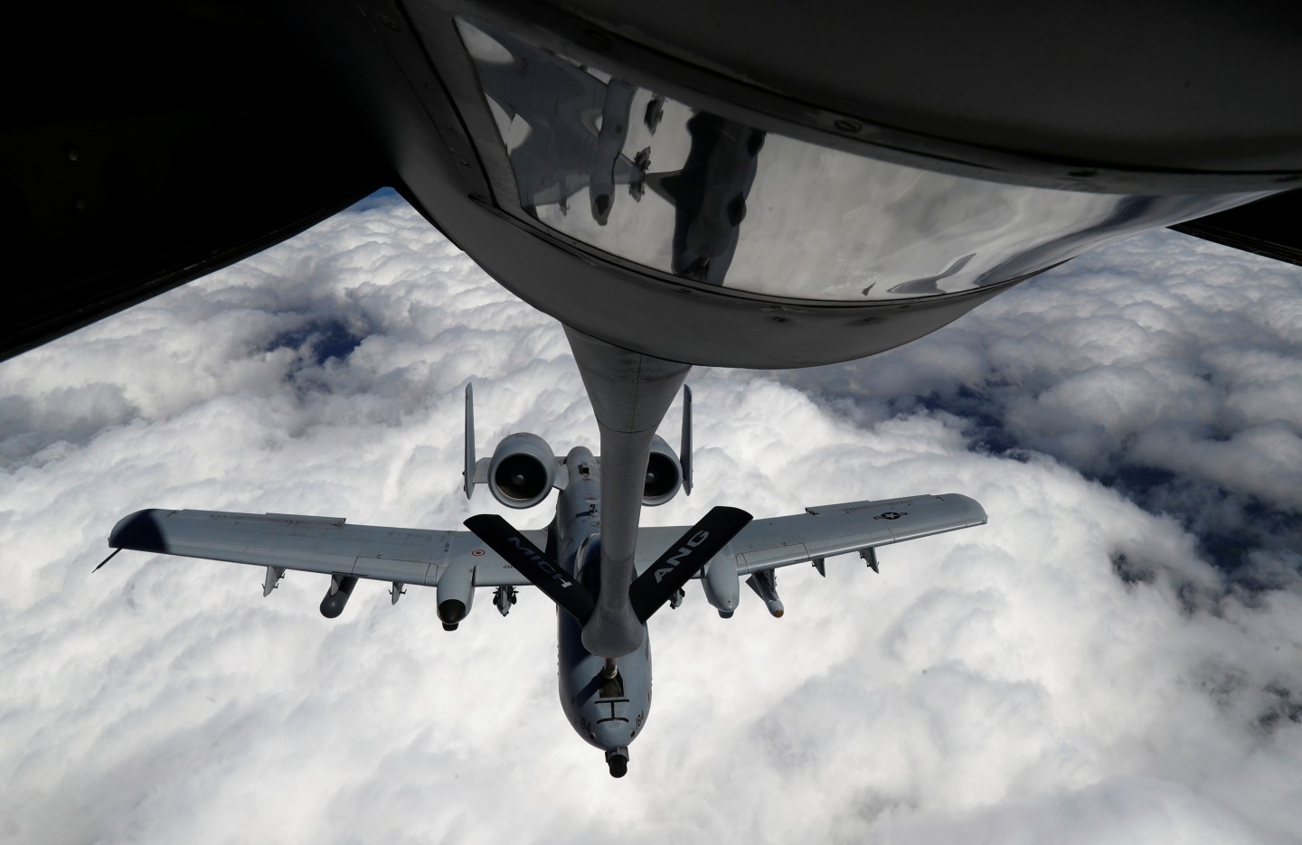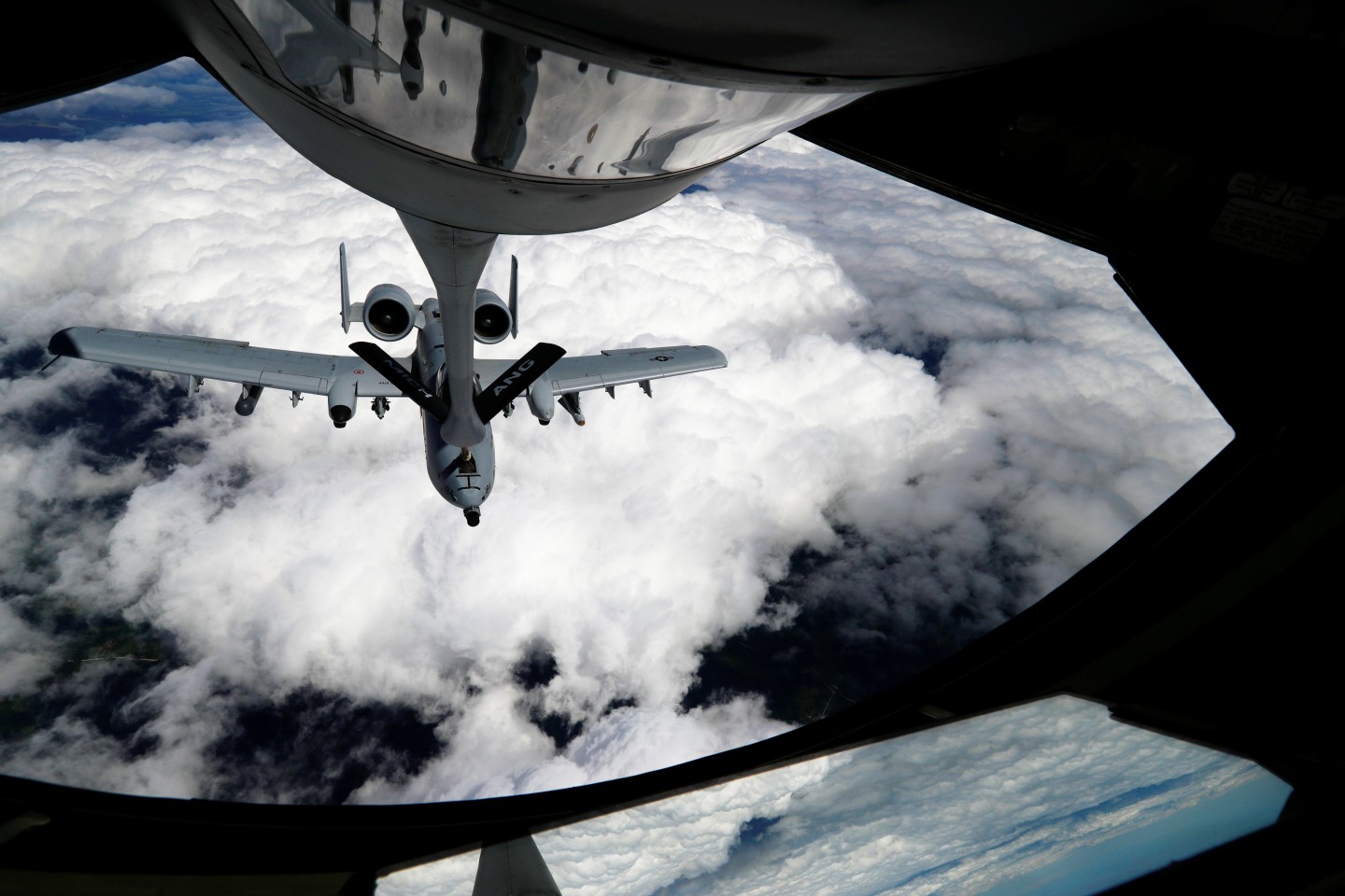 Tapuši interesanti kadri ar to, kā tepat debesīs virs Latvijas, ar ASV Gaisa spēku KC-135 palīdzību tiek uzpildīta degviela A-10 Thunderbolt lidmašīnai.