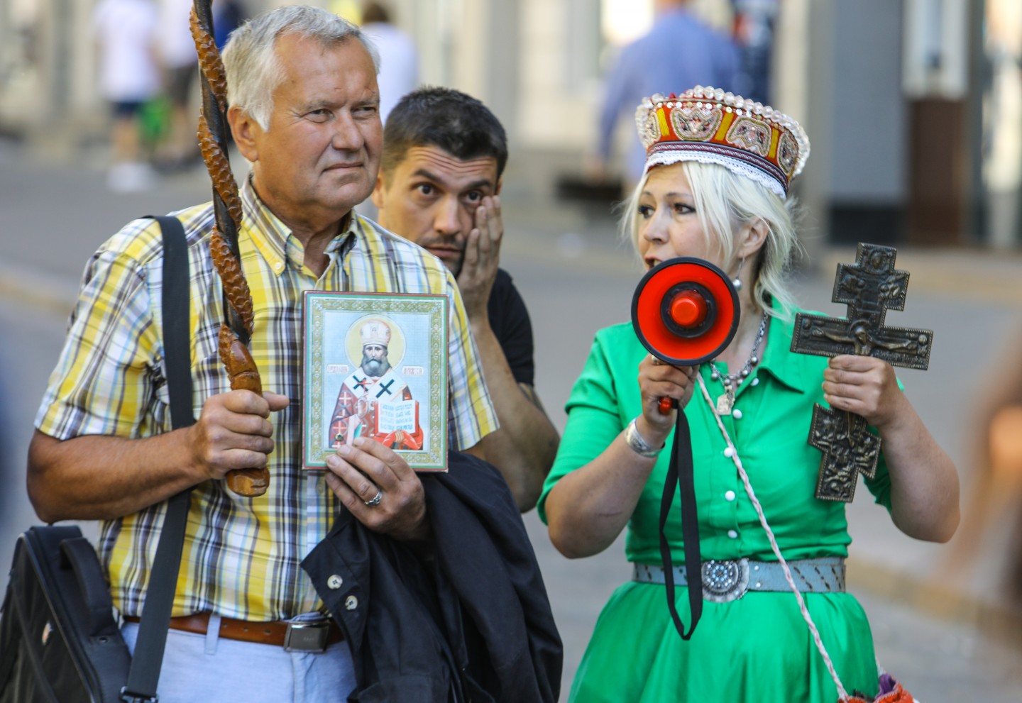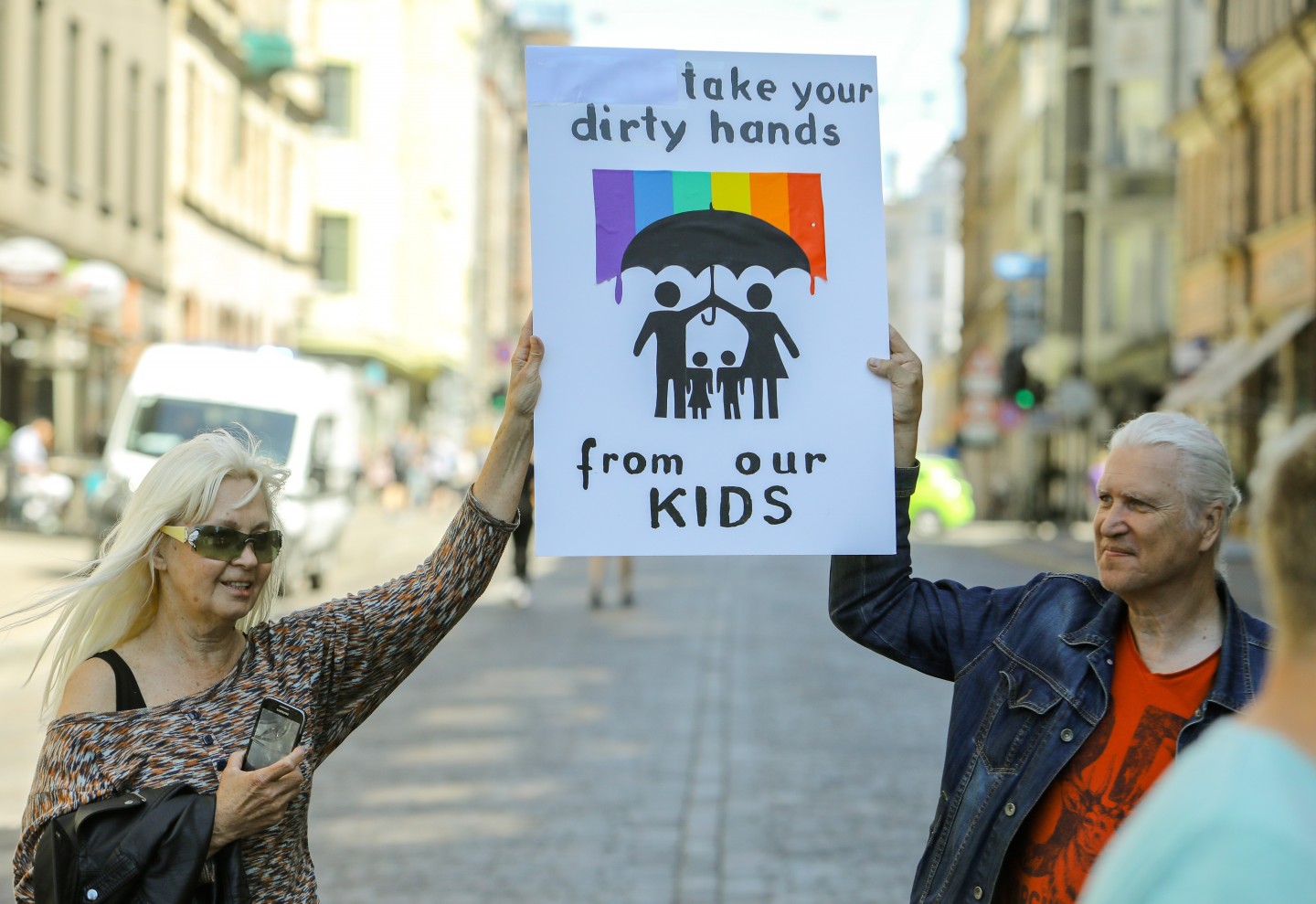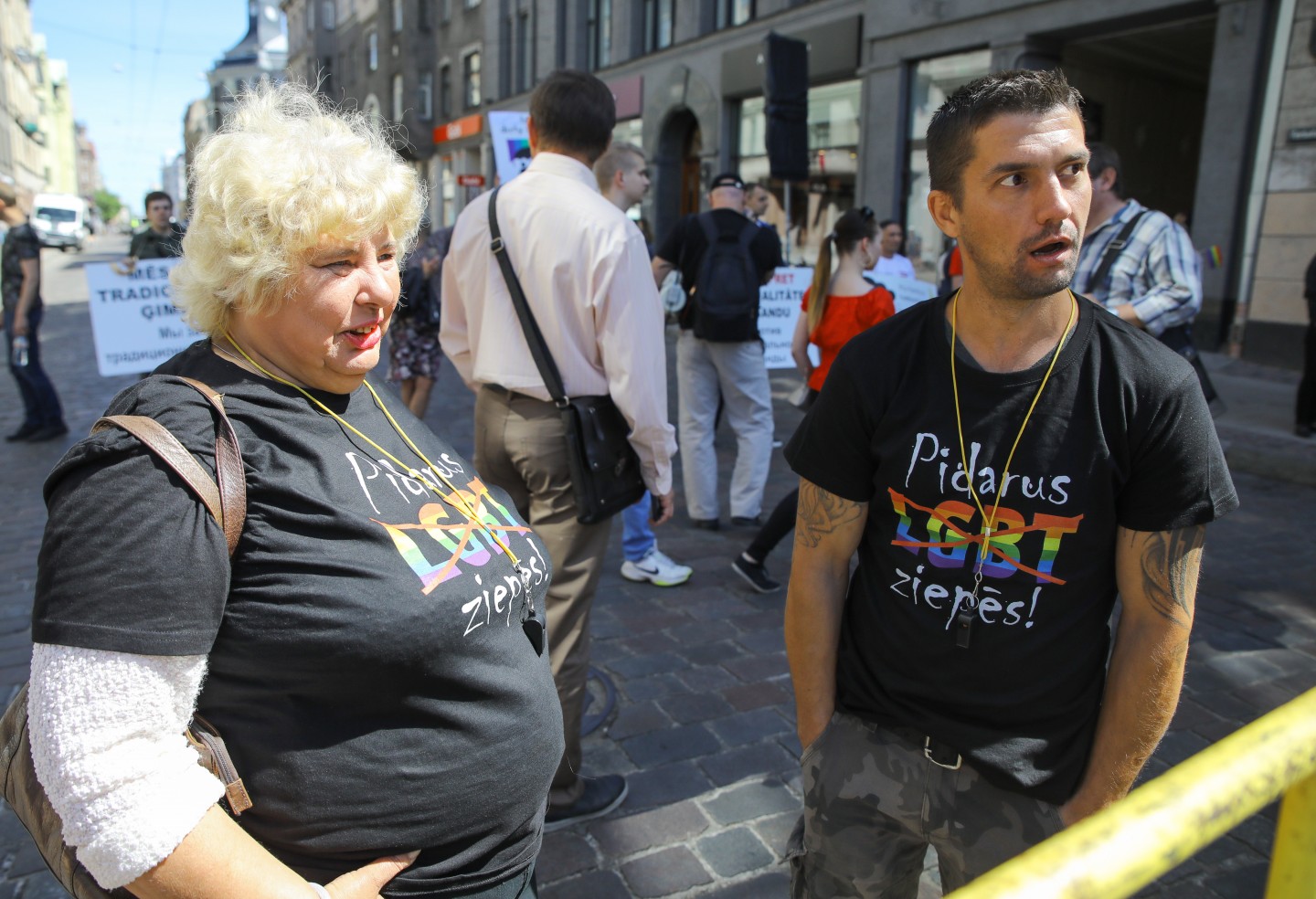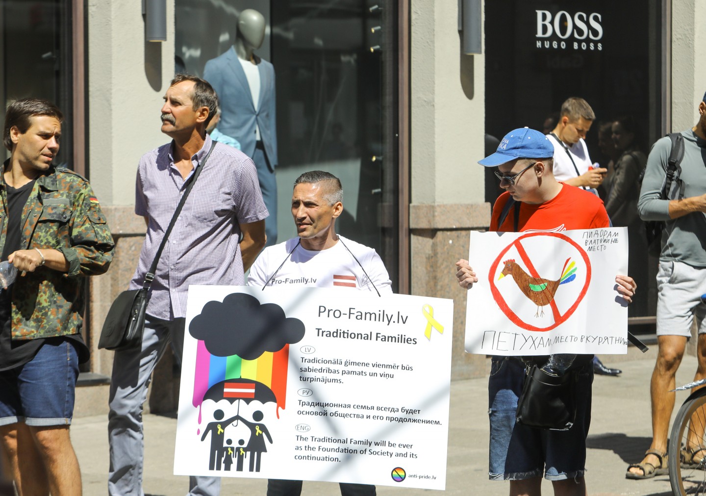 Apmēram 13 līdz 30 cilvēkiem sestdien, 9.jūnijā, protestēja pret notiekošo seksuālo minoritāšu gājienu.