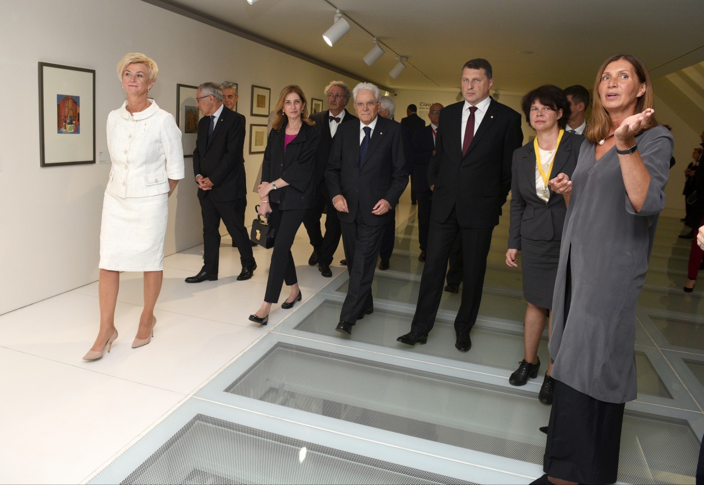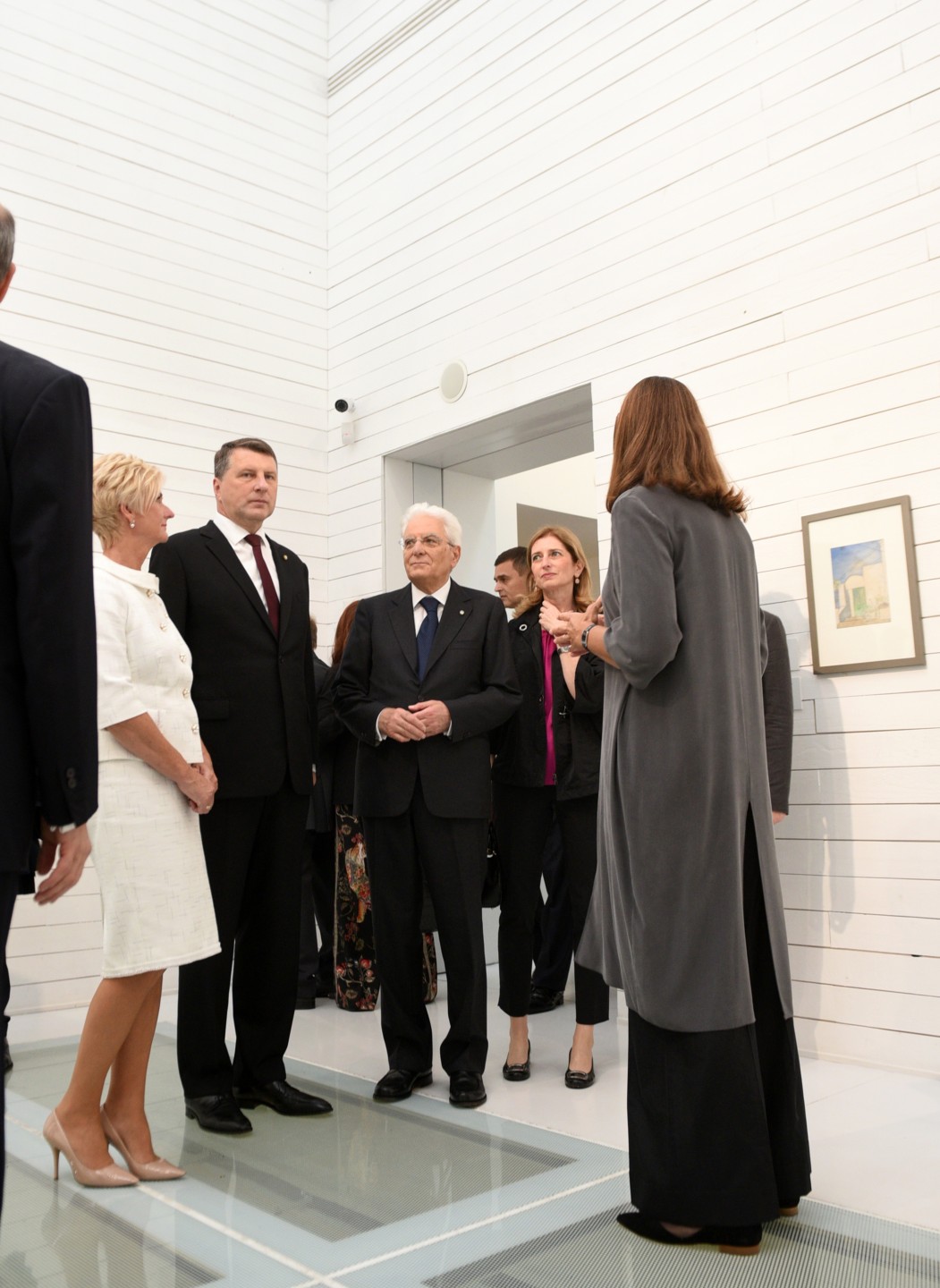 Valsts prezidents Raimonds Vējonis, Iveta Vējones kundze un V.E. Itālijas Republikas prezidents Serdžo Matarella un Laura Matarella apmeklē izstādi "Ciao! Niklāvs Strunke Itālijā. 20. gadsimta 20. gadi" Latvijas Nacionālajā mākslas muzejā.