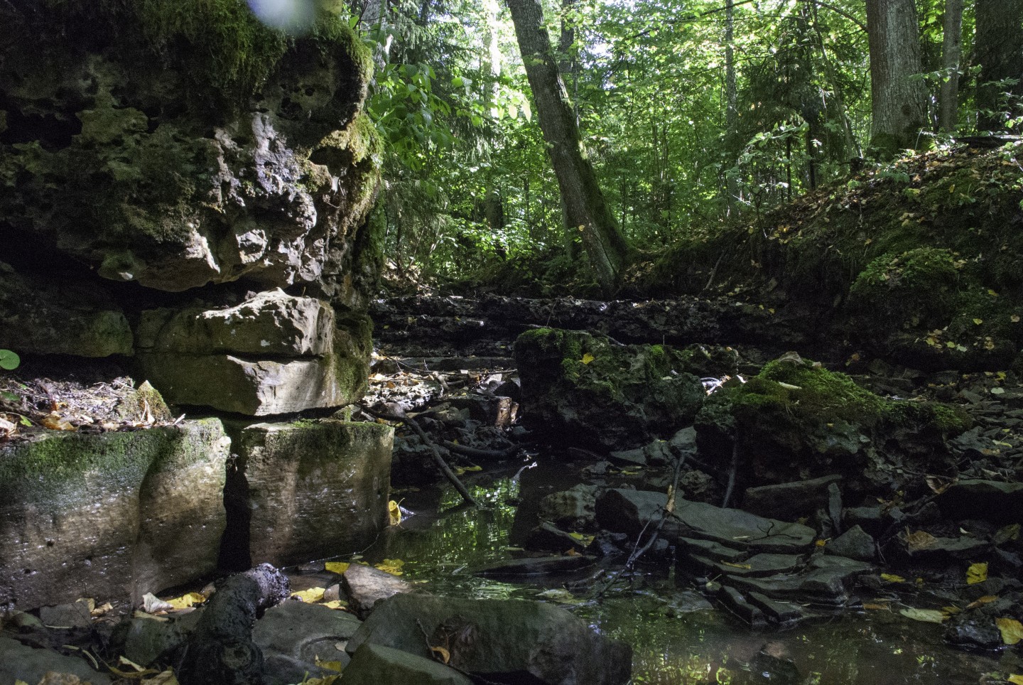 Valsts nozīmes ģeoloģiskie aizsargājamie objekti - gravas - atrodas pagasta ziemeļaustrumos, 5 kilometrus uz ziemeļiem no Gaujienas, Mežciemā. Krāšņas gravas ar ūdenskritumiem, alām, Pļaviņu svītas Sēlijas un Atzeles slāņu atsegumiem, slāņu griezums ar kopējo biezumu 8 metri, kopējā platība 28,784 hektāri.Kalamecu gravas garums ir 240 metri, platums apakšējā daļā 10 metri, augšējā no 20 līdz 22 metri, dziļums 12 m. Gravā tek Kalamecu upe, tās gultnē izveidojušies 7 ūdenskritumi (augstums 0,3 – 0,6 metri un platums 2 - 2,5 metri). Markūzu gravas garums ir 250 metri, dziļums 13 metri, platums 14 - 25 metri. Ir atsegtas klinšu sienas un atrasti seno jūras bentosa (gliemežu) nospiedumi. Kanjonveida grava ar ūdenskritumiem, alām un dolomīta atsegumiem, gravā atsedzas Pļaviņu svītas Sēlijas un Atzeles slāņi. Gravas labajā nogāzē mākslīga ala, kas izlauzta, iegūstot Pļaviņu svītas dolomītus, alas augstums 1,2 metri, dziļums 8 metri. Gravu nogāzēs vietām izveidojušās negatīvas dolomīta pārkares no viegli grūstošiem bluķiem, tāpēc, aplūkojot objektus, jāievēro piesardzība. Savdabīgās gravas visiespaidīgāk izskatās pavasara palu periodā vai pēc lielām lietavām, kad pa gravām plūstošās upes pildās ar ūdeni, veidojot krāces un ūdenskritumus.