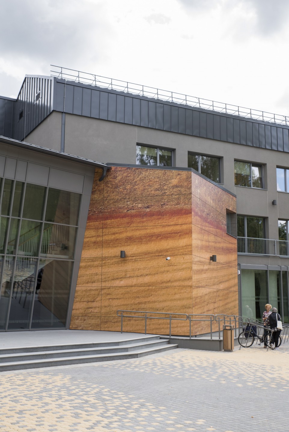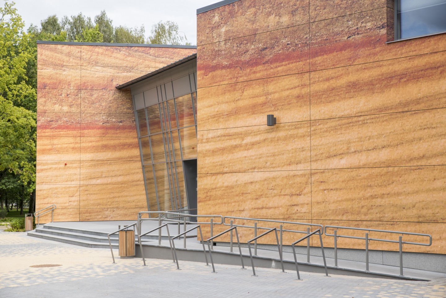 Siguldas novada Kultūras centra ēka, kura būvēta 1962. gadā un līdz pārbūvei kalpojusi bez būtisku remontdarbu veikšanas. Taču pēc vērienīgās pārbūves, jaunās telpas kļuvušas plašākas, mūsdienīgākas un daudzfunkcionālas. Lai ēka iekļautos Siguldas pilsētvidē arhitekts Aldis Polis oriģinālajam ēkas dizainam un ēkas fasādes veidošanā izmantojis dekoratīvus fasādes paneļus, kuru apdruka veidota pēc devona perioda smilšakmens atsegumu fotoattēliem no Velnalas klintīm Siguldā.