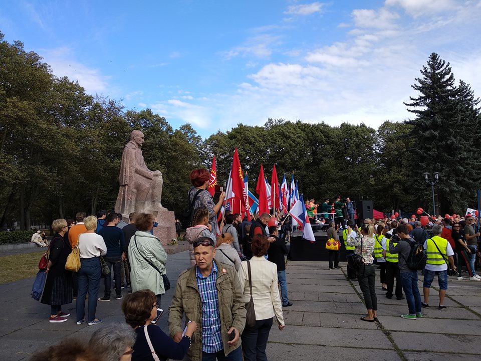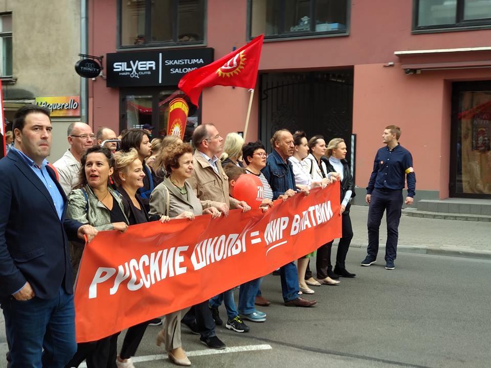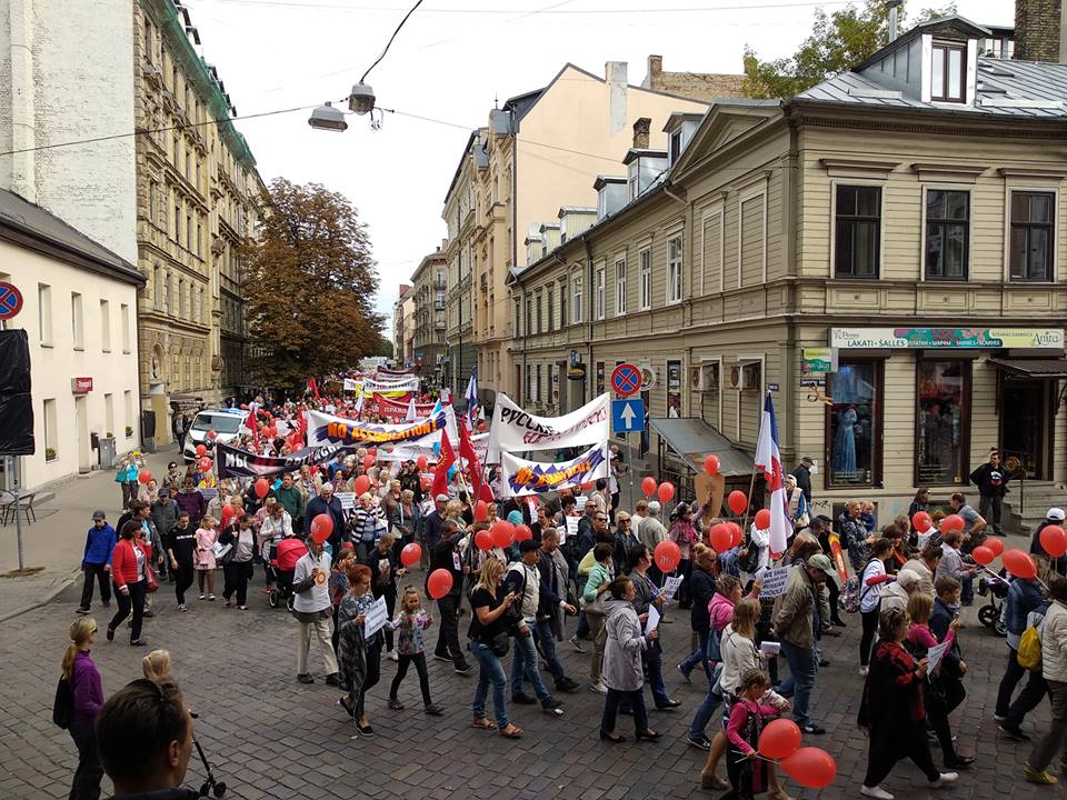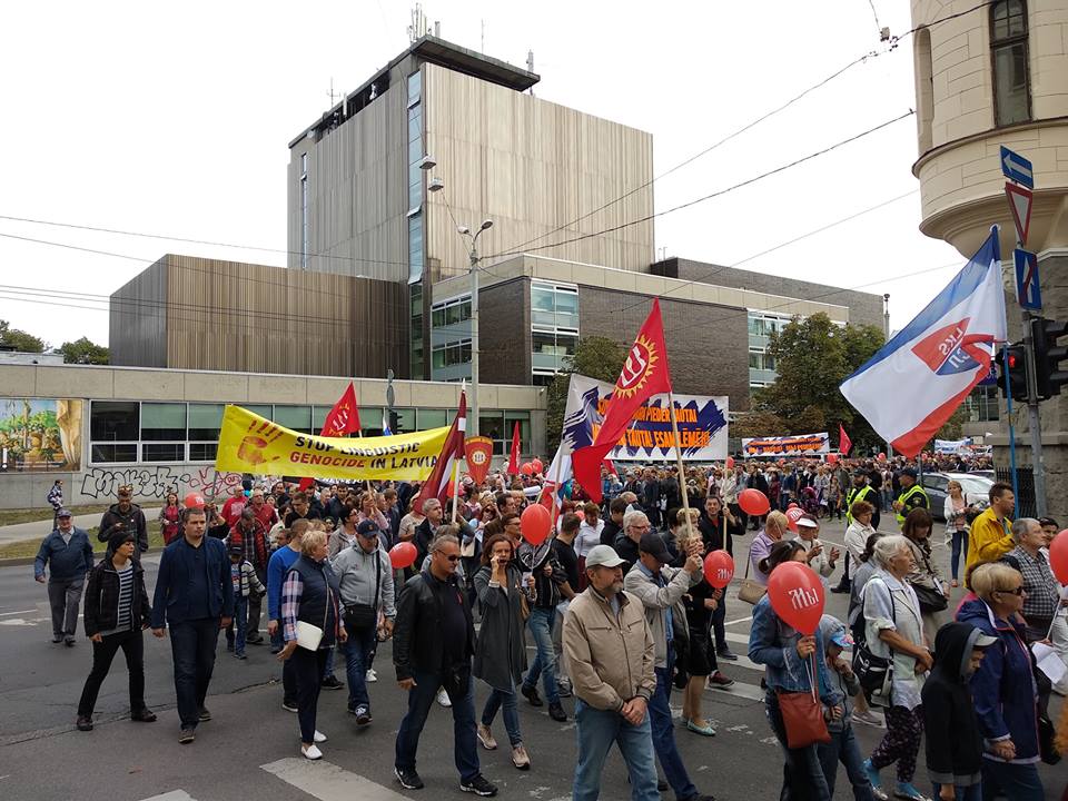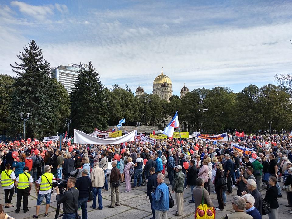 Šodien Rīgā krievu skolu aizstāvju protesta pasākumā bija pulcējušies apmēram 5000 dalībnieku.