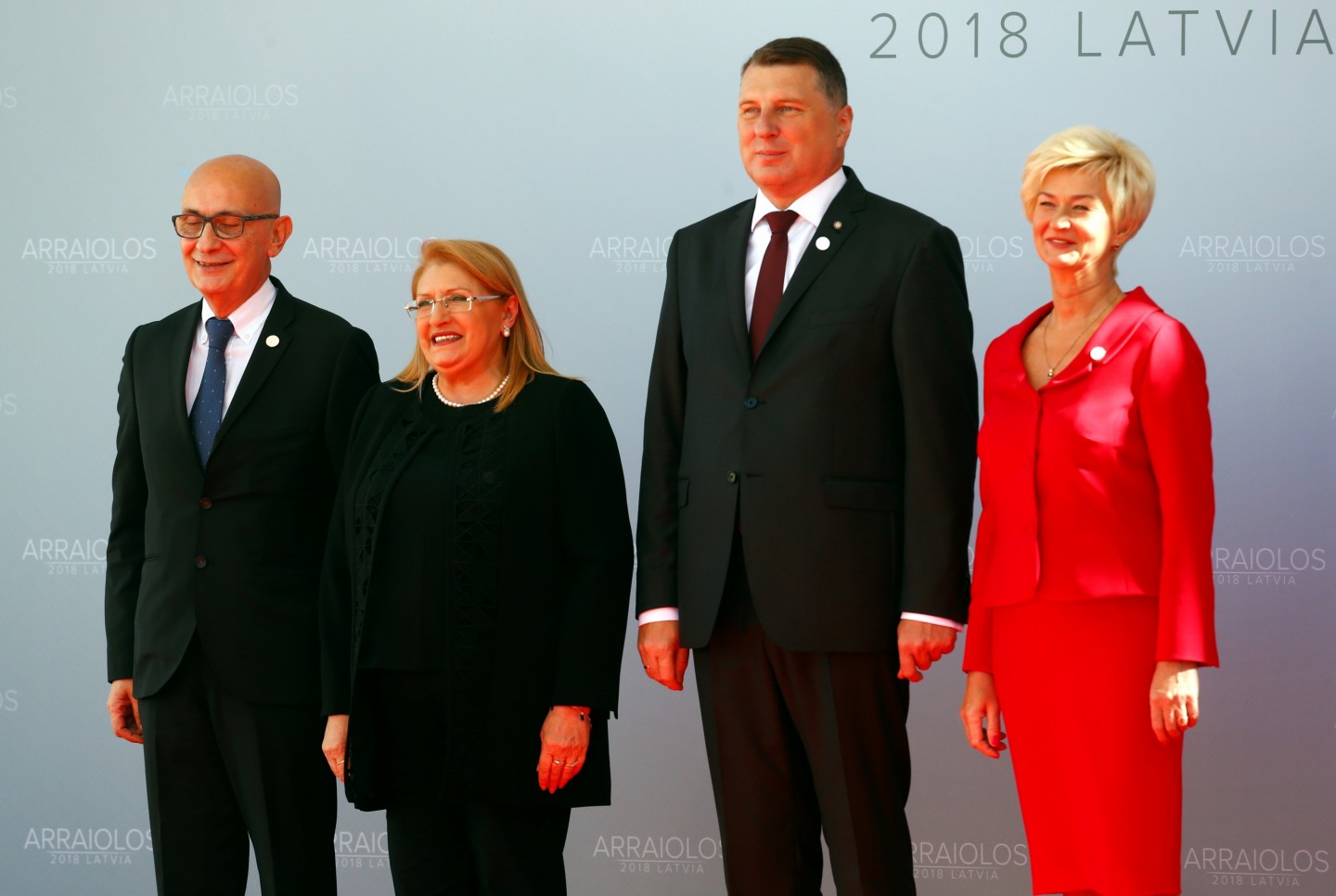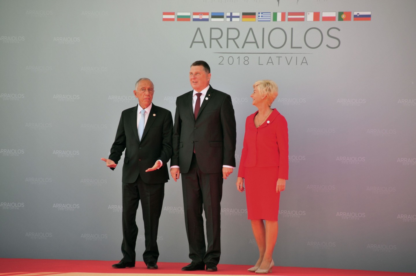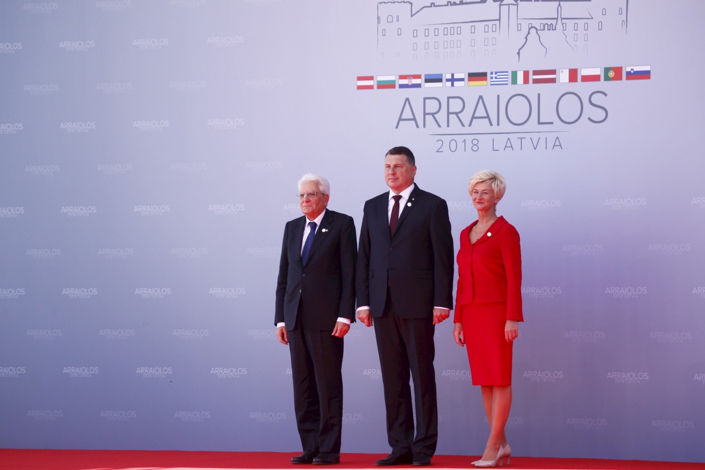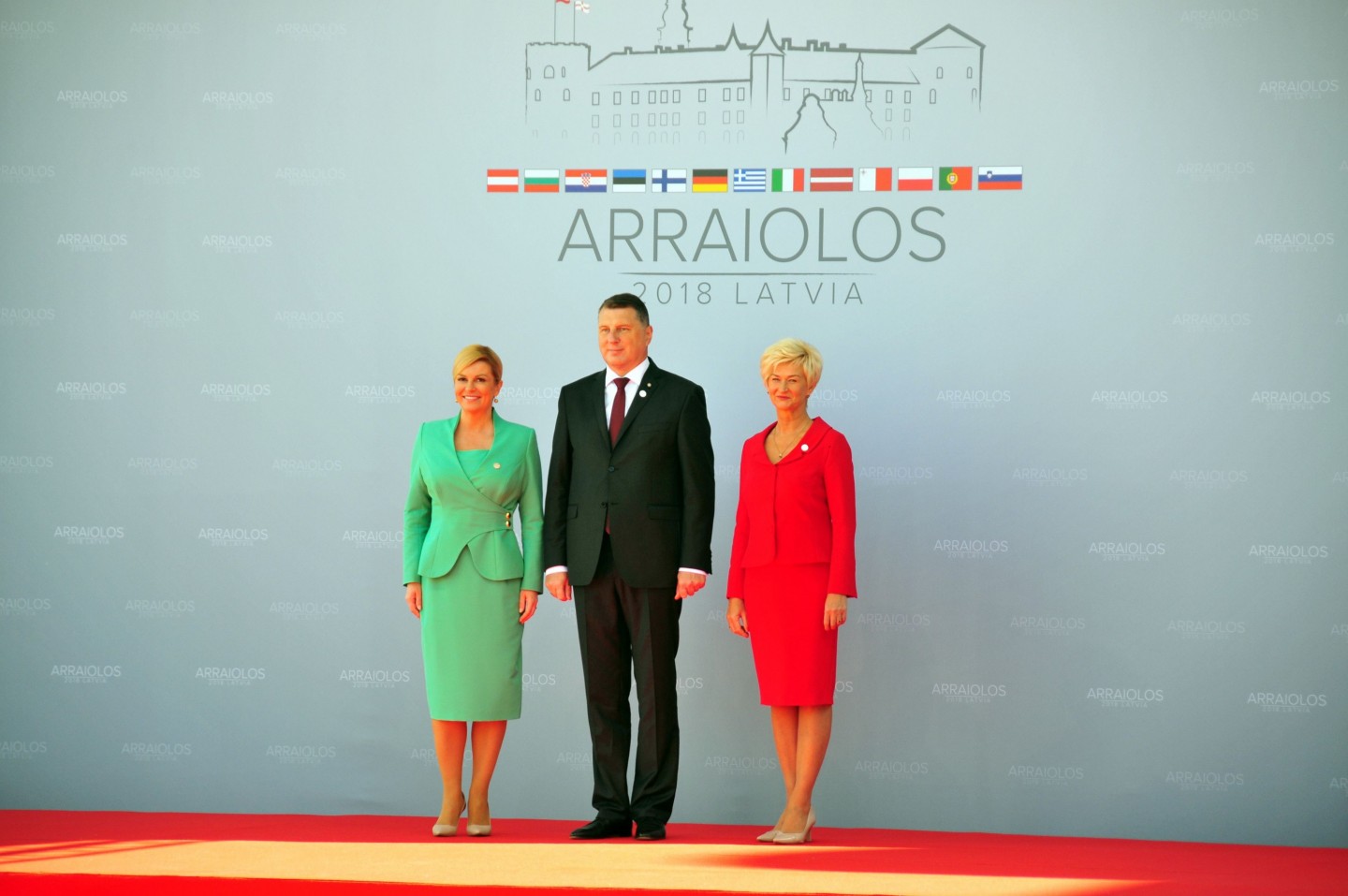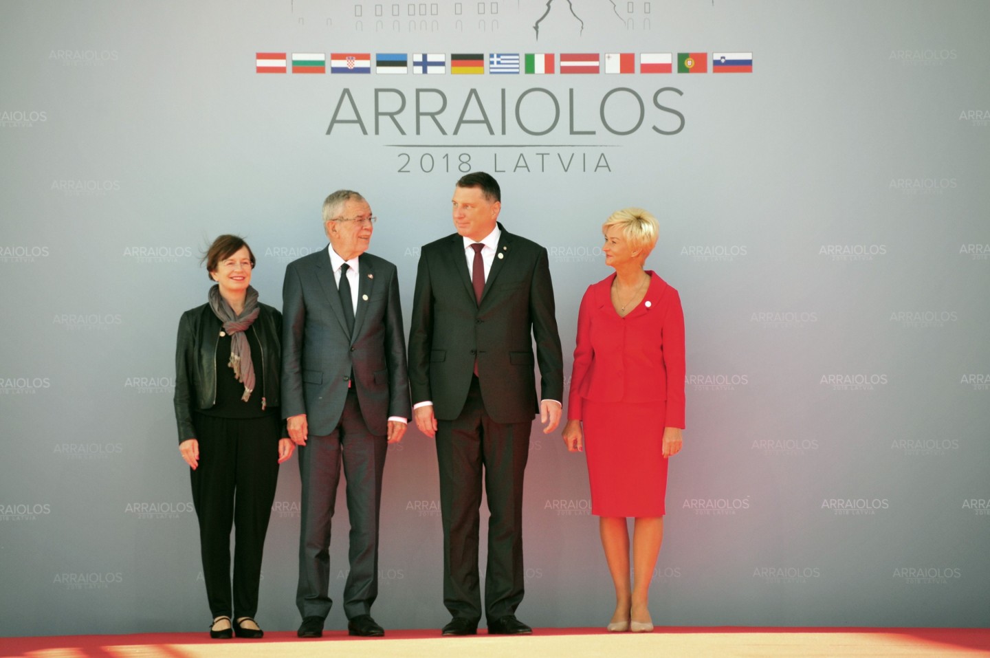 Ceturtdien, 13.septembrī, Rundālē 14.Arajološas grupas neformālās sanāksmes laikā vairāku Eiropas Savienības (ES) valstu prezidenti diskutēja par modernajiem drošības izaicinājumiem un nepieciešamajām valstu atbildēm uz tiem. Kā ierasts, tad šādās vizītēs ārvalstu viesus sagaidīja Valsts prezidents Raimonds Vējonis un viņa kundze Iveta.