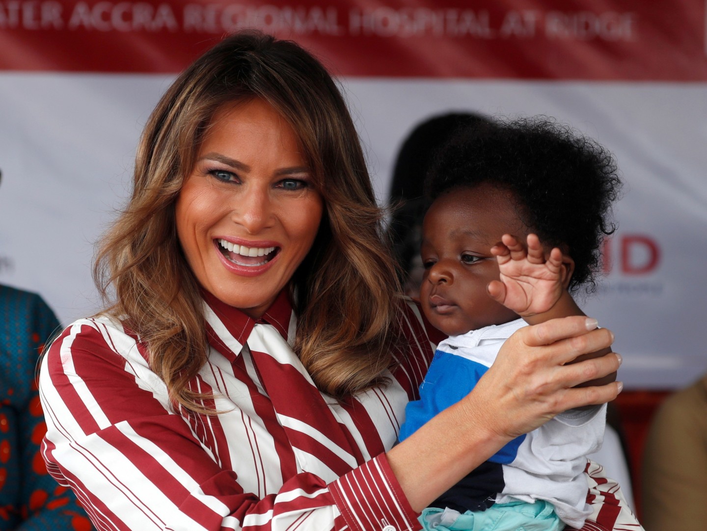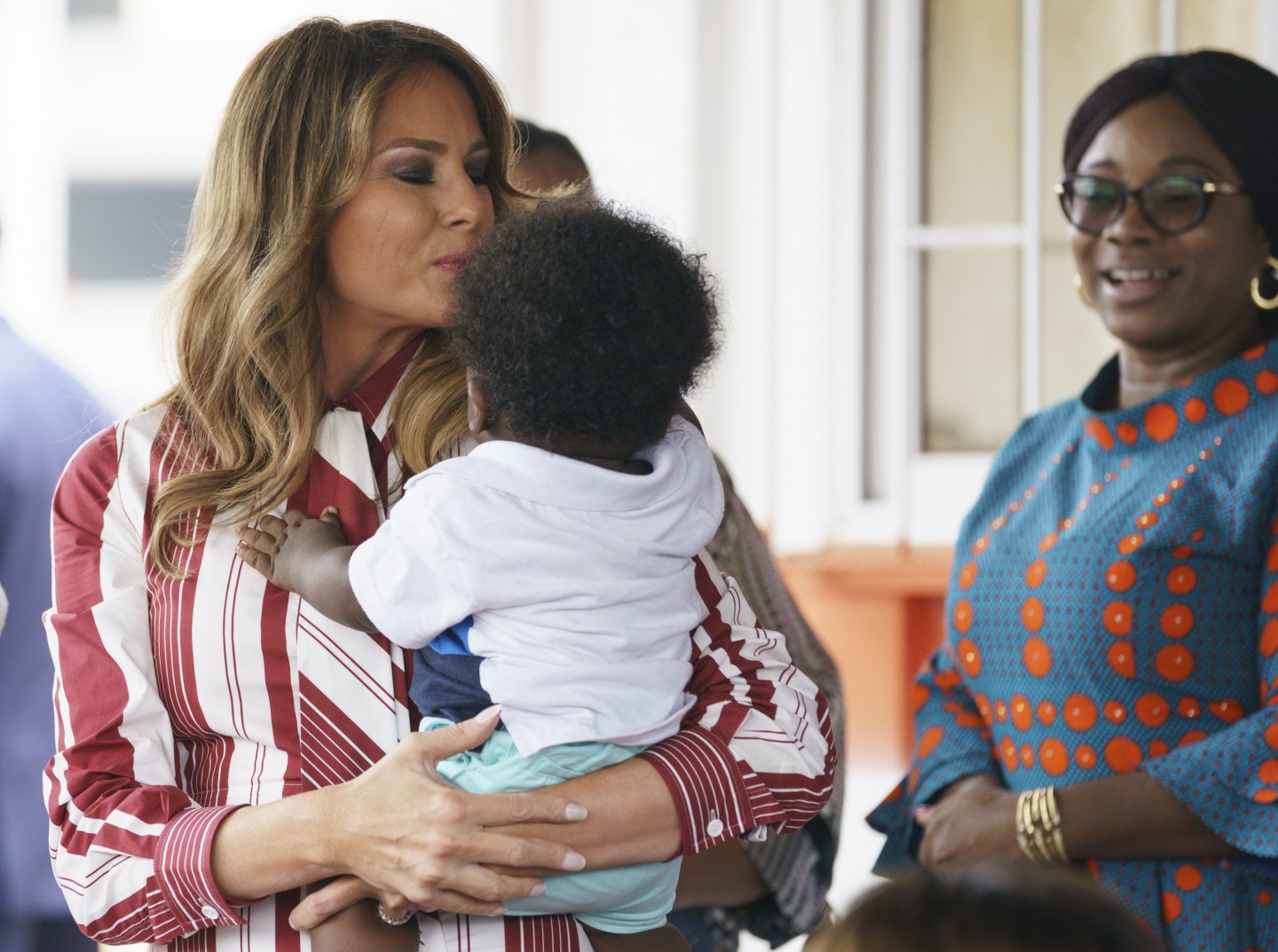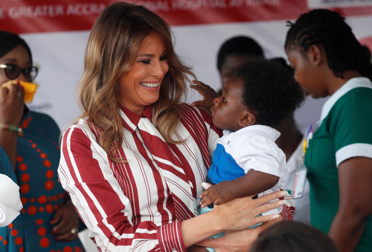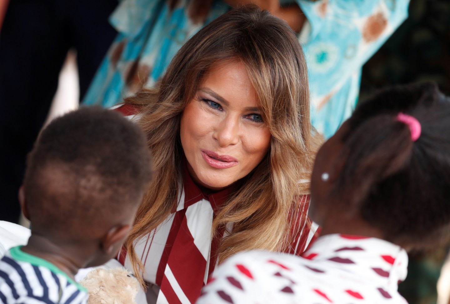 ASV pirmā lēdija Melānija Trampa devusies nedēļu ilgā vizītē uz Āfriku. Vizītes pirmajā dienā uzņemti foto, kuros Donalda Trampa sieva sirsnīgi aprunājas ar bērnu slimnīcas pacientiem.