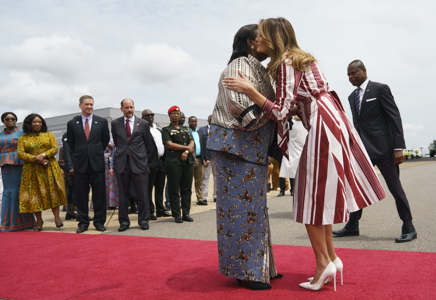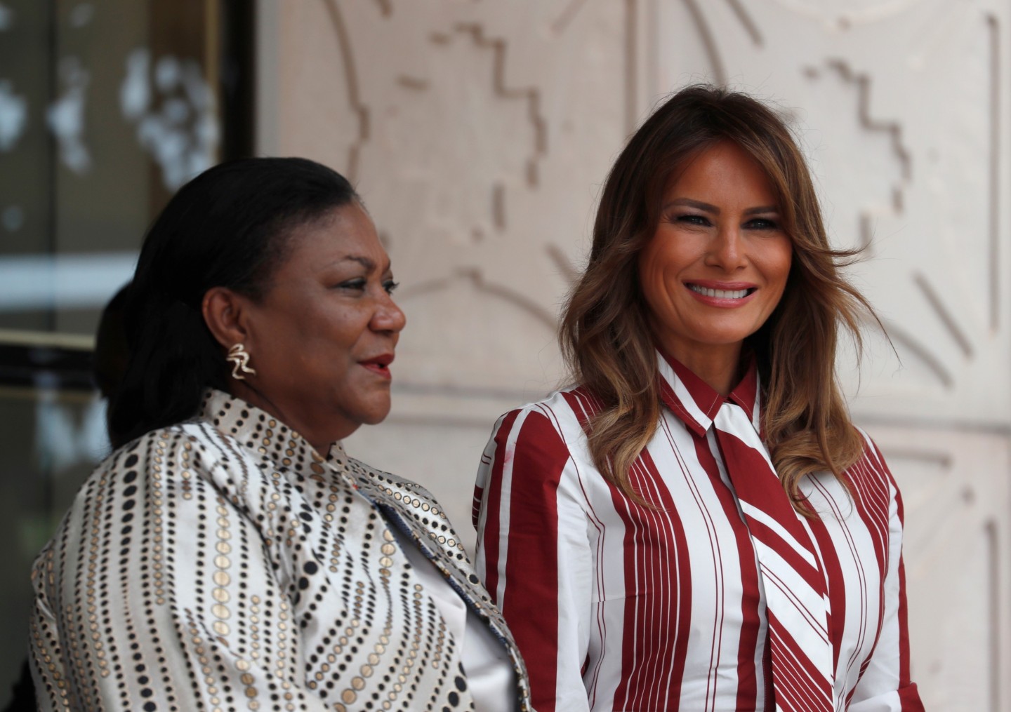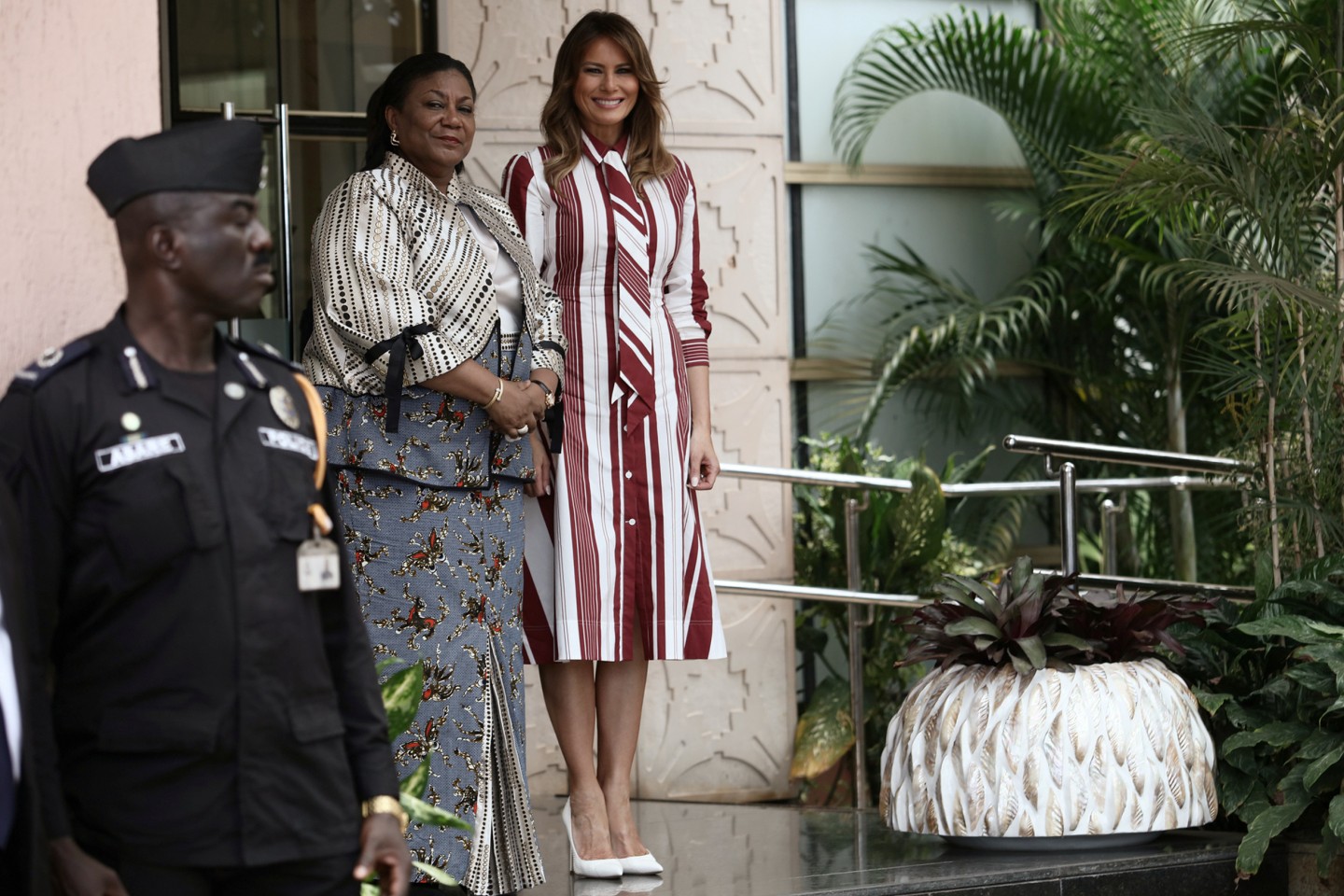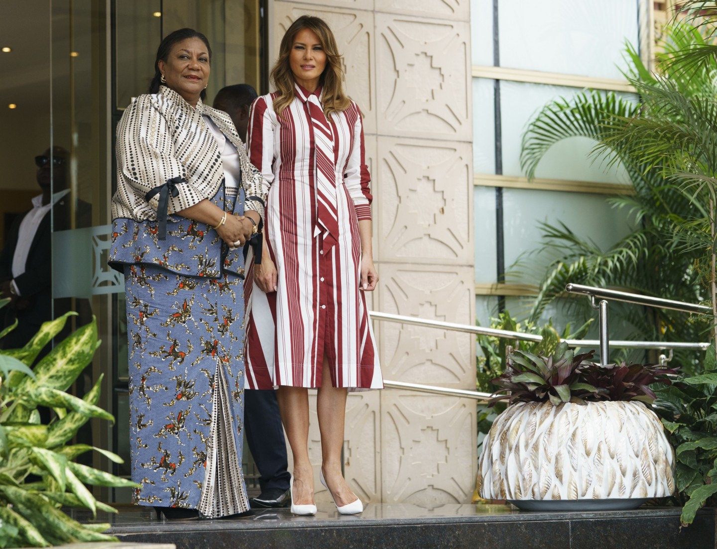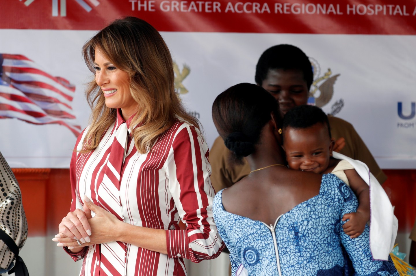 ASV pirmā lēdija Melānija Trampa devusies nedēļu ilgā vizītē uz Āfriku. Vizītes pirmajā dienā uzņemti foto, kuros Donalda Trampa sieva sirsnīgi aprunājas ar bērnu slimnīcas pacientiem.