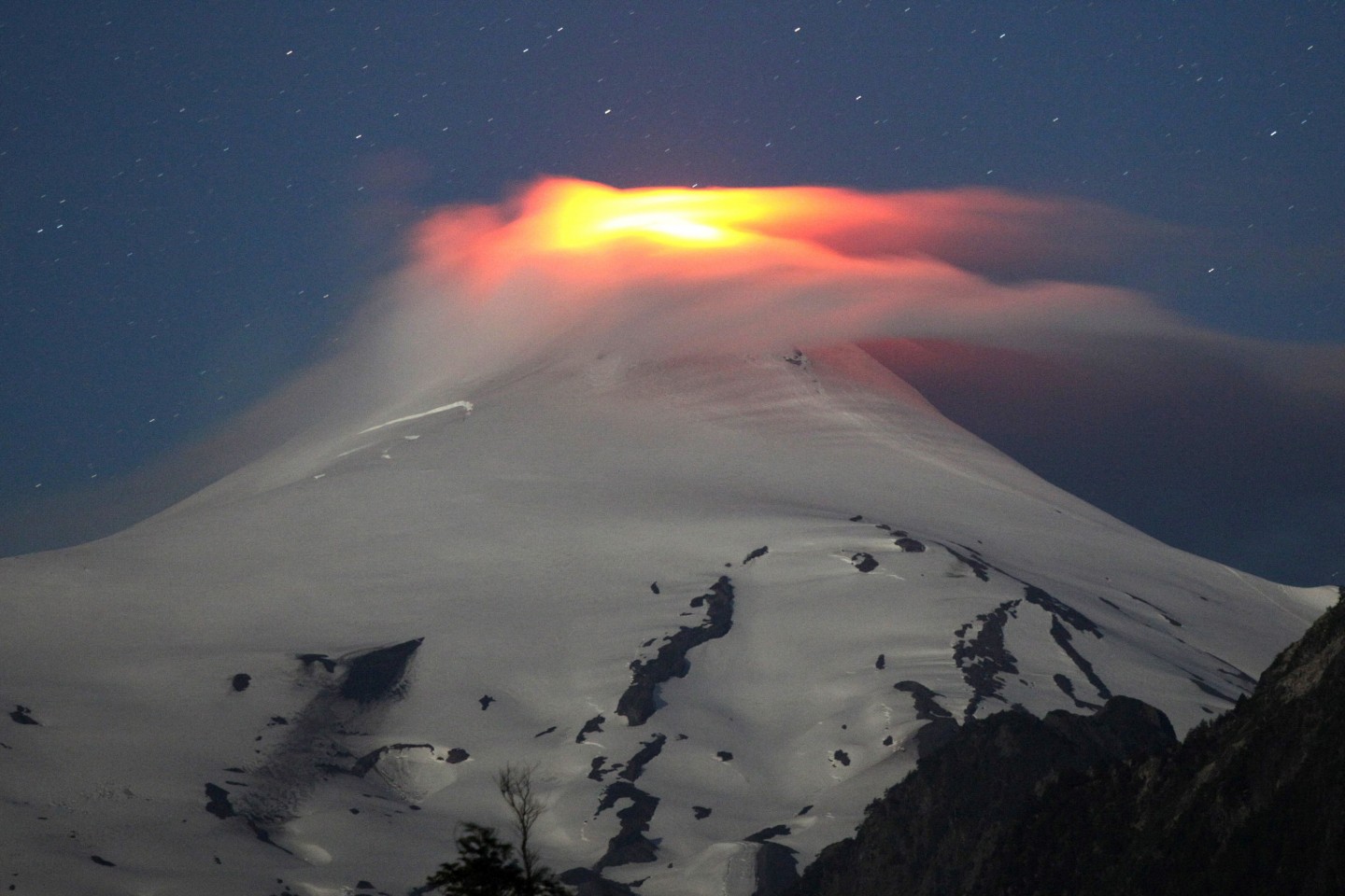 Fantastisks skats ar Viljarrikas vulkānu Čīlē