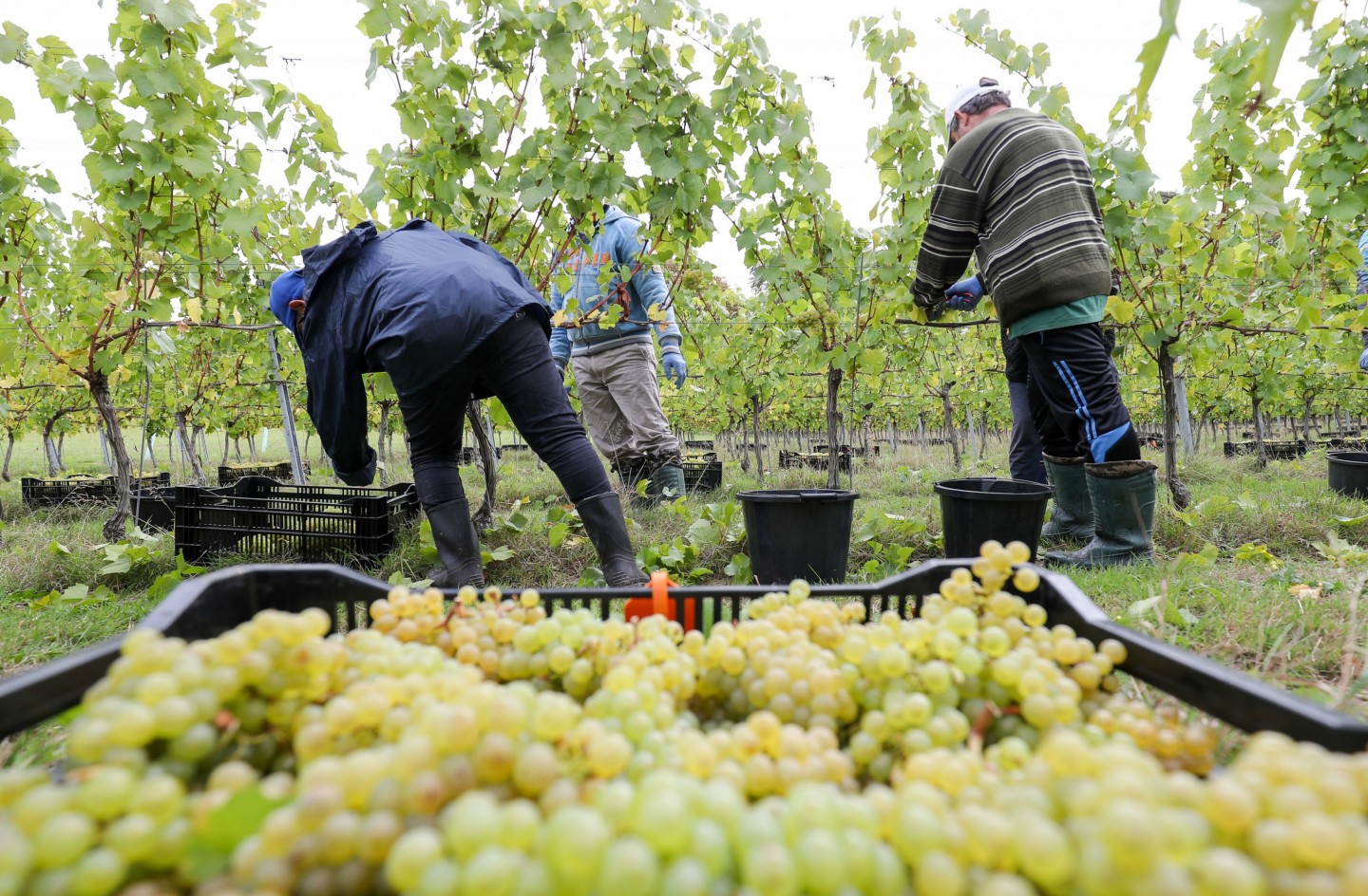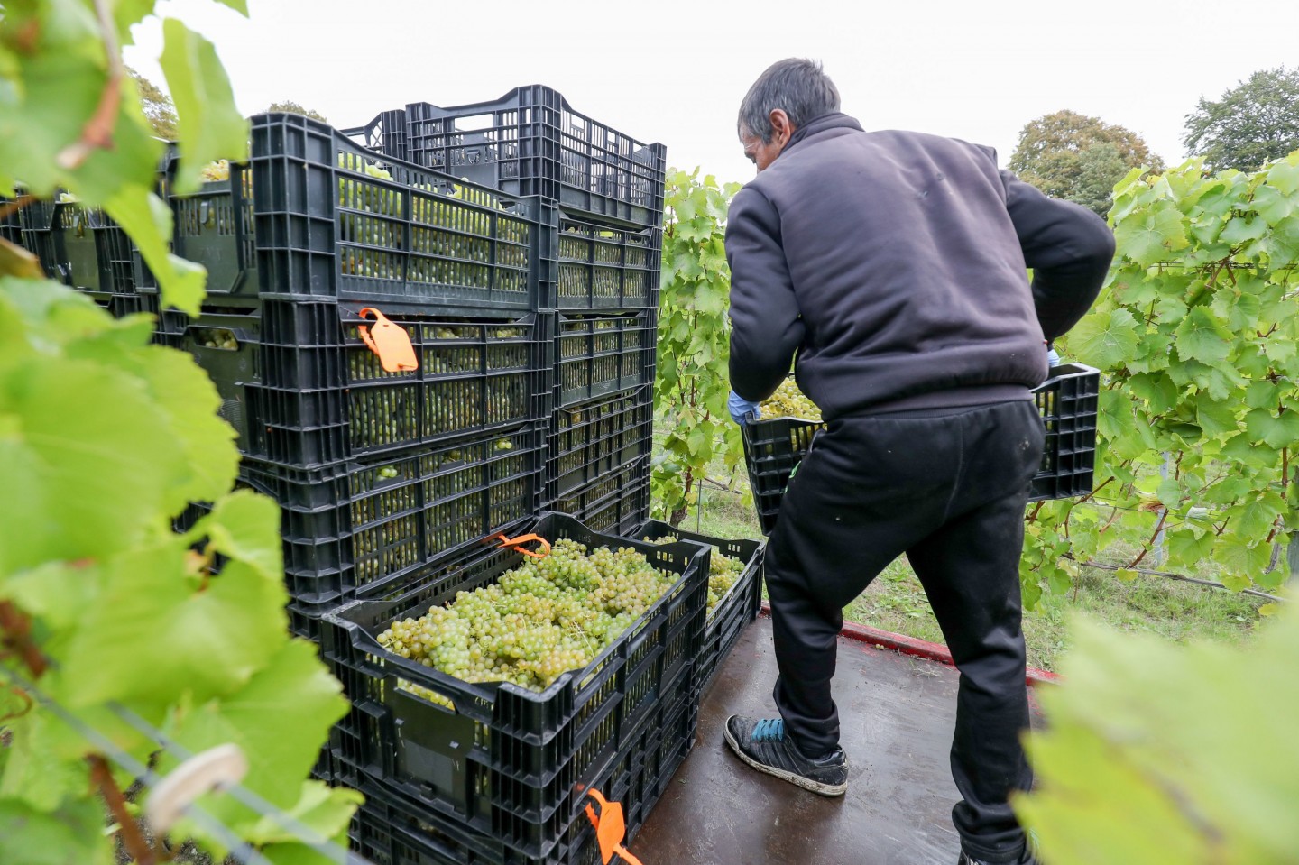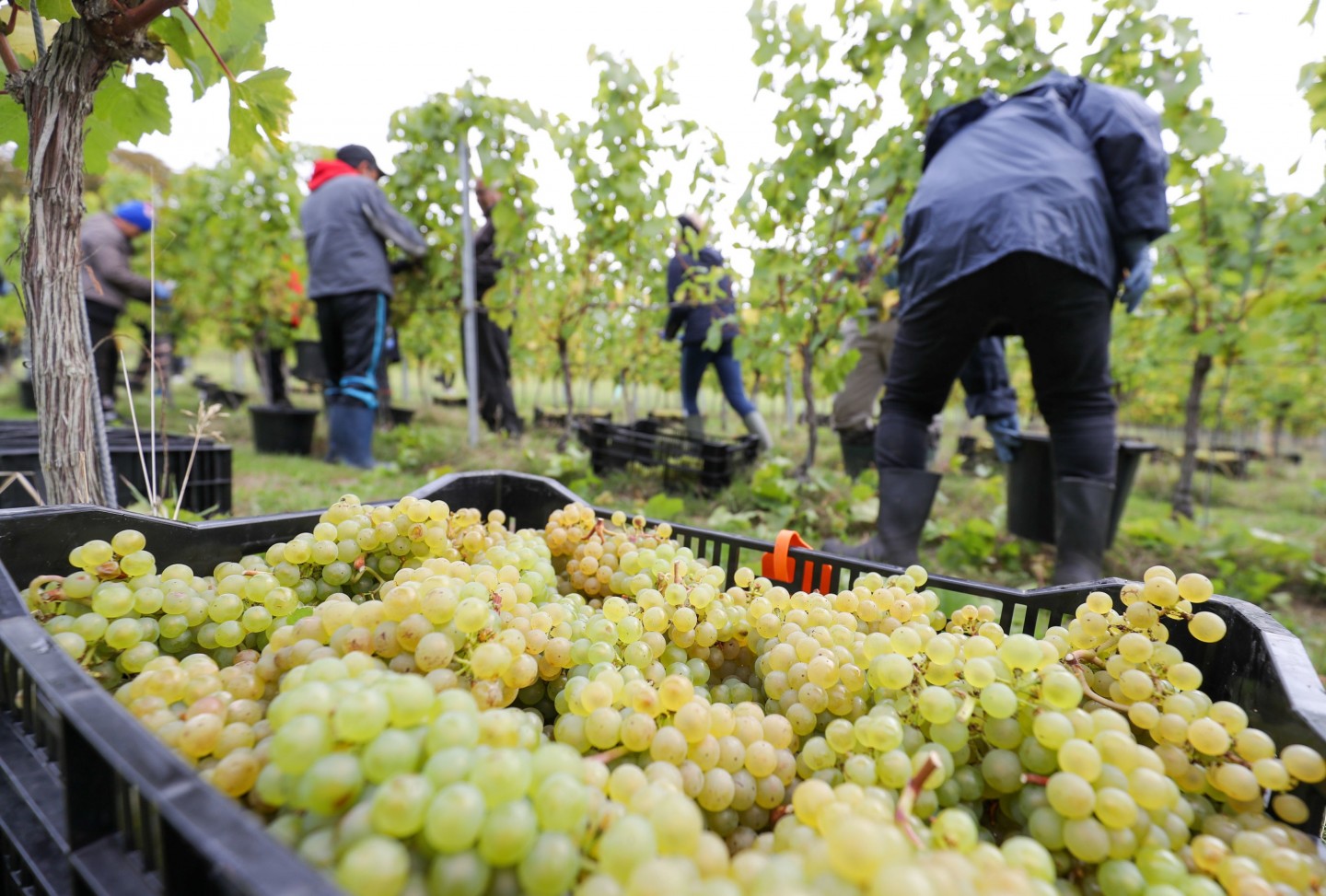 Britu salās novāc brangu Šardonē vīnogu ražu