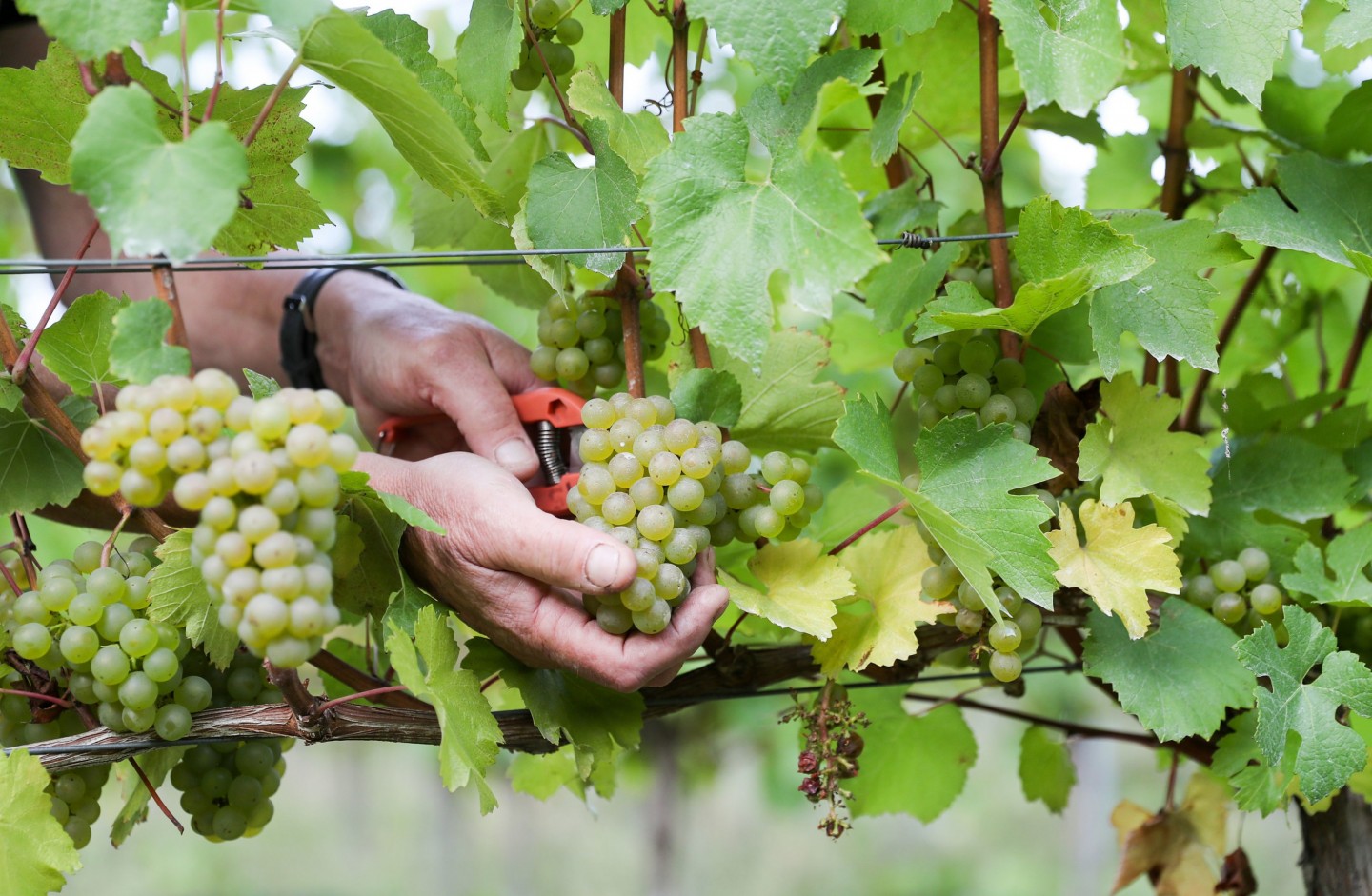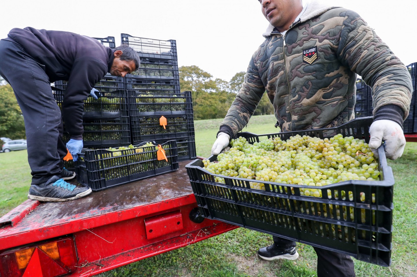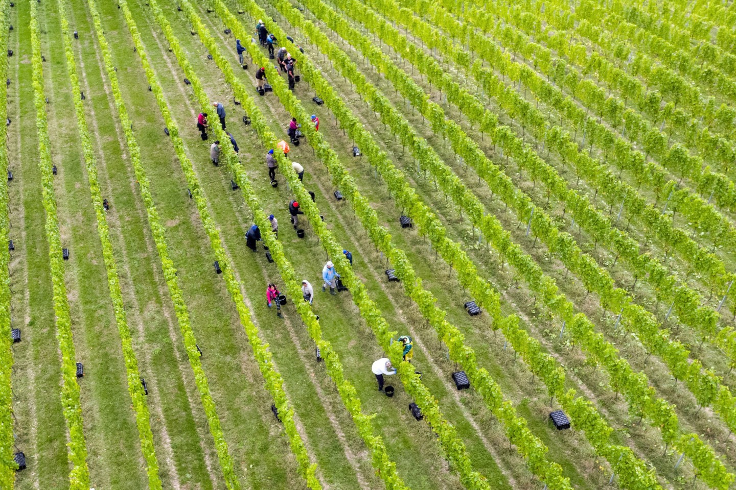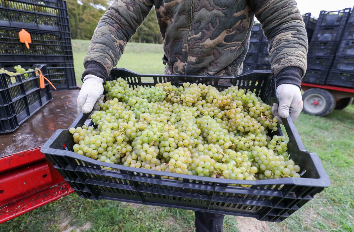 Britu salās novāc brangu Šardonē vīnogu ražu