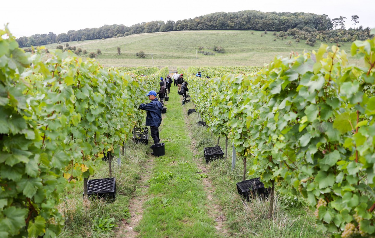 Pēc karstās un garās vasaras, Lielbritānijā tiek novākta neierasti liela Šardonē vīnogu raža.