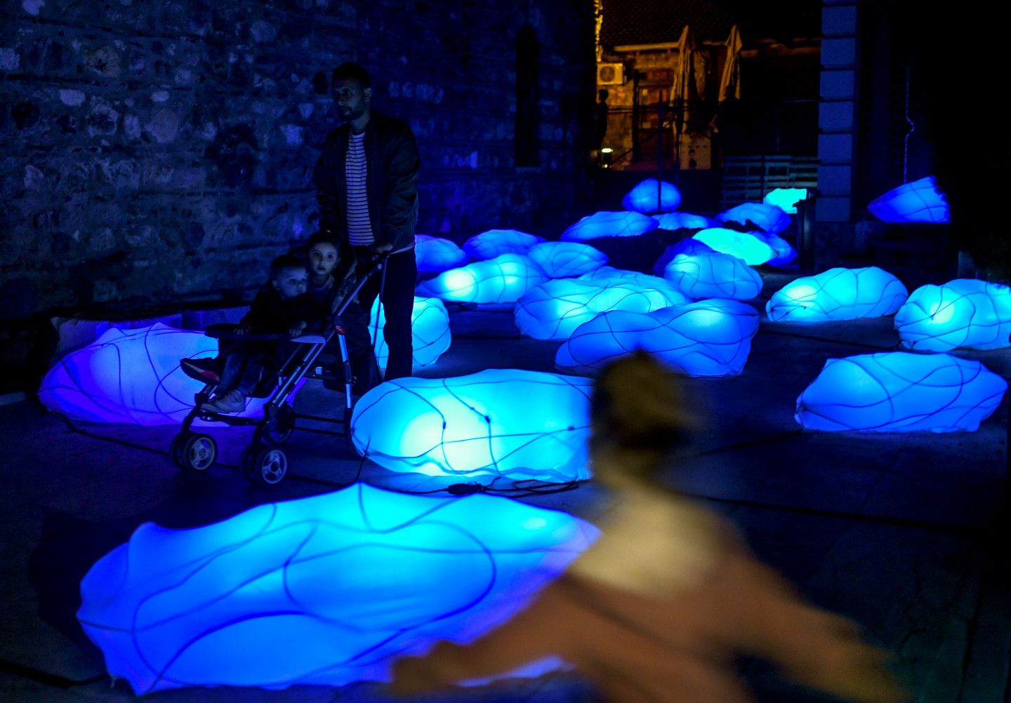 Mākslas instalāciju izstāde Maķedonijas galvaspilsētā