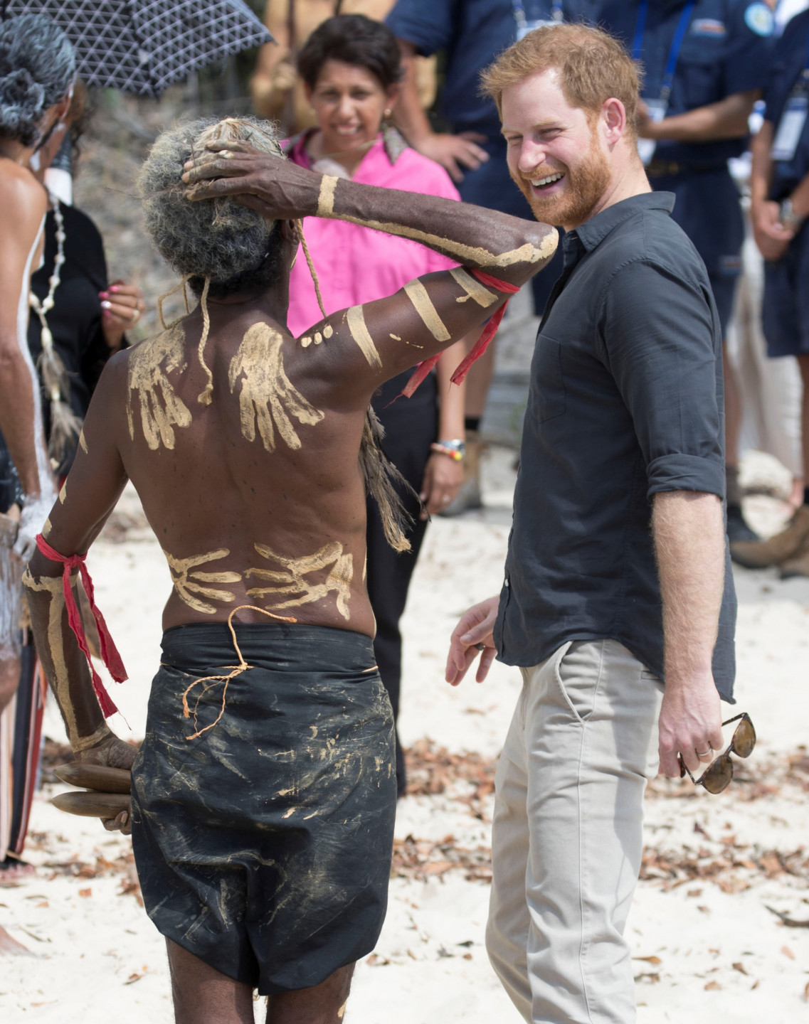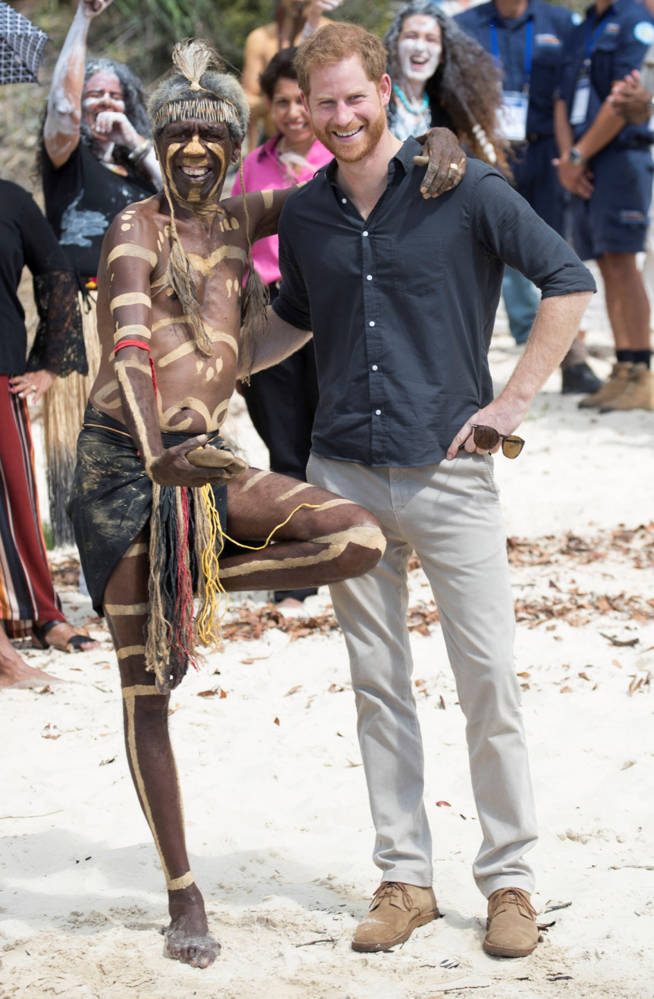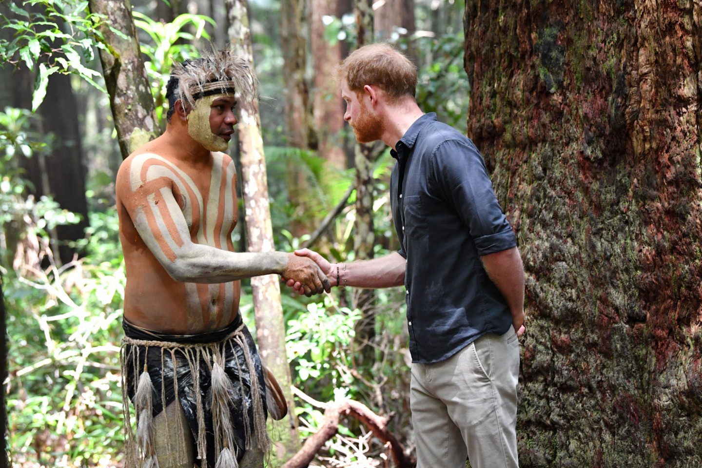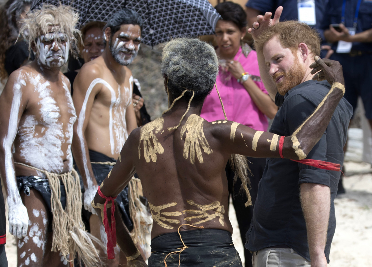 Princis Harijs un Megana viesojas pie Austrālijas aborigēniem