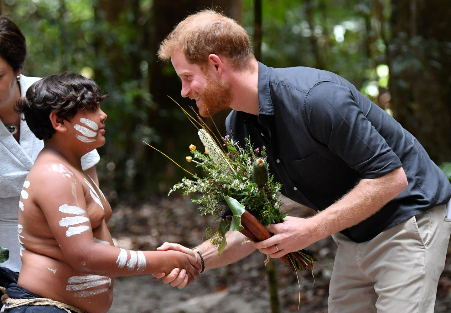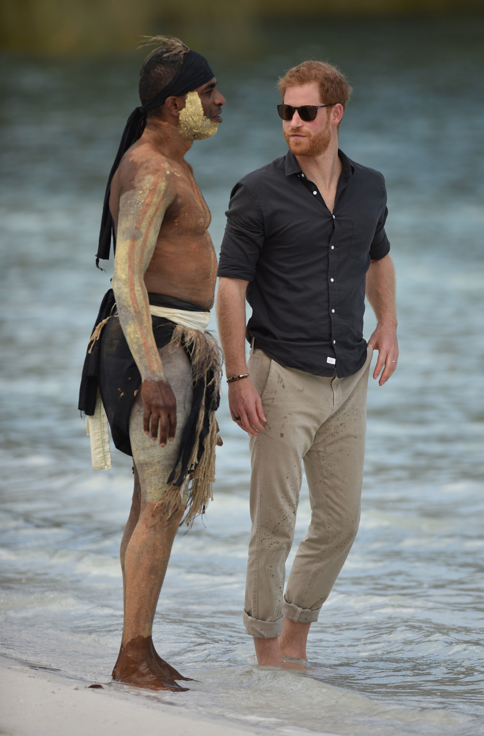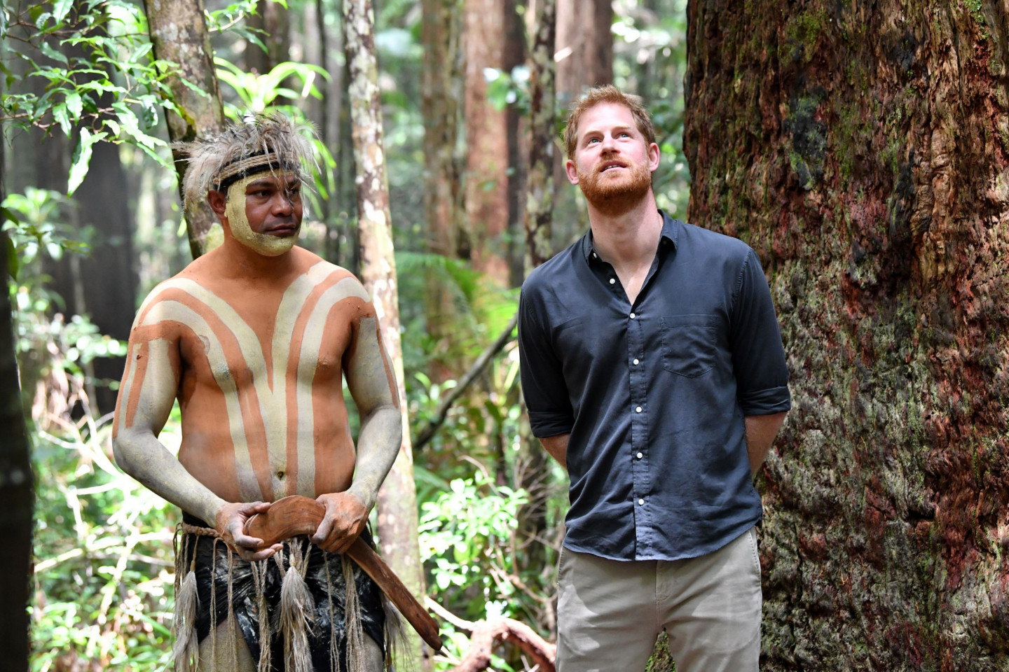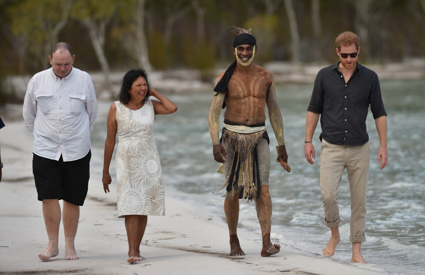 Princis Harijs un Megana viesojas pie Austrālijas aborigēniem