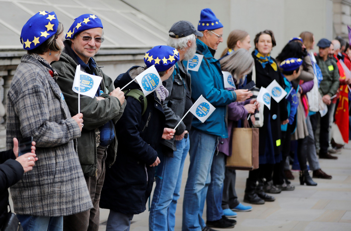 iesību aizstāvju grupas, kas pārstāv citās Eiropas Savienības (ES) valstīs dzīvojošos britus un Lielbritānijā dzīvojošos ES pilsoņus, pirmdien Londonā izveidojušas cilvēku ķēdi netālu no Lielbritānijas premjerministres Terēzas Mejas biroja, pieprasot valdībai garantēt viņu statusu gadījumā, ja Lielbritānijai nāktos izstāties no ES bez vienošanās, vēsta ziņu aģentūra LETA.