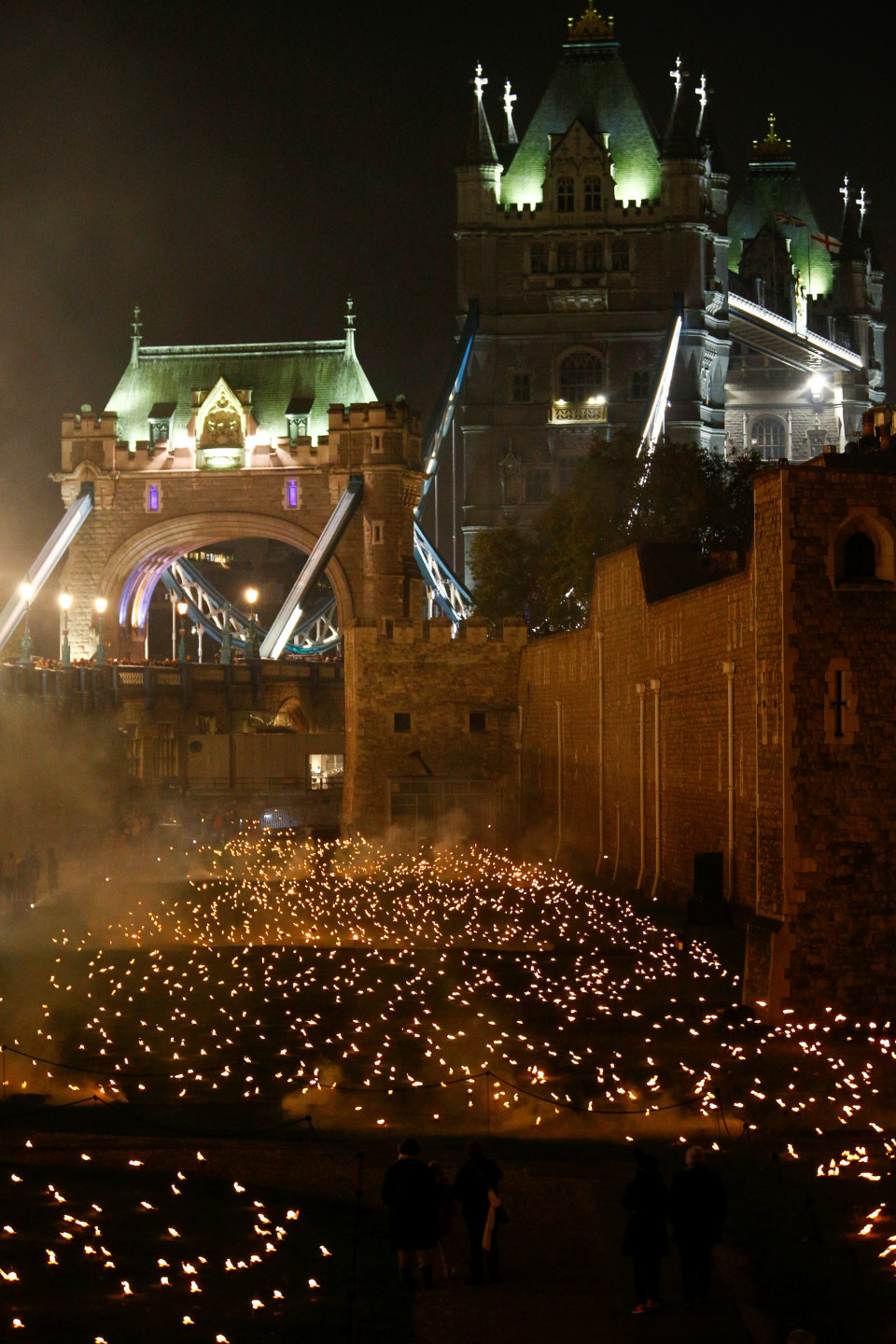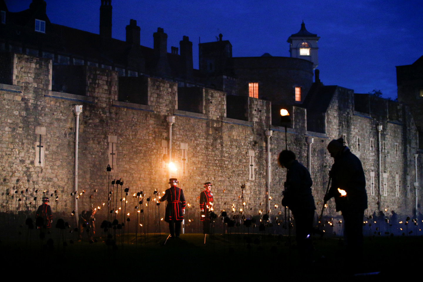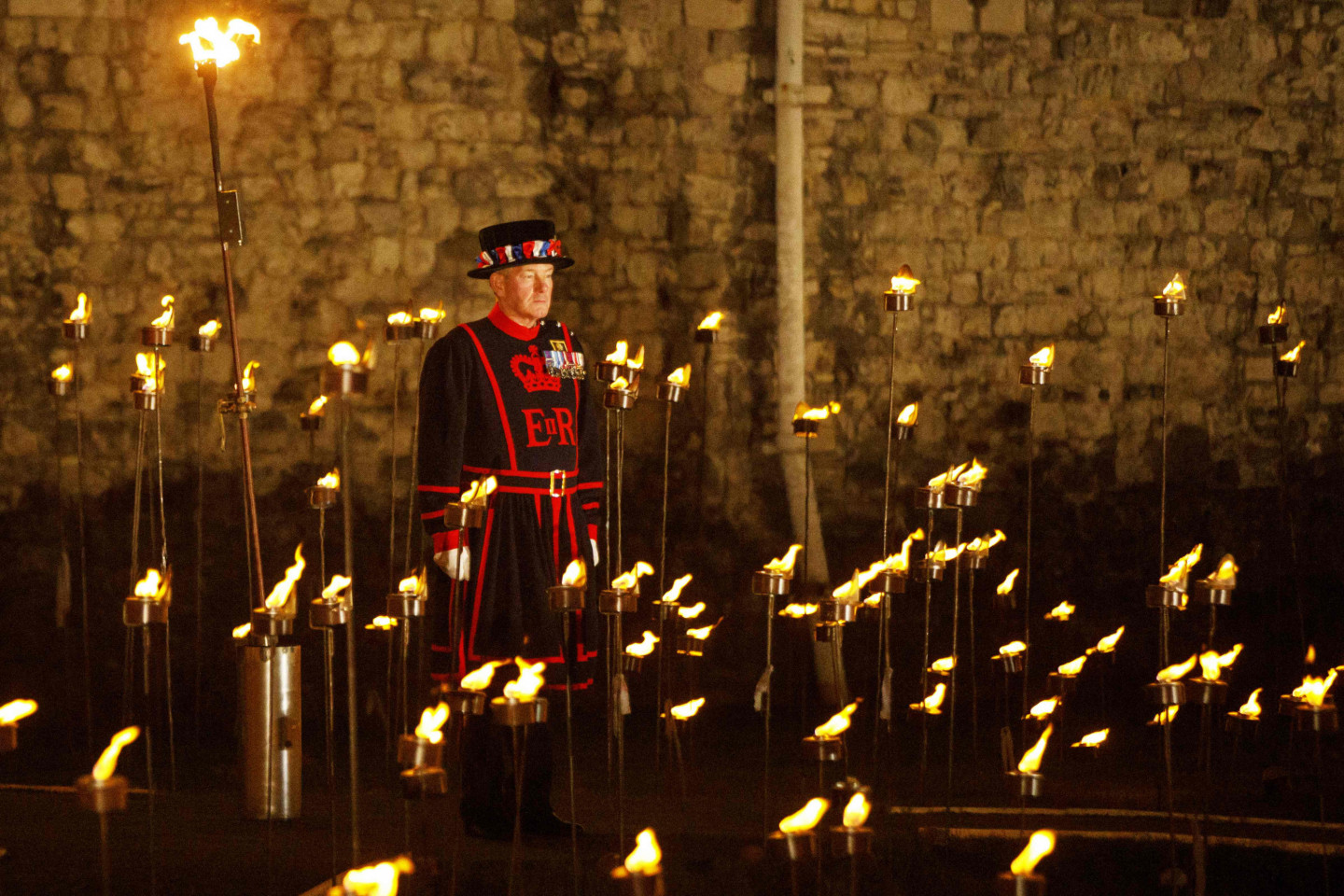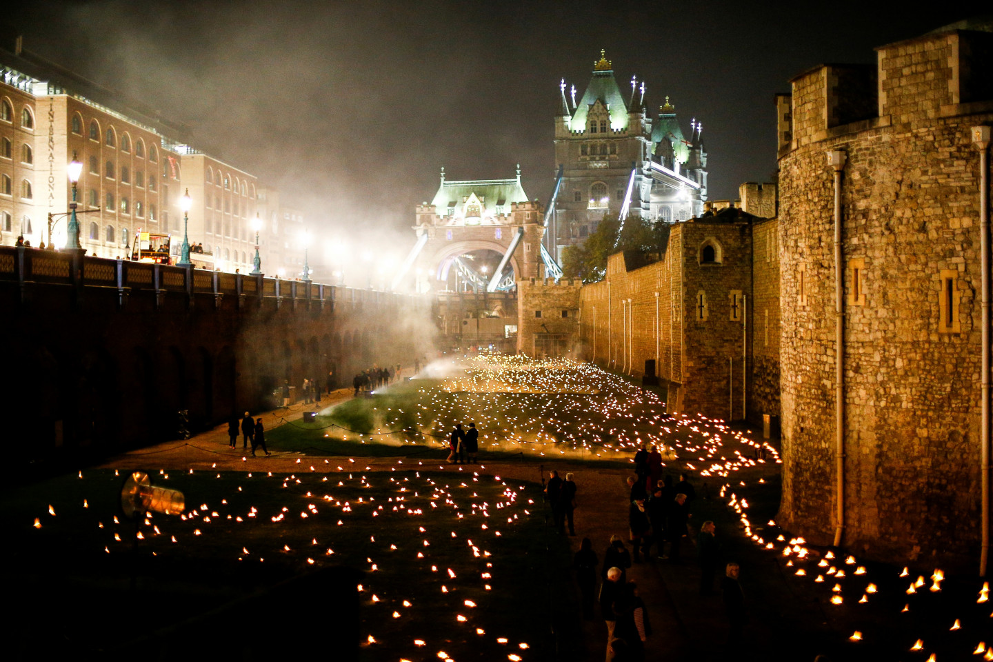 Ar tūkstošiem lāpas liesmu Lielbritānijā izveidota gaismas instalācija par godu gadsimtam kopš Pirmā pasaules kara beigām.