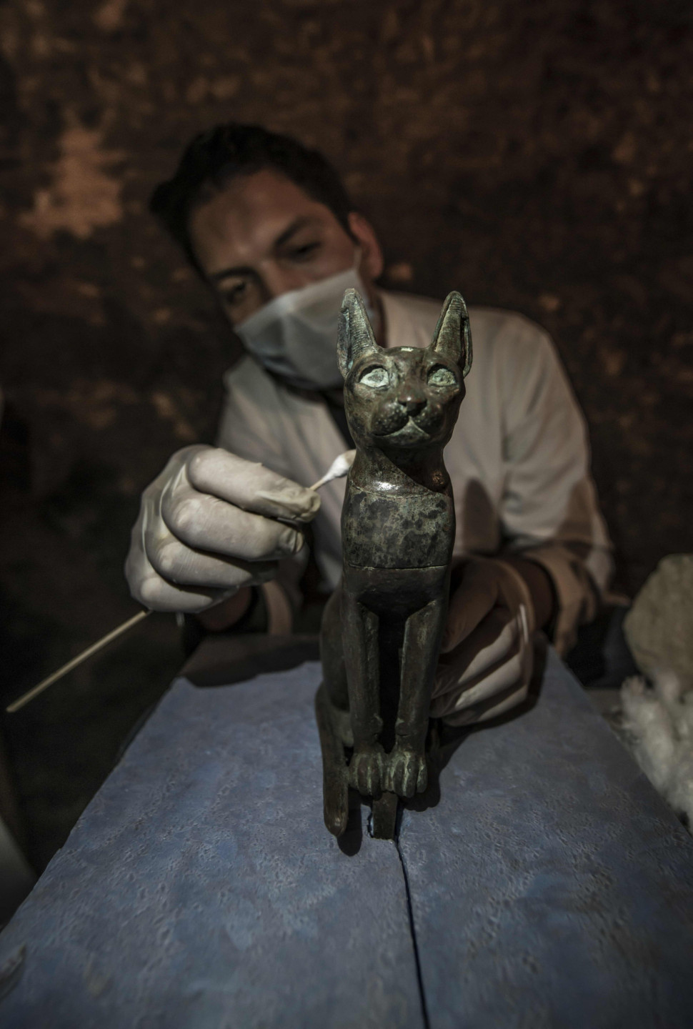 Kopš aprīļa arheologi Ēģiptē veikuši kārtējos izpētes darbus piramīdās, kur šoreiz atklāts liels skaits kaķu statuju.