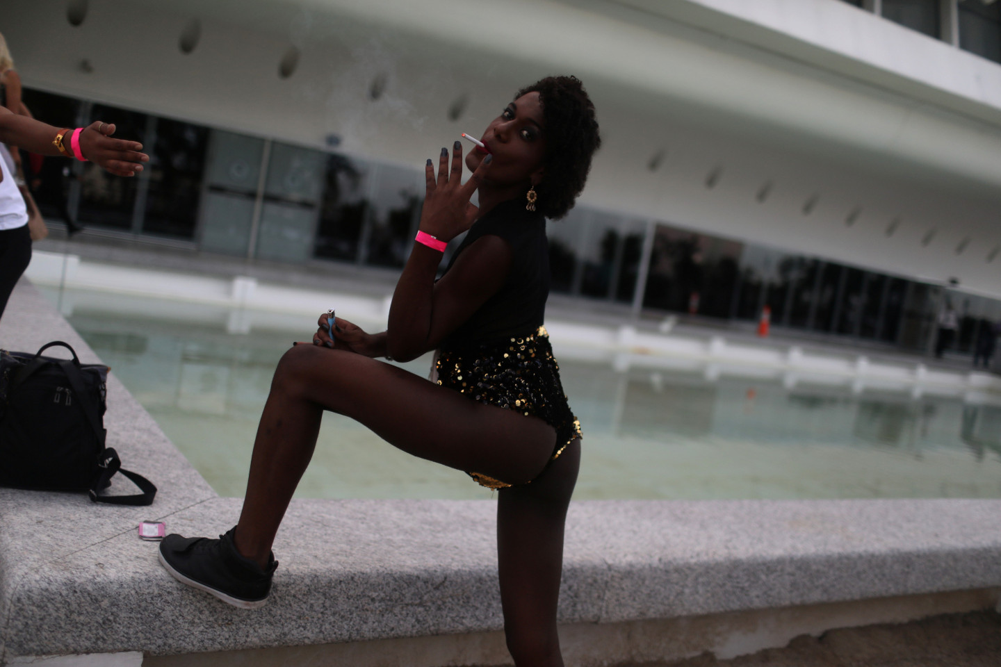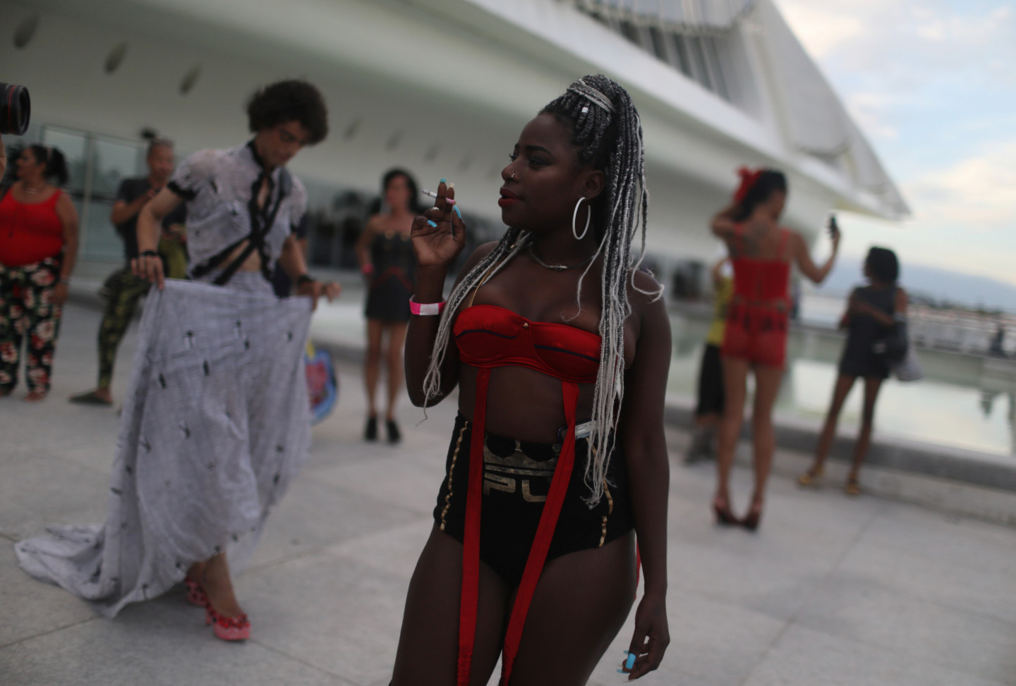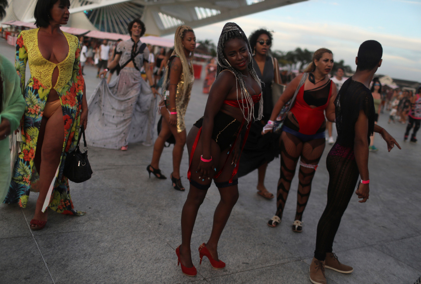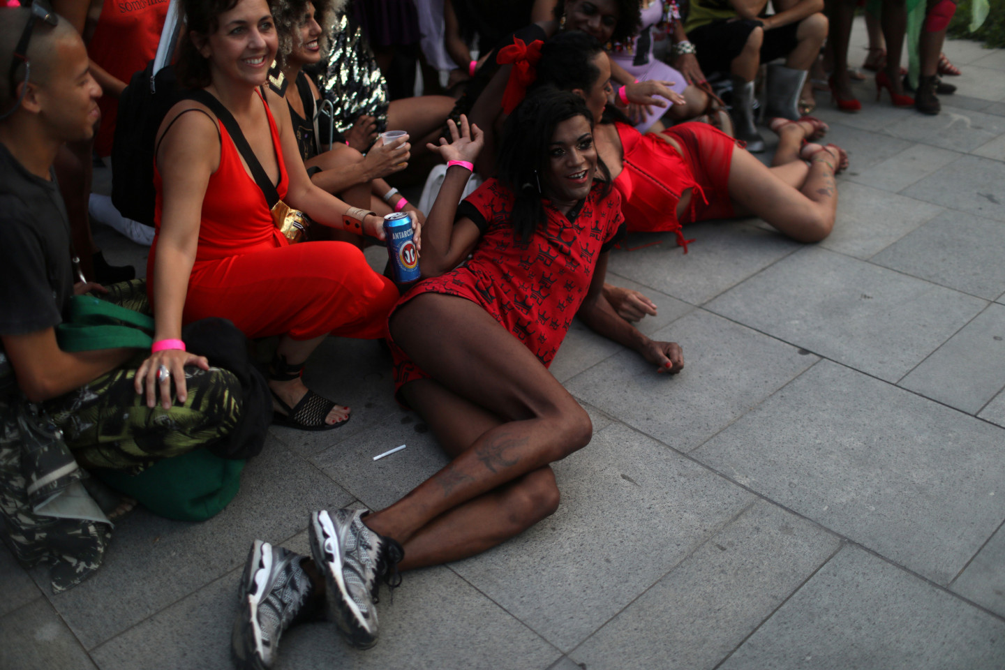 Brazīļu prostitūtas devušās Riodežainero ielās - šoreiz nevis sniegt pakalpojumus, bet lai izrādītu pašu radīto modes zīmolu ''Daspu''.