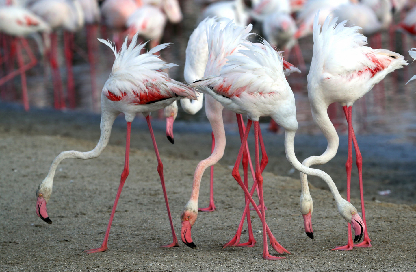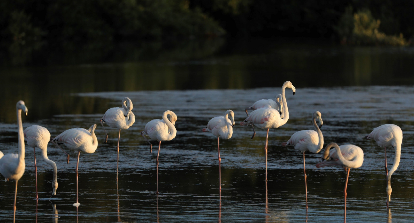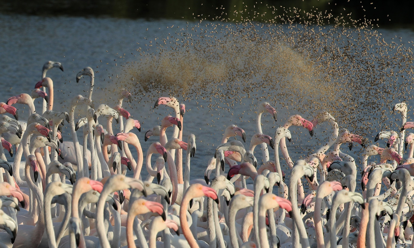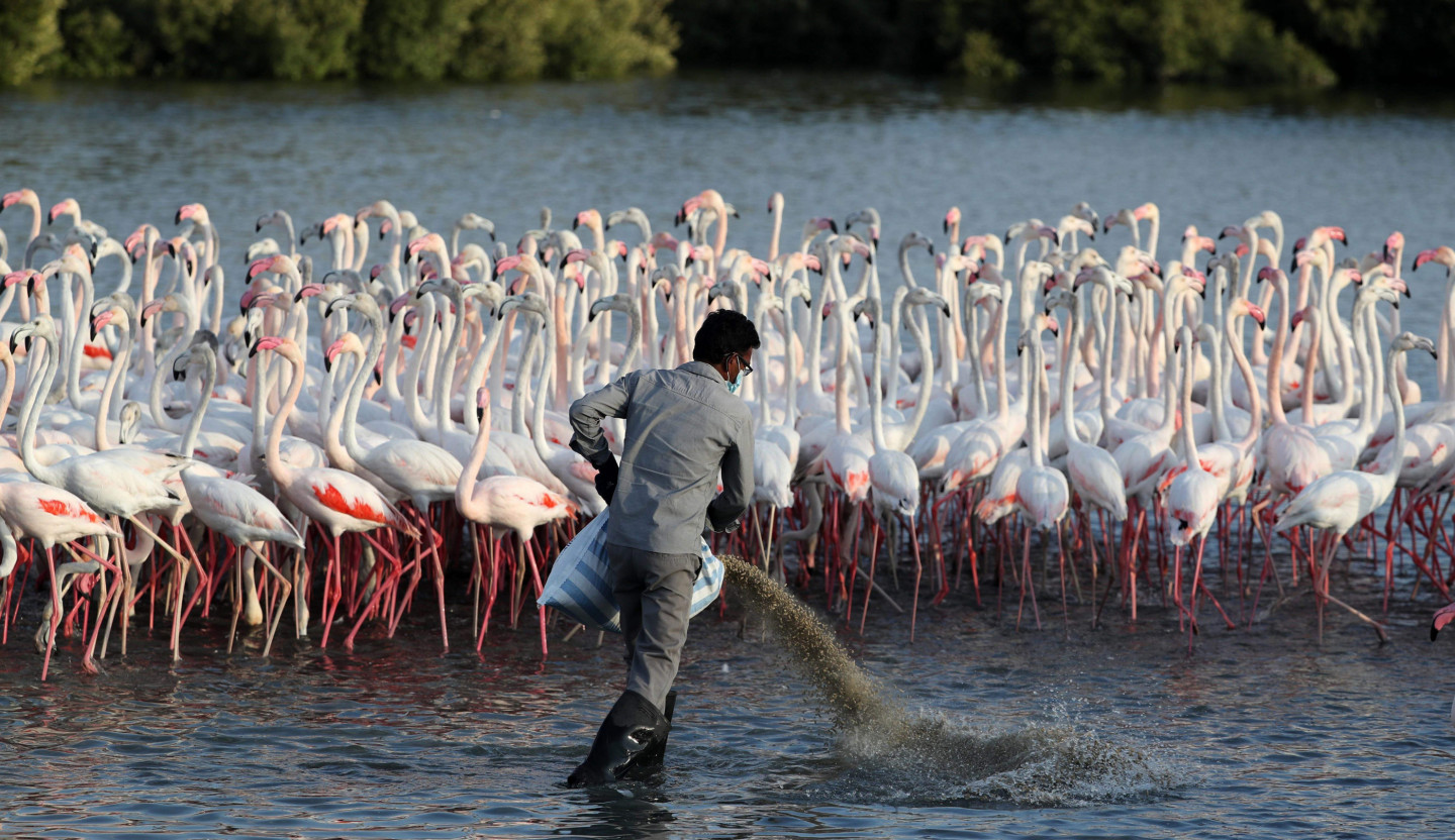 Ezerā Dubaijā gozējas flamingo bars