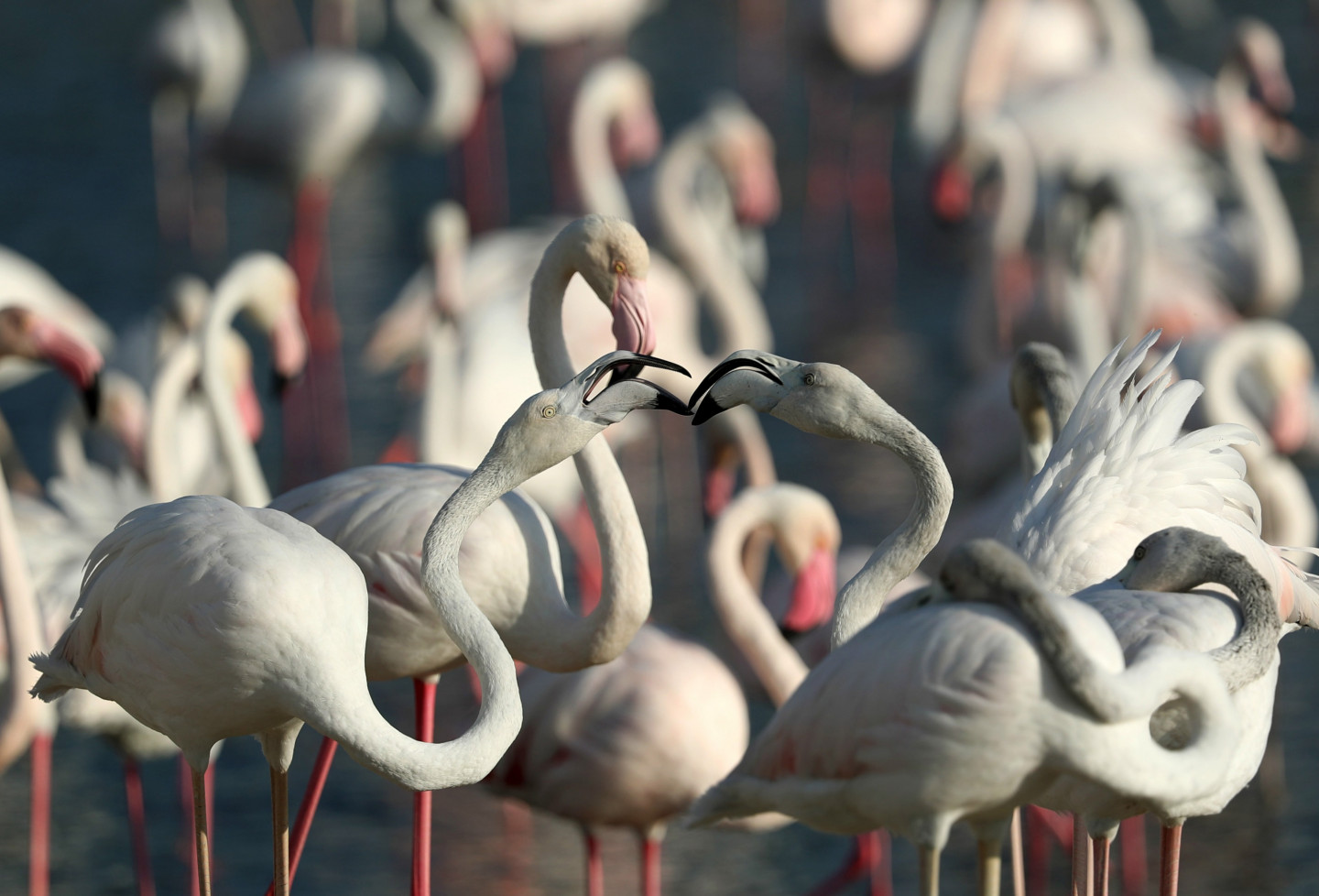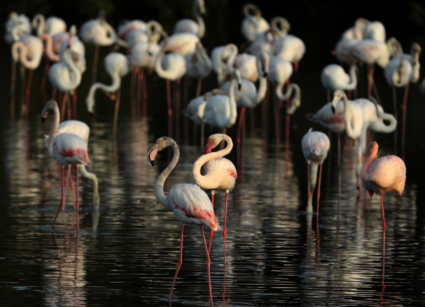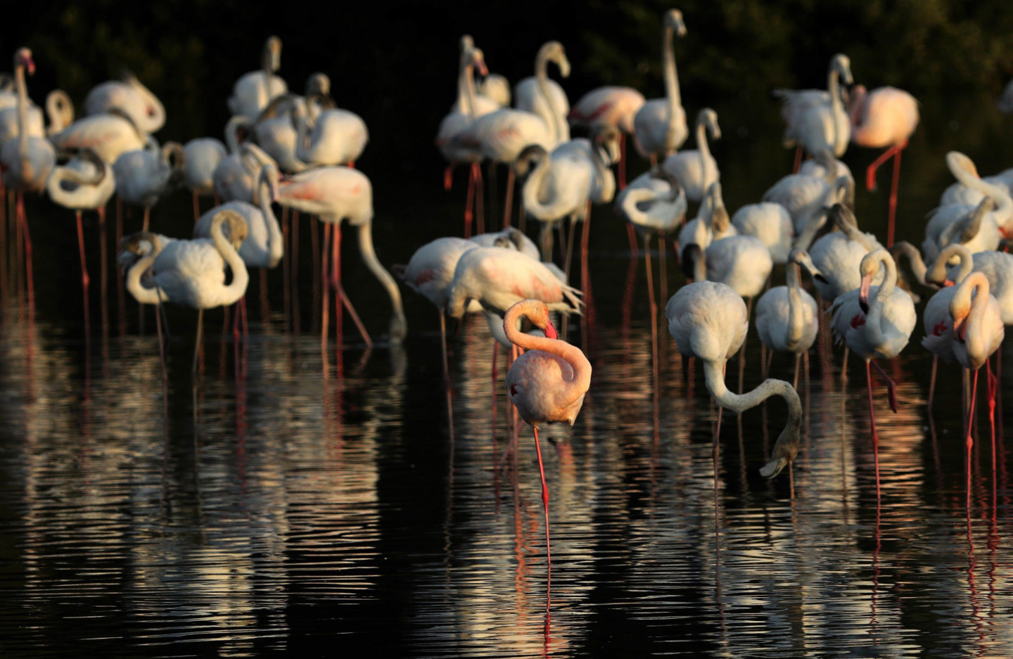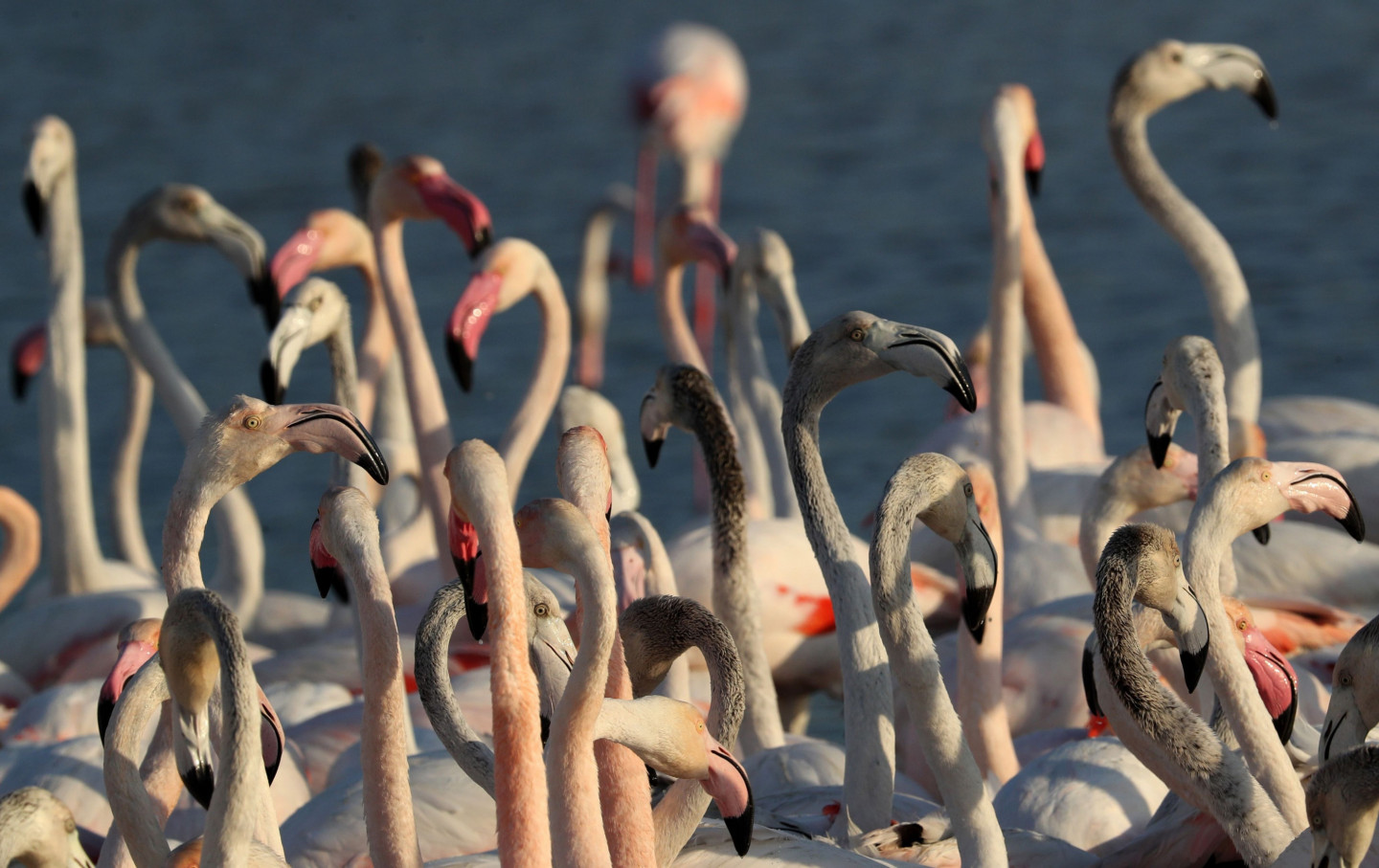 Ezerā Dubaijā gozējas flamingo bars