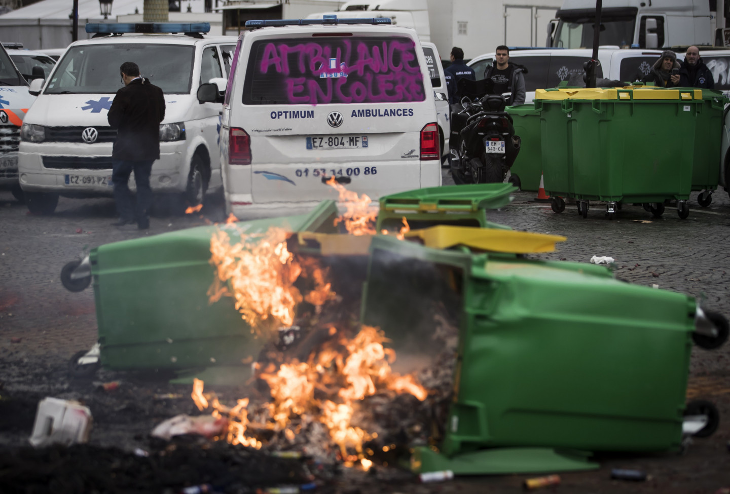 Kamēr Francijas premjerministrs Eduārs Filips pirmdien tiekas ar opozīcijas pārstāvjiem, cenšoties mazināt spriedzi pēc nedēļas nogales vardarbīgajiem protestiem Parīzē, protestiem pievienojušās arī ātrās palīdzības ekipāžas. Vairāki desmiti ātrās palīdzības automobiļu bloķējuši tiltu, kas ved uz Burbonu pili, kur izvietota Nacionālā sapulce. Ātrās palīdzības dienesta mediķi nav apmierināti ar izmaiņām to darba nosacījumos, un pieprasa prezidenta Emanuela Makrona atkāpšanos, vēsta ziņu aģentūra LETA.
