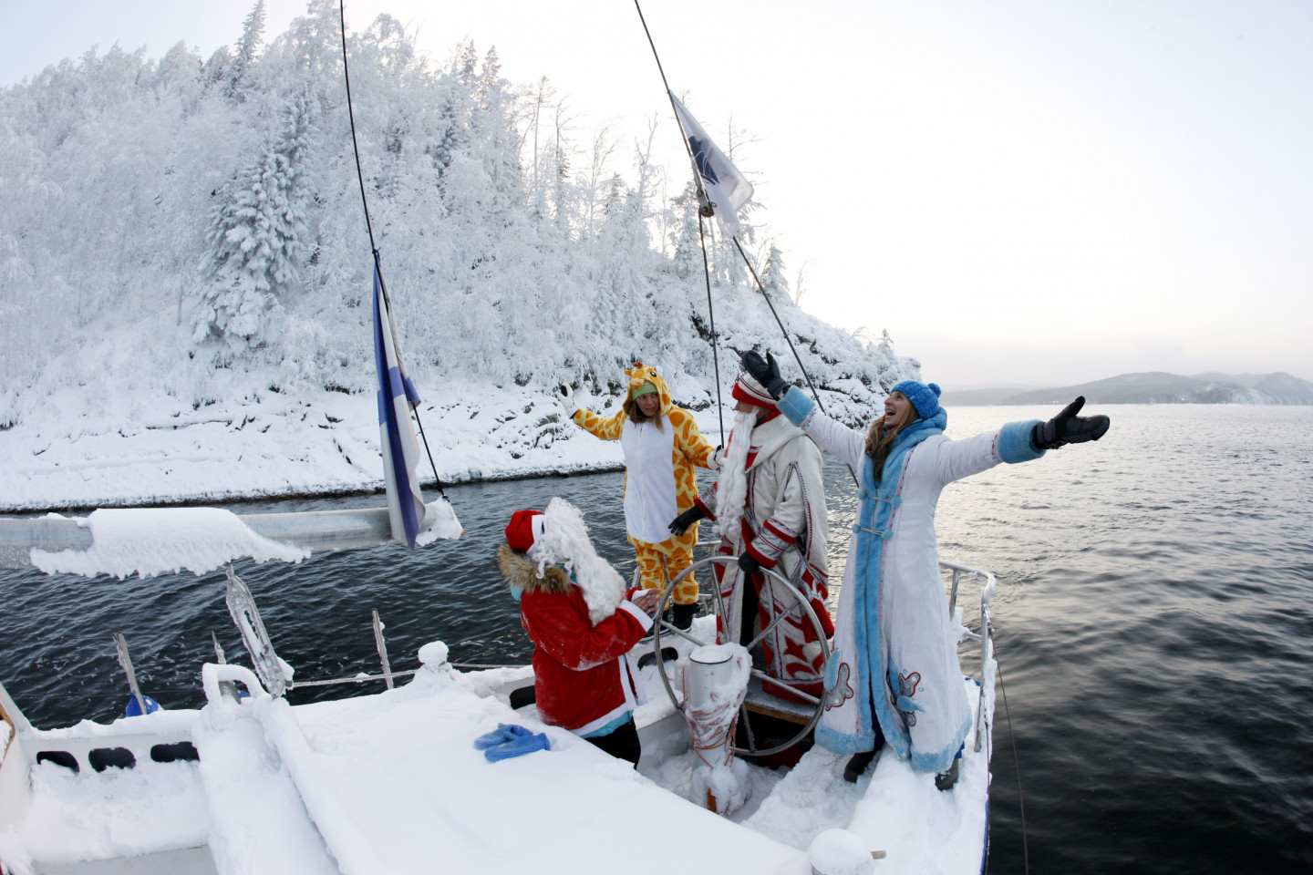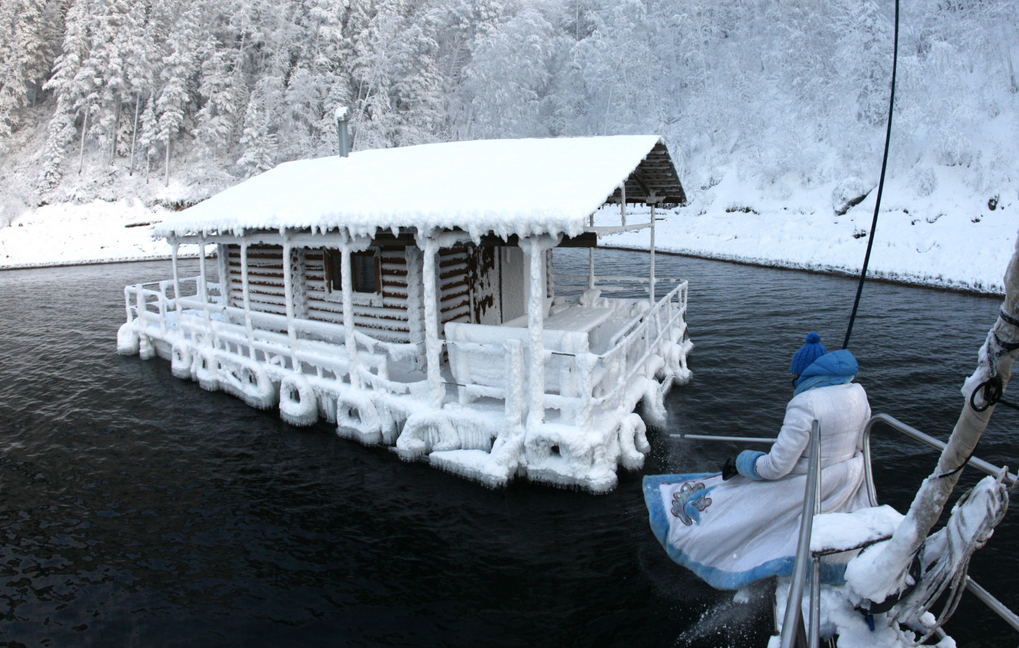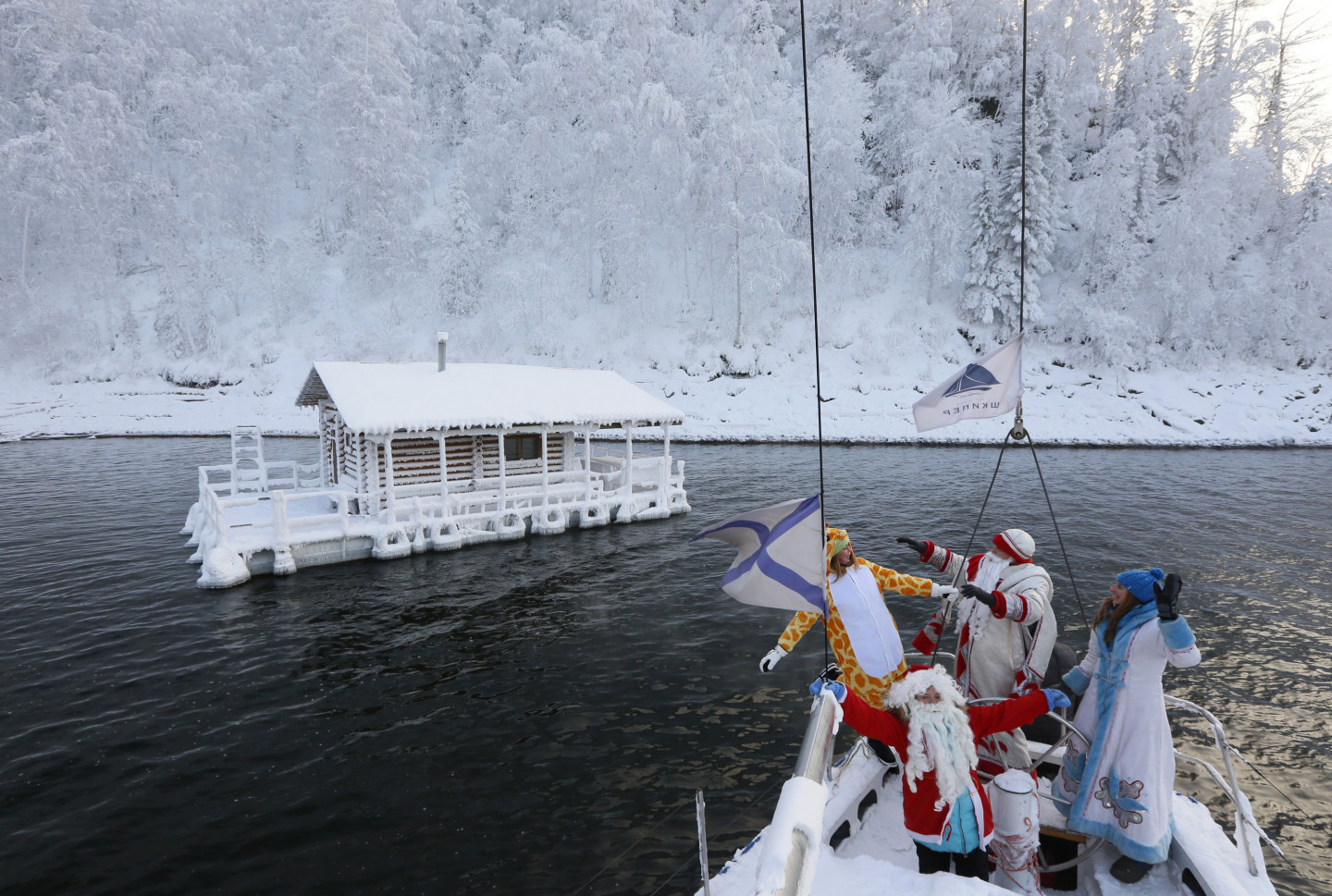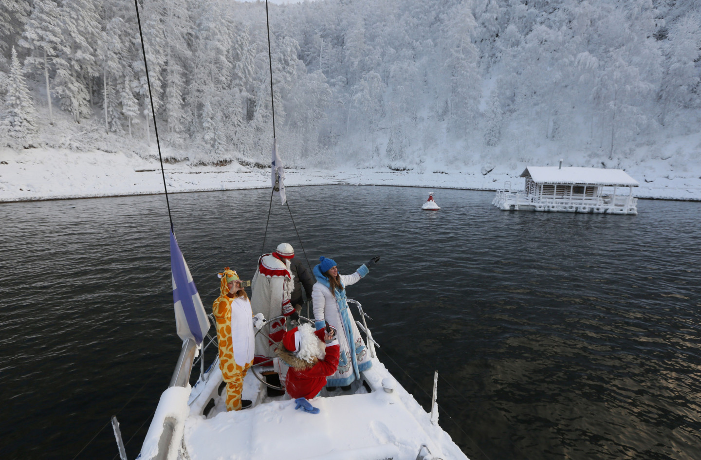 Fotogrāfi iemūžinājuši, kā kāda jahtu kluba biedri Krievijā atpūtušies ziemas laikā.