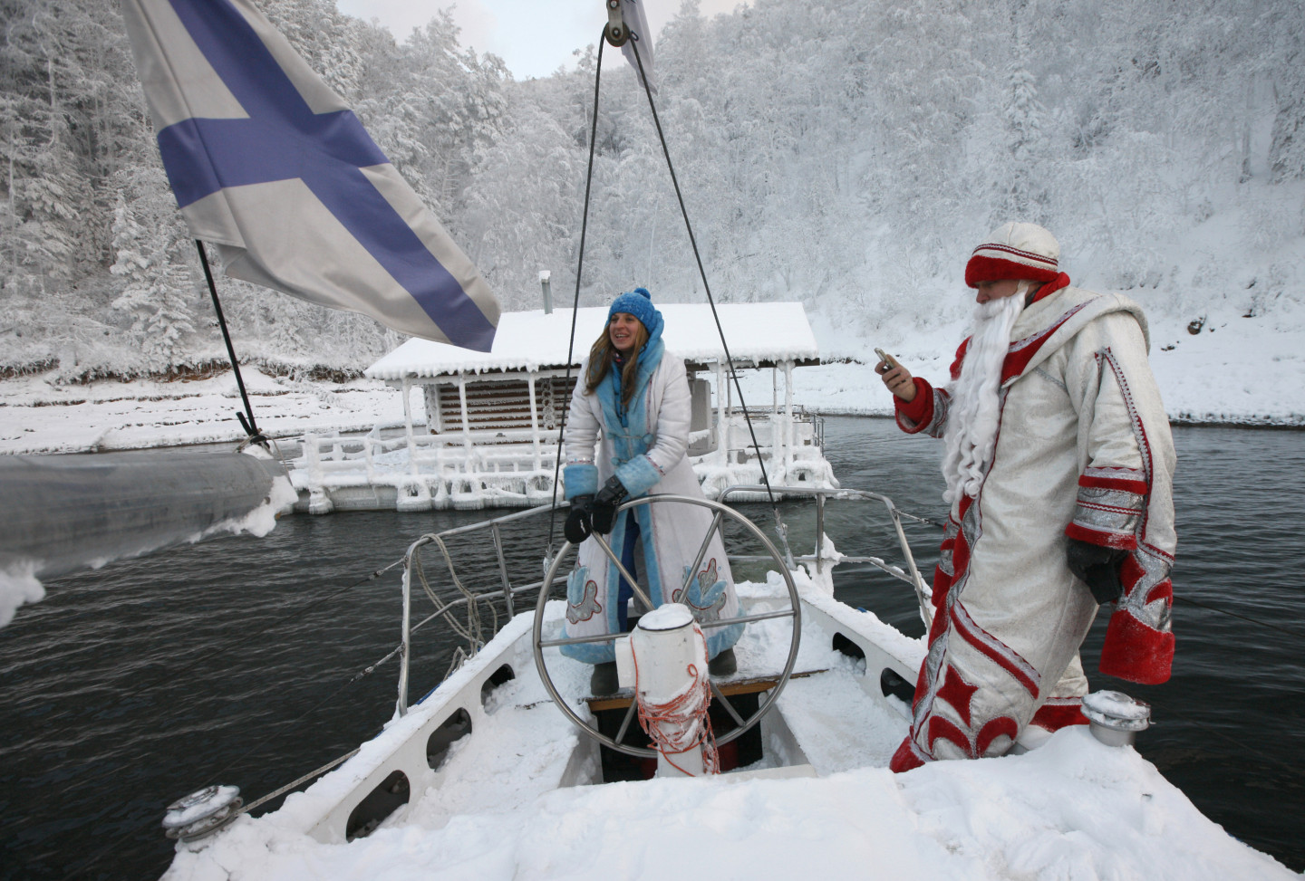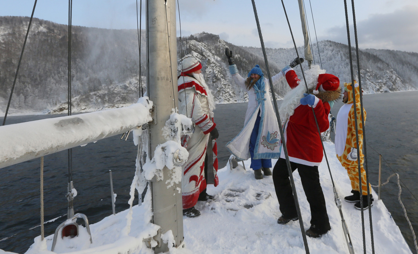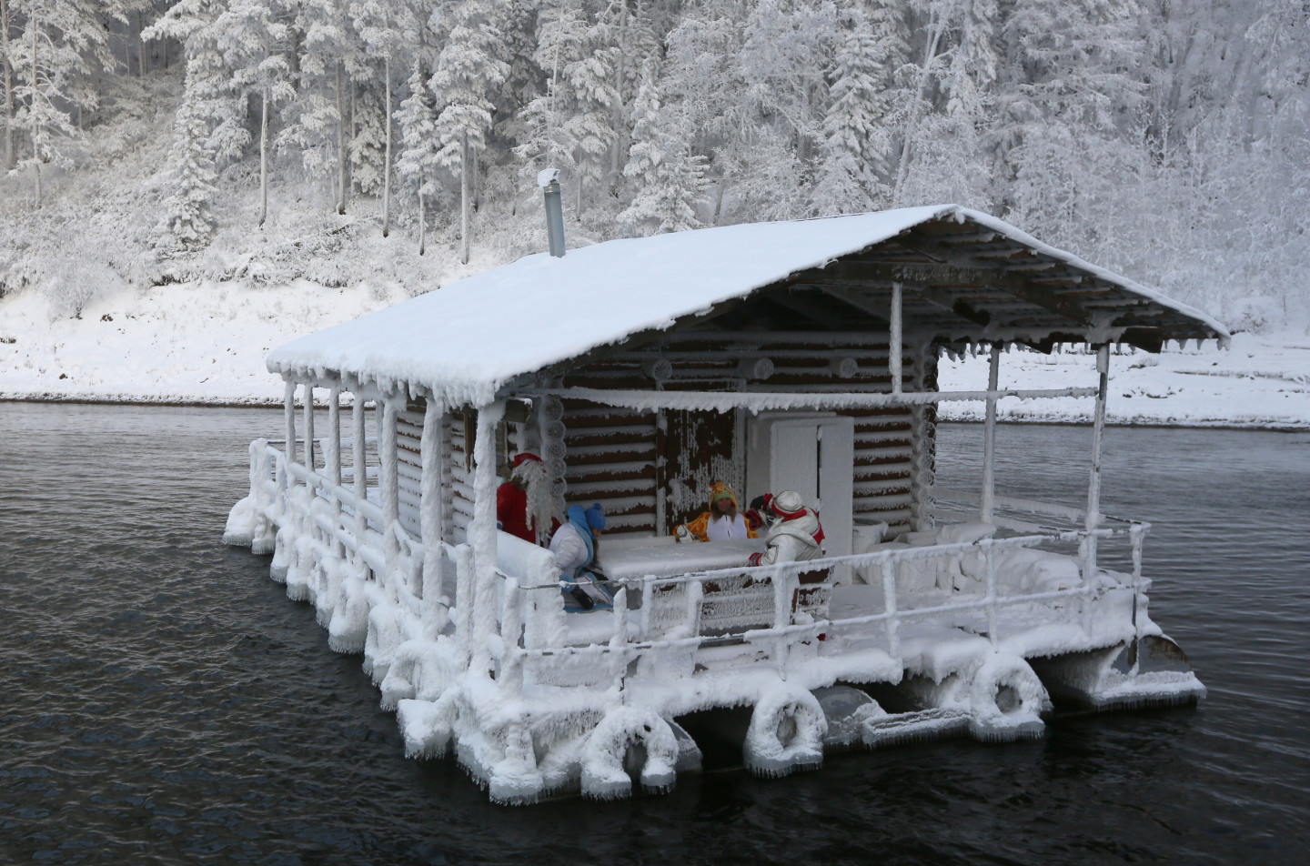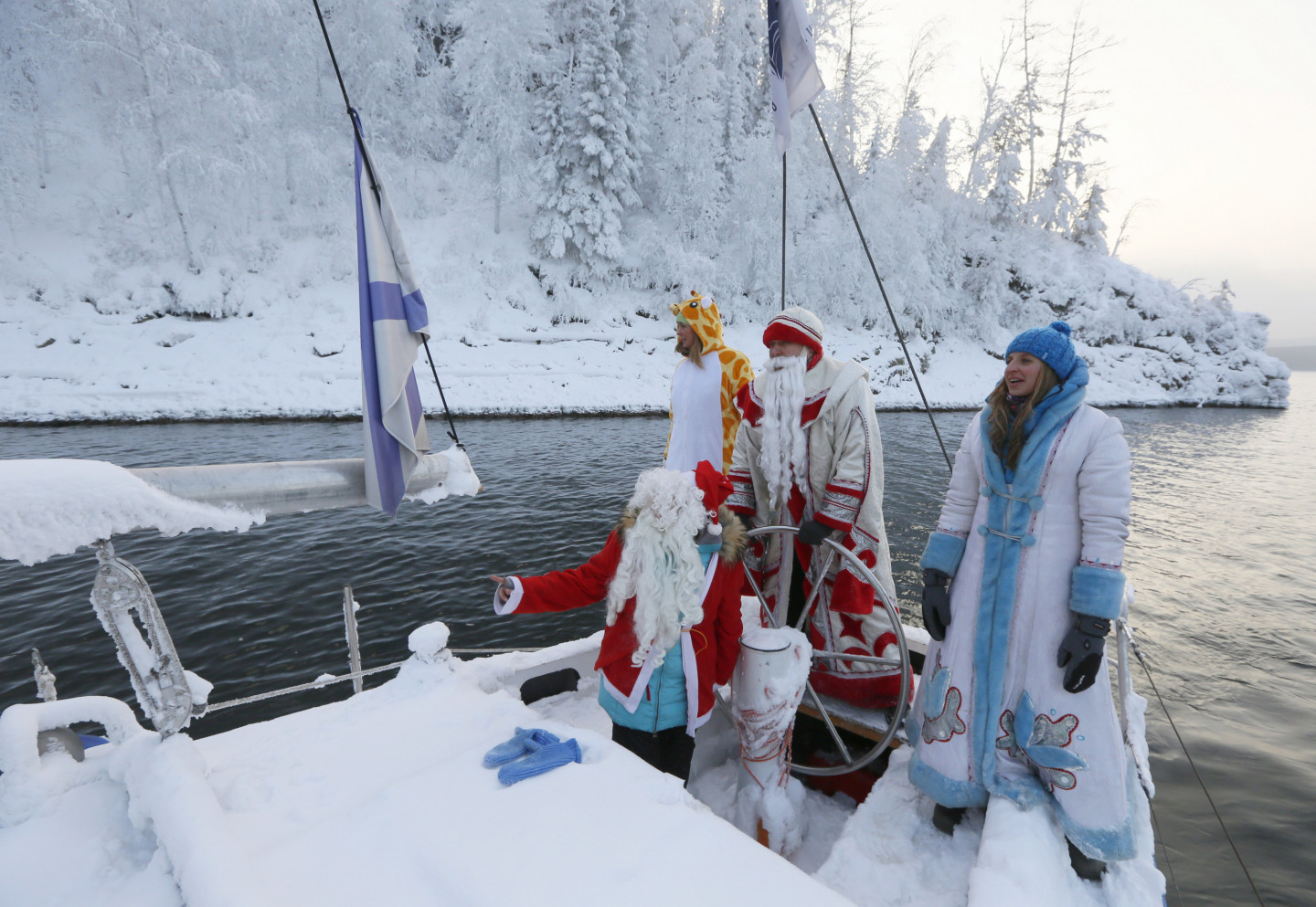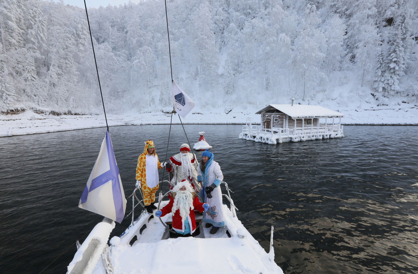 Fotogrāfi iemūžinājuši, kā kāda jahtu kluba biedri Krievijā atpūtušies ziemas laikā.