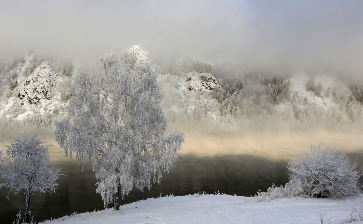 Krievijā, Krasnojarskā, kur gaisa temperatūra pēdējo dienu laikā sasniegusi -16 grādu atzīmi, fotogrāfi iemūžinājuši ļoti skaistus ziemas skatus.