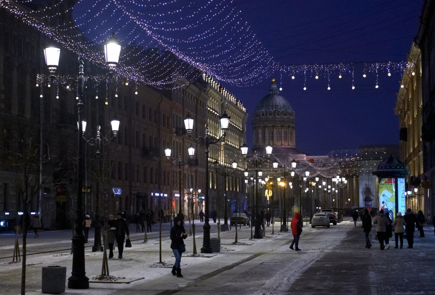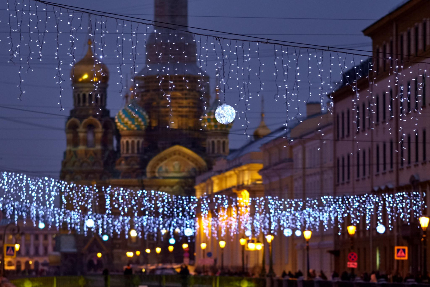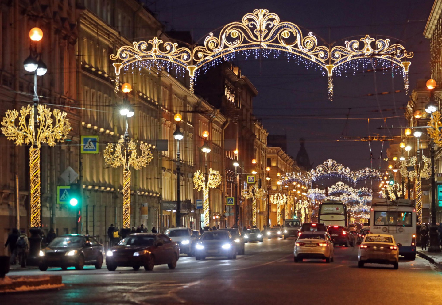 Sanktpēterburga izgreznota Ziemassvētku noskaņās