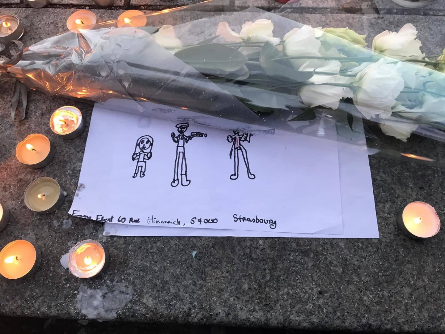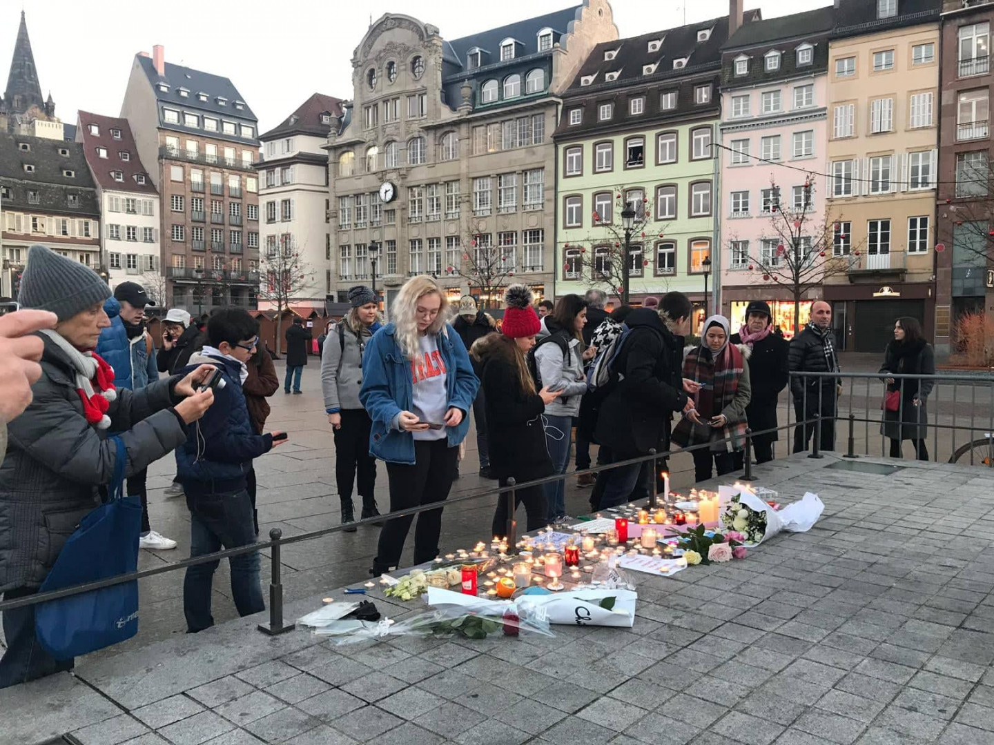 Otrdienas, 11.decembra vakarā, šāvējs netālu no Strasbūras Ziemassvētku tirgus nogalinājis divus cilvēkus, bet vēl 12 ievainojis. Šodien notikuma vietā cilvēki noliek ziedus un sveces bojāgājušo piemiņai.