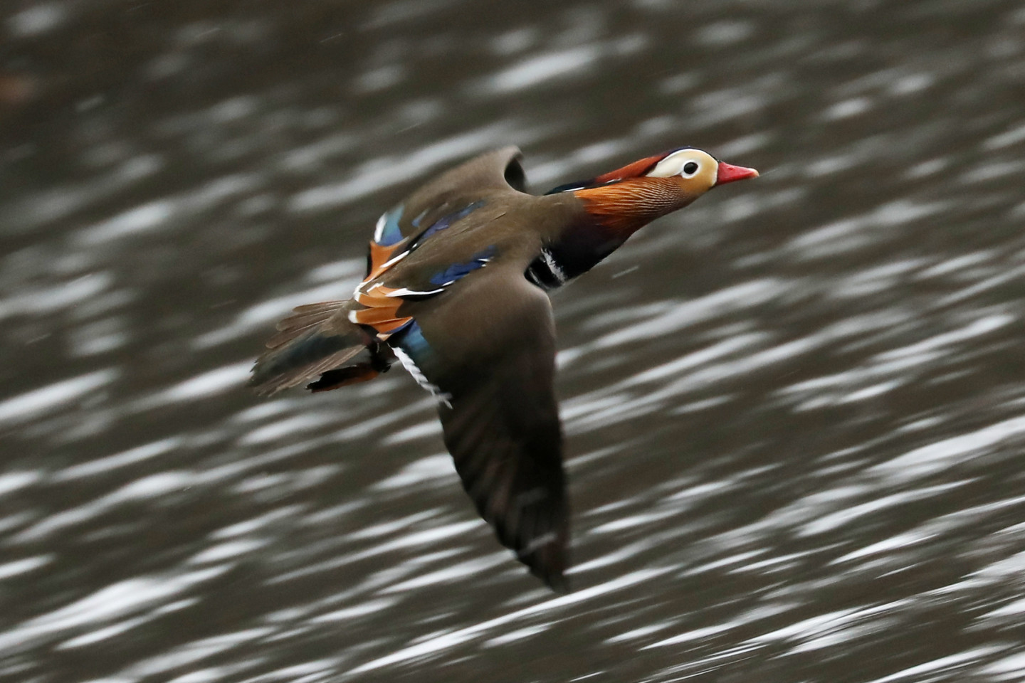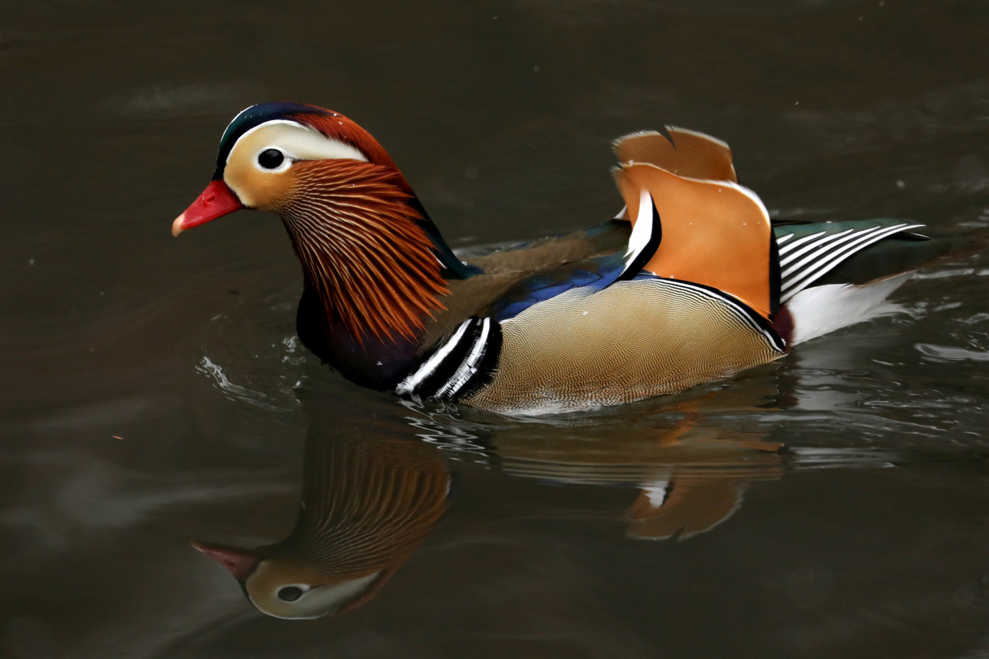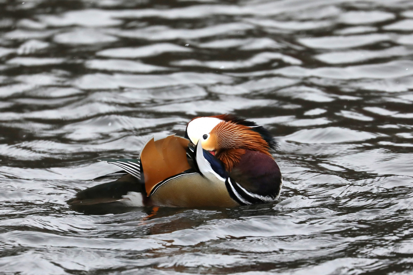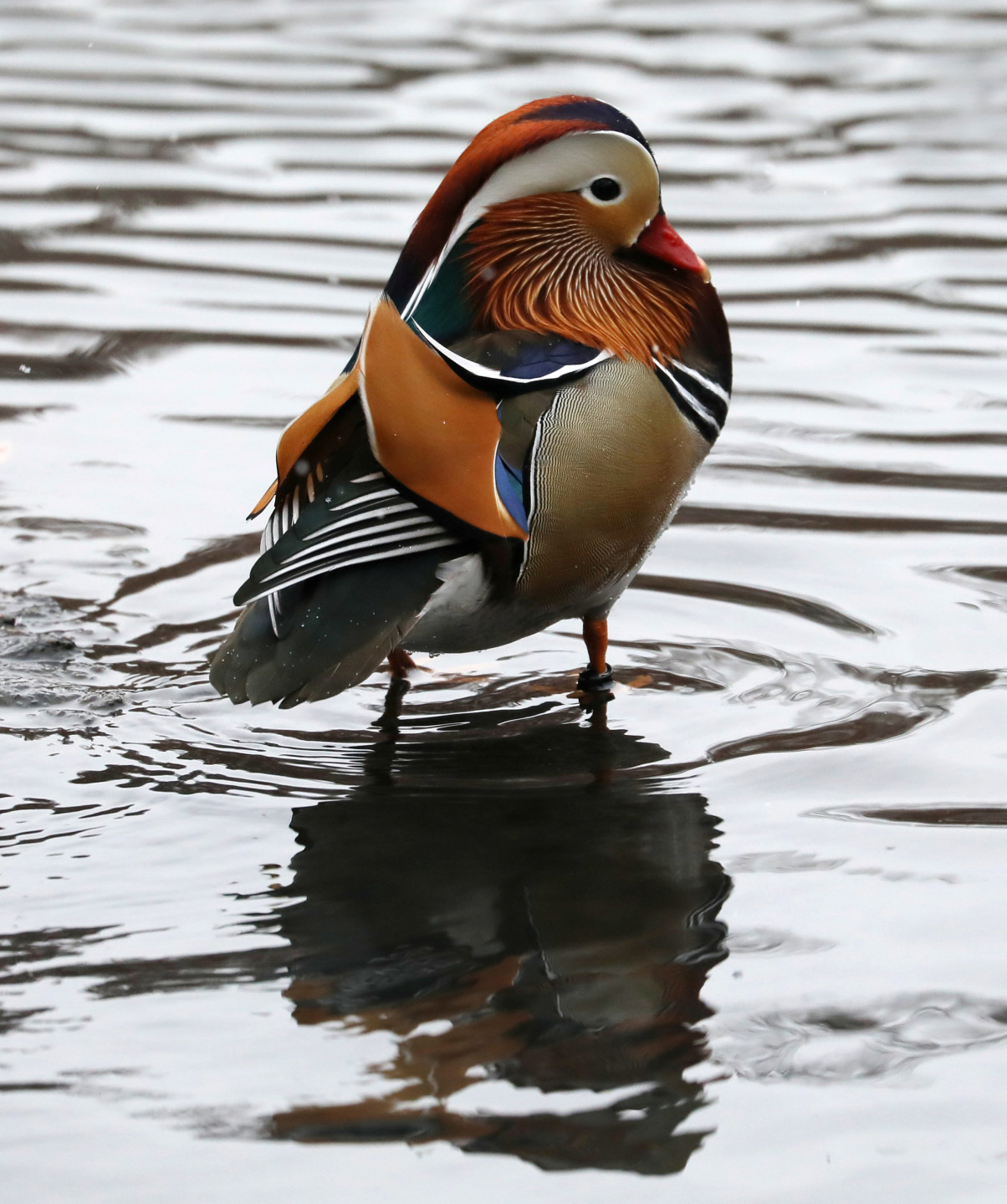 Austrumāzijas naconālais putns - mandarīnpīle plunčājas ūdenī Manhetenas Centrālparkā
