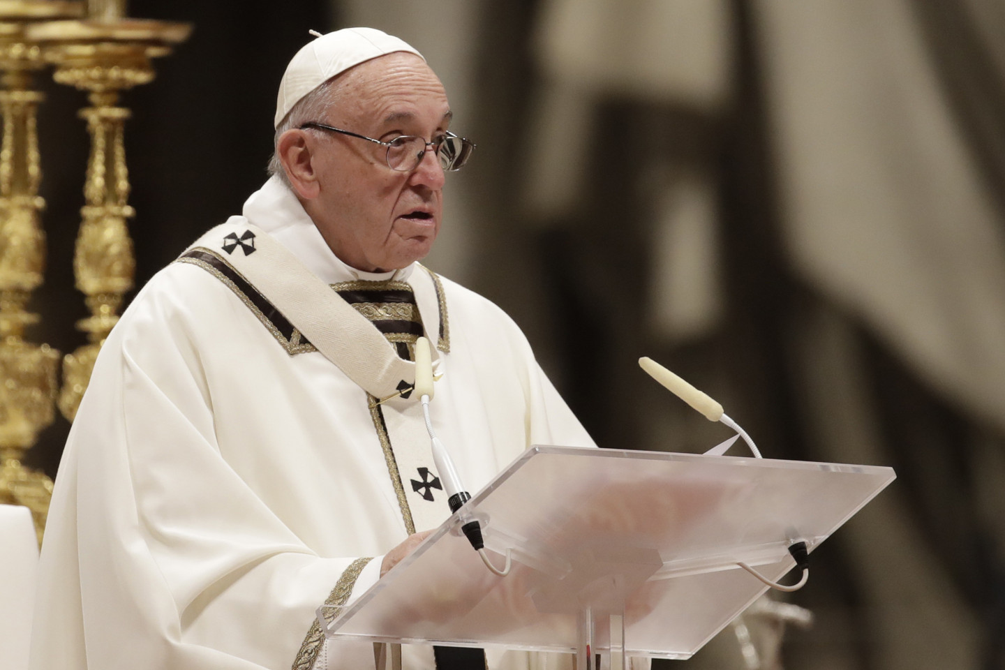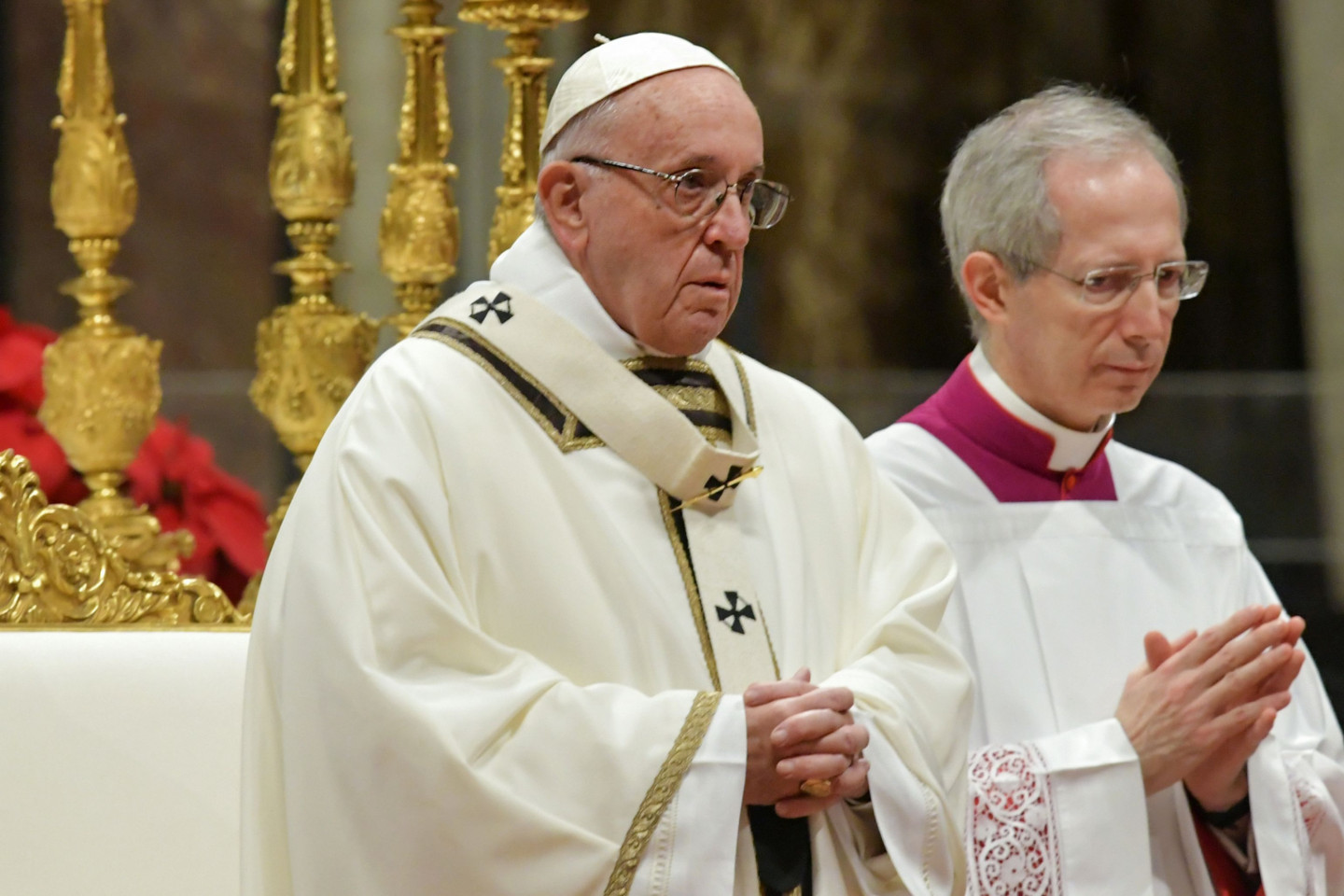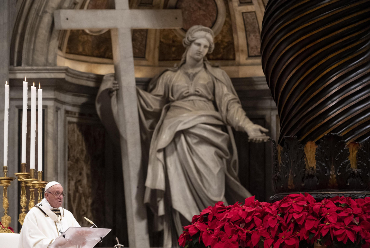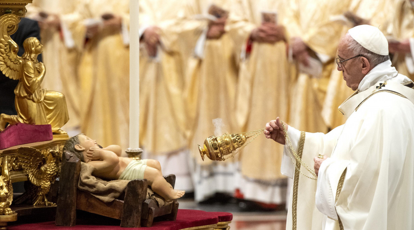 Romas Katoļu baznīcas pāvests Francisks pirmdien sūrojās par cilvēku alkatību un patērētāju kultūru, tradicionālajā Ziemassvētku vakara dievkalpojumā Vatikāna Svētā Pētera katedrālē atgādinot, ka "dzīvības ēdiens nav materiālie labumi, bet mīlestība". "Mūsdienās daudzi cilvēki dzīves jēgu rod tajā, ka viņu īpašumā ir materiālo lietu pārpilnība," sprediķī sacīja pāvests. "Negausīga alkatība iezīmē visu cilvēces vēsturi, pat šodien paradoksālā kārtā daži grezni vakariņo, kamēr citiem nav dienišķās maizes, lai izdzīvotu," viņš piebilda. Ja mēs domājam par silīti, kur piedzima Jēzus, "mēs saprotam, ka dzīvības ēdiens nav vis materiālie labumi, bet mīlestība, nevis nesātība, bet žēlsirdība, nevis ārišķība, bet vienkāršība," sacīja pāvests. Ziemassvētkos "mēs nedrīkstam zaudēt pamatu zem kājām vai ieslīgt pasaulīgumā vai patērētāju kultūrā", un mums sev ir jāvaicā - "vai es dalos savā maizē ar tiem, kam tās nav", norādīja Francisks. Pāvesta vietnieks kardināls Pjetro Parolins, izrādot solidaritāti ar grūtību piemeklēto Irākas kristiešu kopienu, Ziemassvētku vakarā vadīja dievkalpojumu Bagdādē.