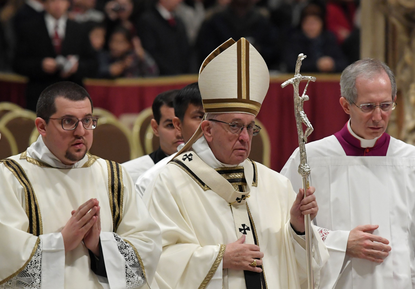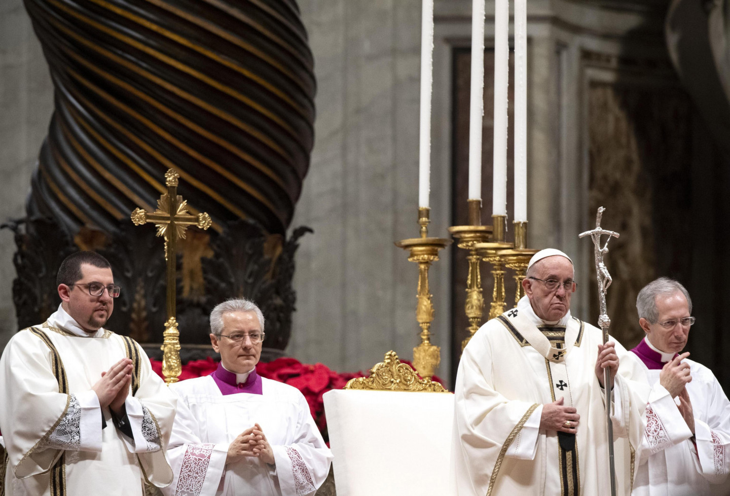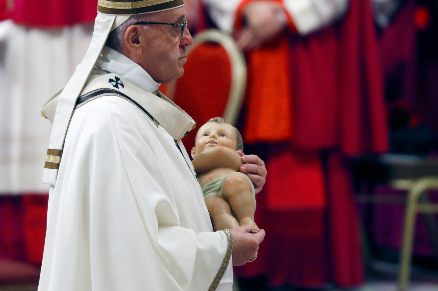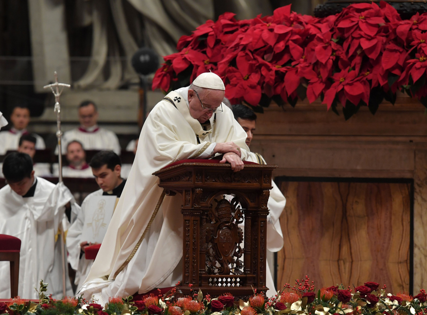 Romas Katoļu baznīcas pāvests Francisks pirmdien sūrojās par cilvēku alkatību un patērētāju kultūru, tradicionālajā Ziemassvētku vakara dievkalpojumā Vatikāna Svētā Pētera katedrālē atgādinot, ka "dzīvības ēdiens nav materiālie labumi, bet mīlestība". "Mūsdienās daudzi cilvēki dzīves jēgu rod tajā, ka viņu īpašumā ir materiālo lietu pārpilnība," sprediķī sacīja pāvests. "Negausīga alkatība iezīmē visu cilvēces vēsturi, pat šodien paradoksālā kārtā daži grezni vakariņo, kamēr citiem nav dienišķās maizes, lai izdzīvotu," viņš piebilda. Ja mēs domājam par silīti, kur piedzima Jēzus, "mēs saprotam, ka dzīvības ēdiens nav vis materiālie labumi, bet mīlestība, nevis nesātība, bet žēlsirdība, nevis ārišķība, bet vienkāršība," sacīja pāvests. Ziemassvētkos "mēs nedrīkstam zaudēt pamatu zem kājām vai ieslīgt pasaulīgumā vai patērētāju kultūrā", un mums sev ir jāvaicā - "vai es dalos savā maizē ar tiem, kam tās nav", norādīja Francisks. Pāvesta vietnieks kardināls Pjetro Parolins, izrādot solidaritāti ar grūtību piemeklēto Irākas kristiešu kopienu, Ziemassvētku vakarā vadīja dievkalpojumu Bagdādē.